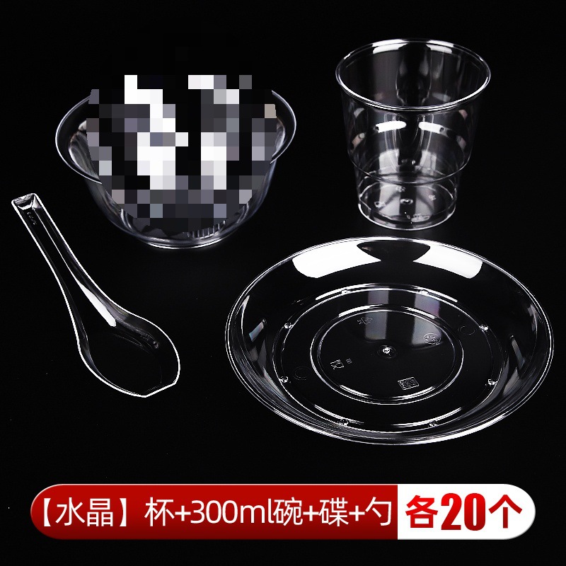 一次性航空水晶碗筷杯加厚透明食品硬塑料家用结婚餐具套装四新品