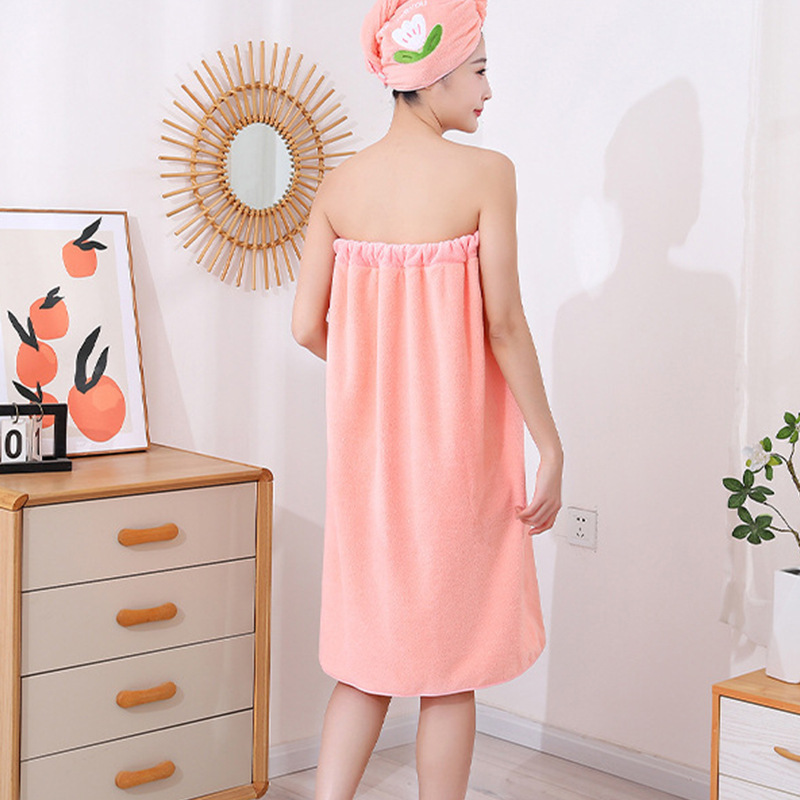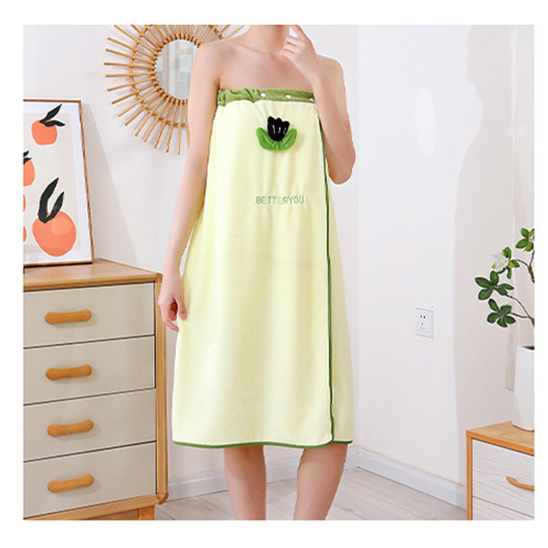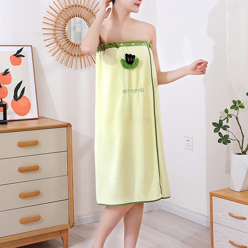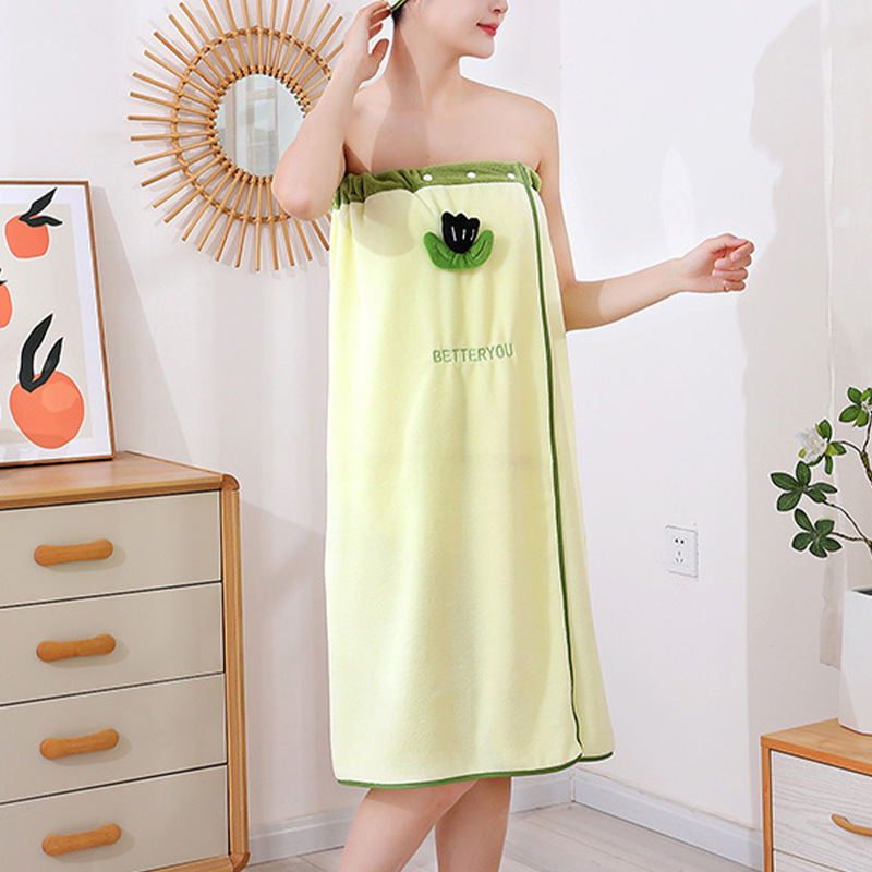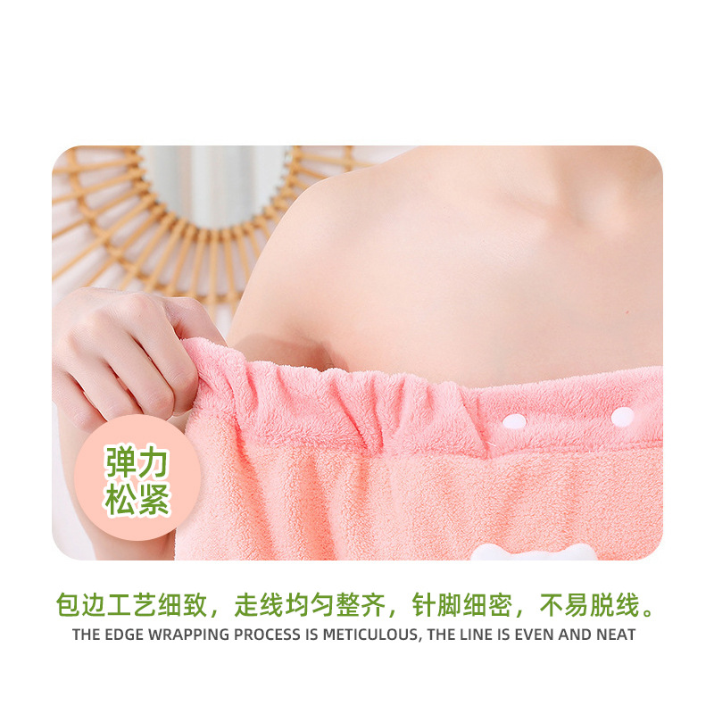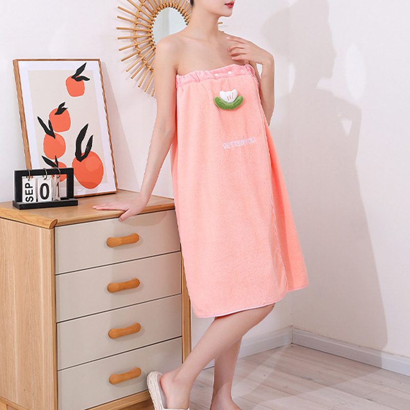 女士洗澡浴巾珊瑚绒浴裙毛巾松紧按扣可穿裹巾郁金香可爱浴袍