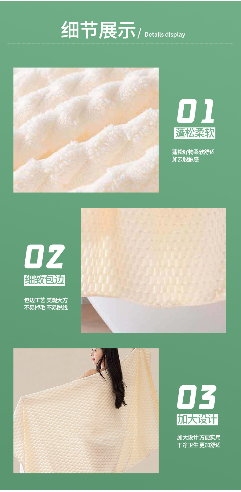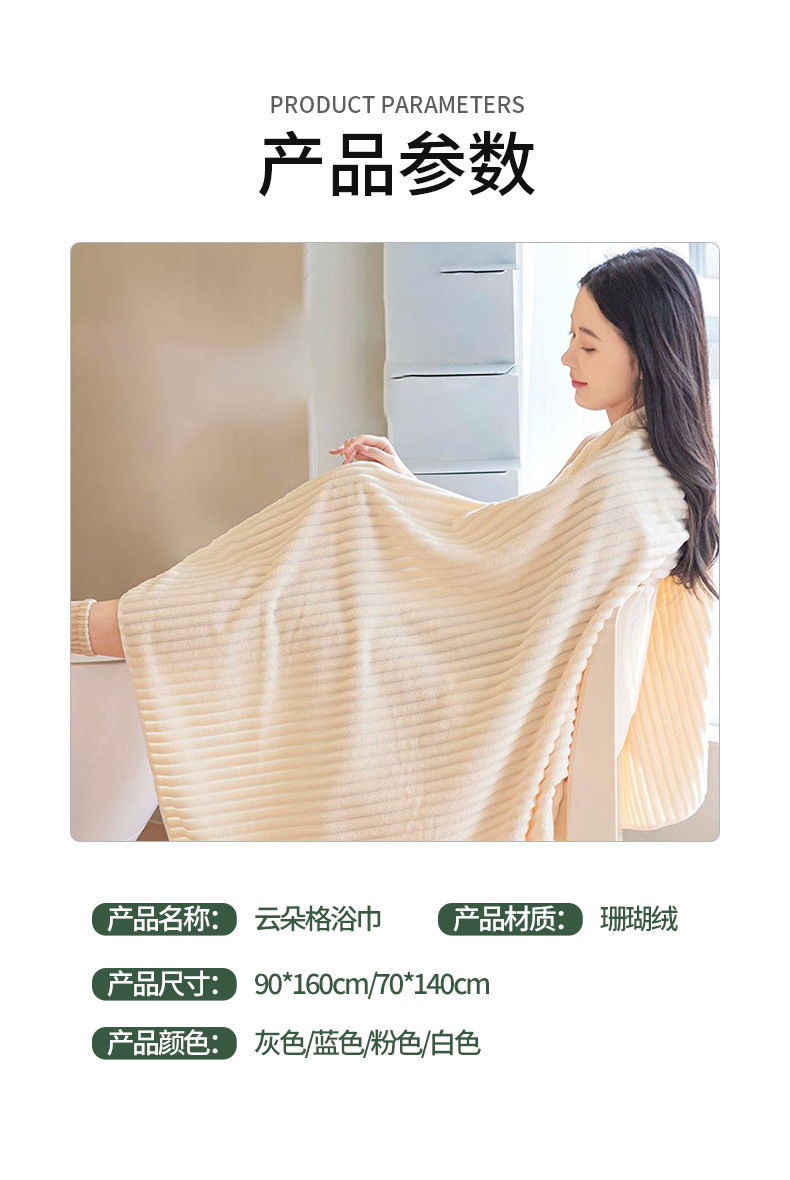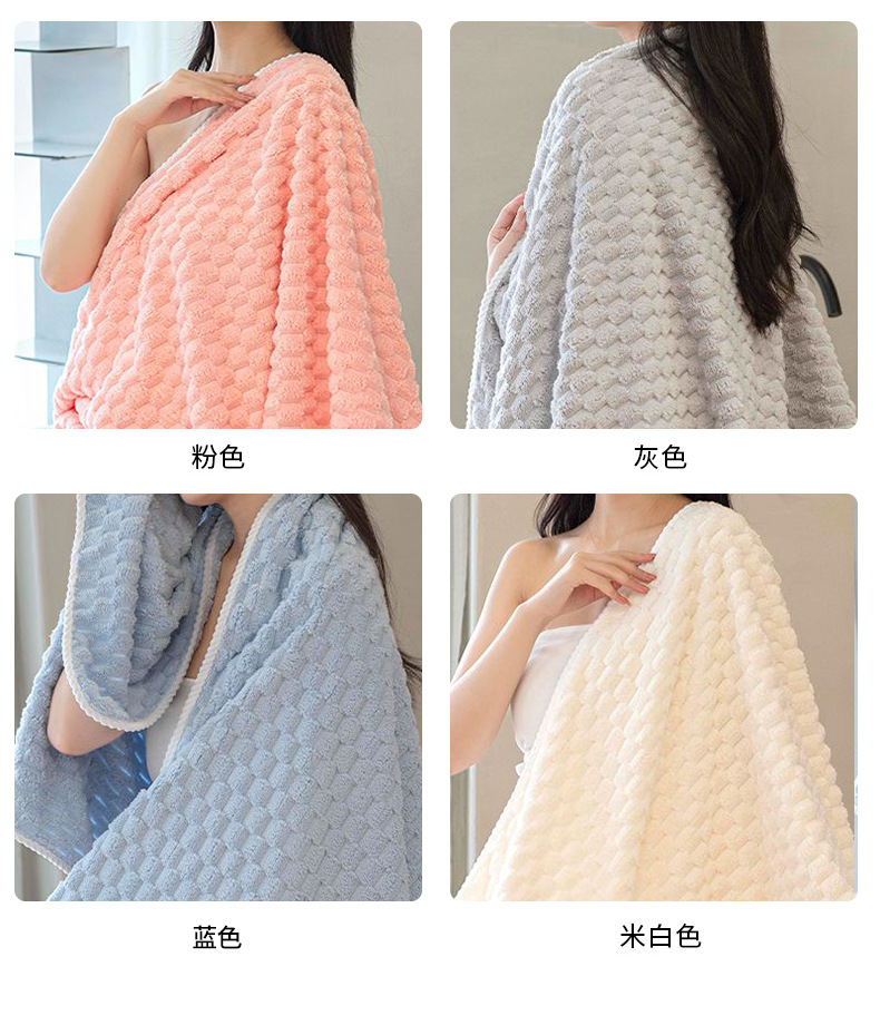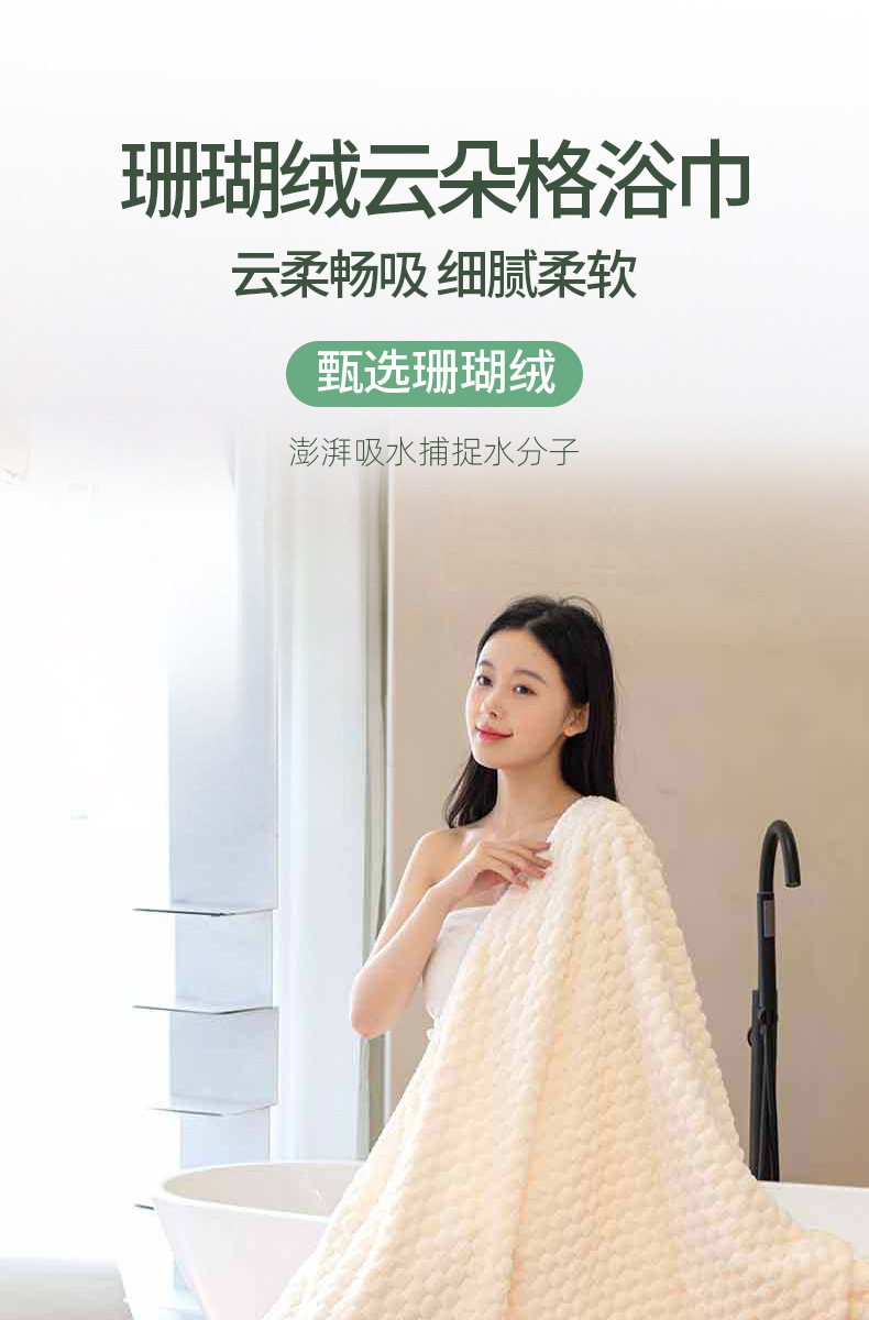 新品上新软绵珊瑚绒云朵格浴巾吸水不易掉毛加大0包裹性好大浴巾