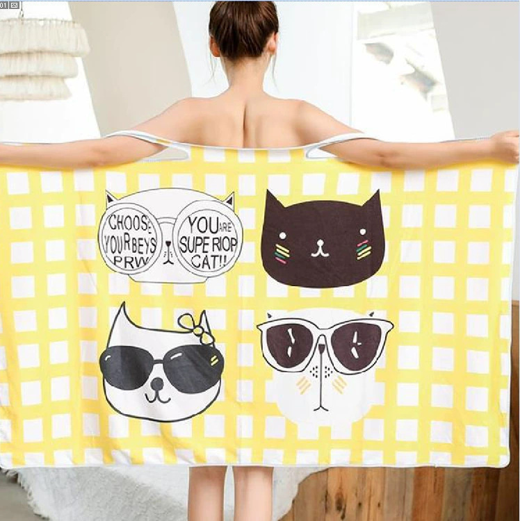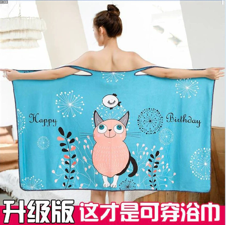 可穿浴巾现货超细纤维女士吸水快干柔软美容院游泳馆活性印花浴裙