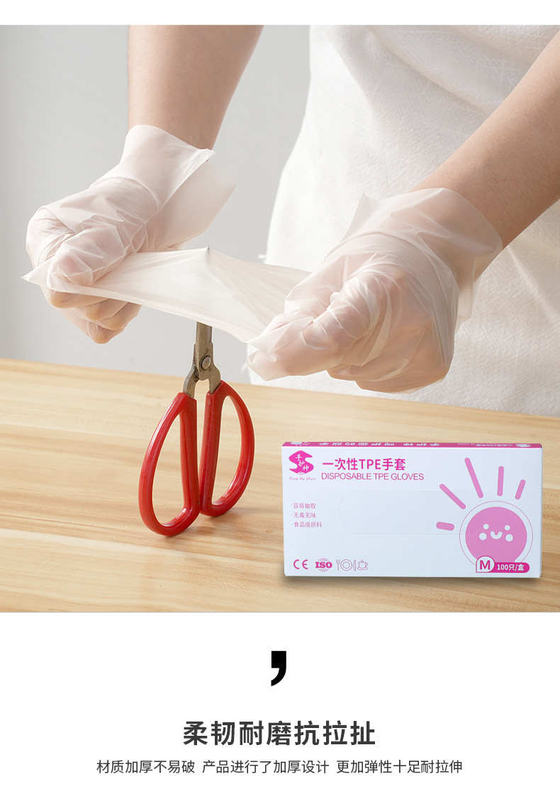 厂家直销食品级餐饮厨房家用TPE手套 一次性手套弹力加厚防油手套