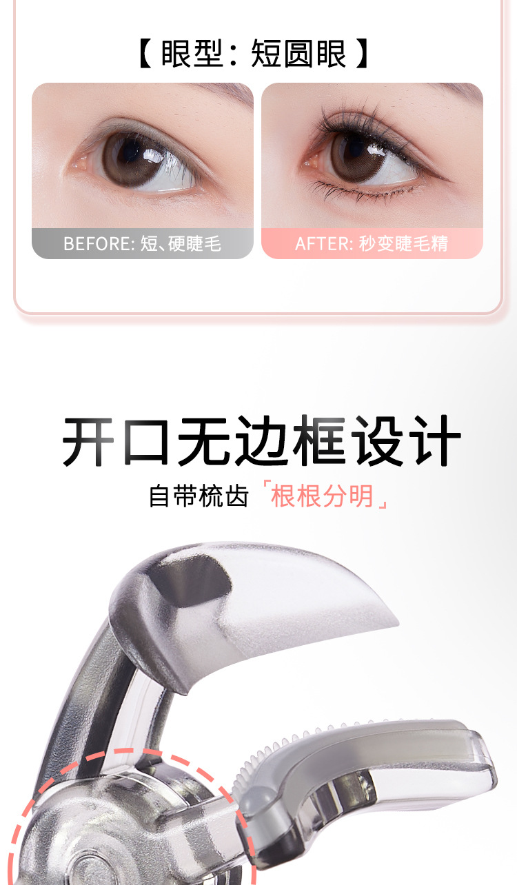 GECOMO无边框梳齿睫毛夹便携式持久定型广角局部眼新手睫毛卷翘器