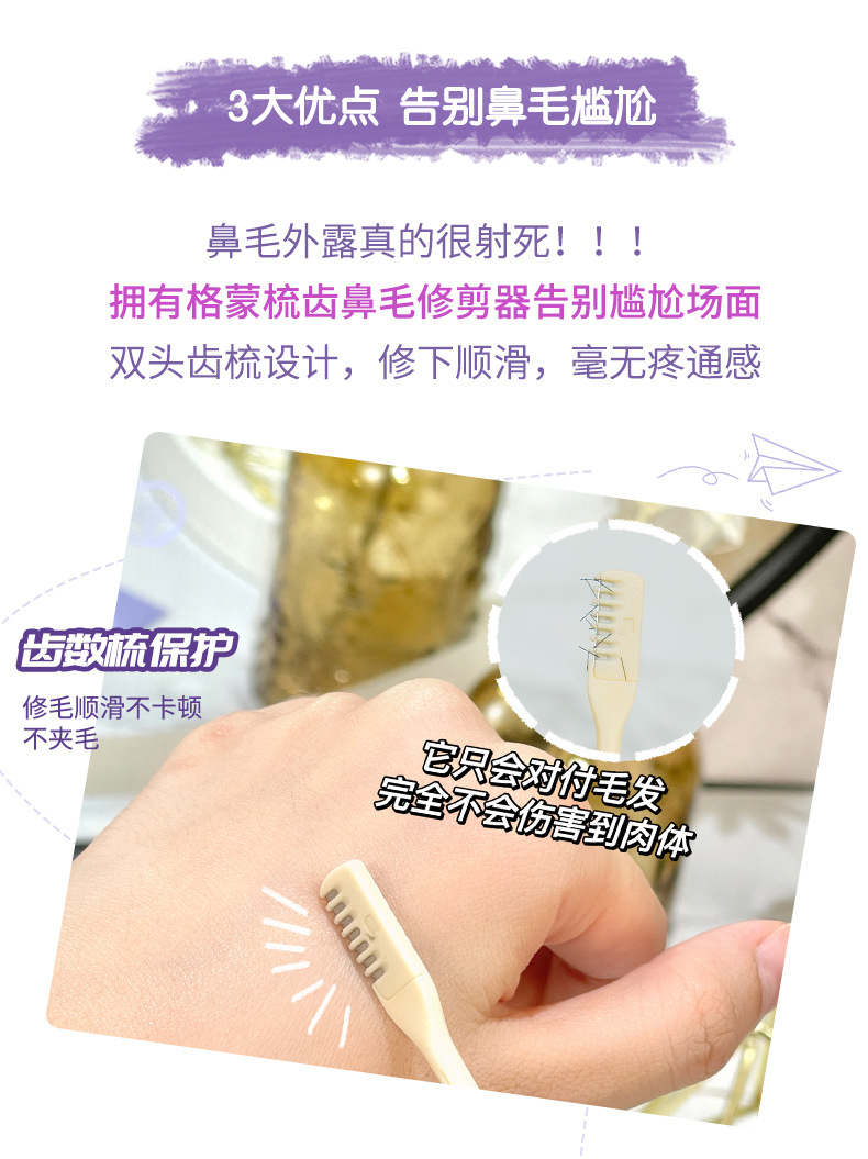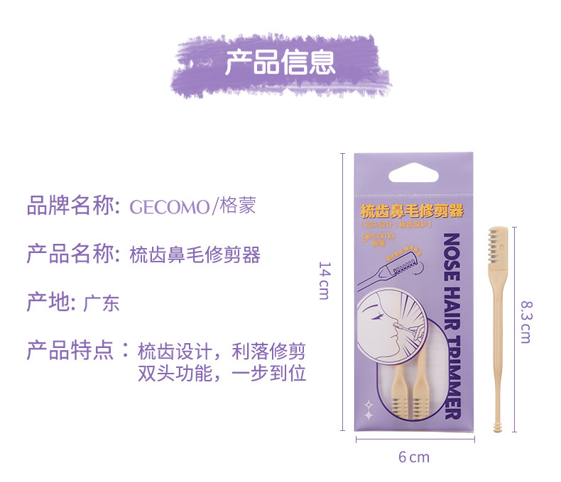 GECOMO梳齿鼻毛刀修剪器鼻毛刮毛器清洁鼻毛修剪器剃毛剪刀两支装