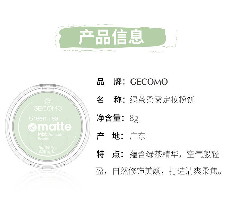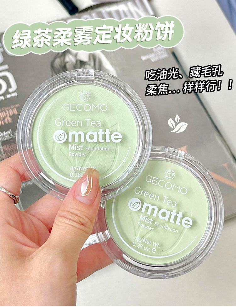 格蒙绿茶定妆粉饼柔雾哑光散粉蜜粉持久服帖遮瑕防水提亮修容定妆