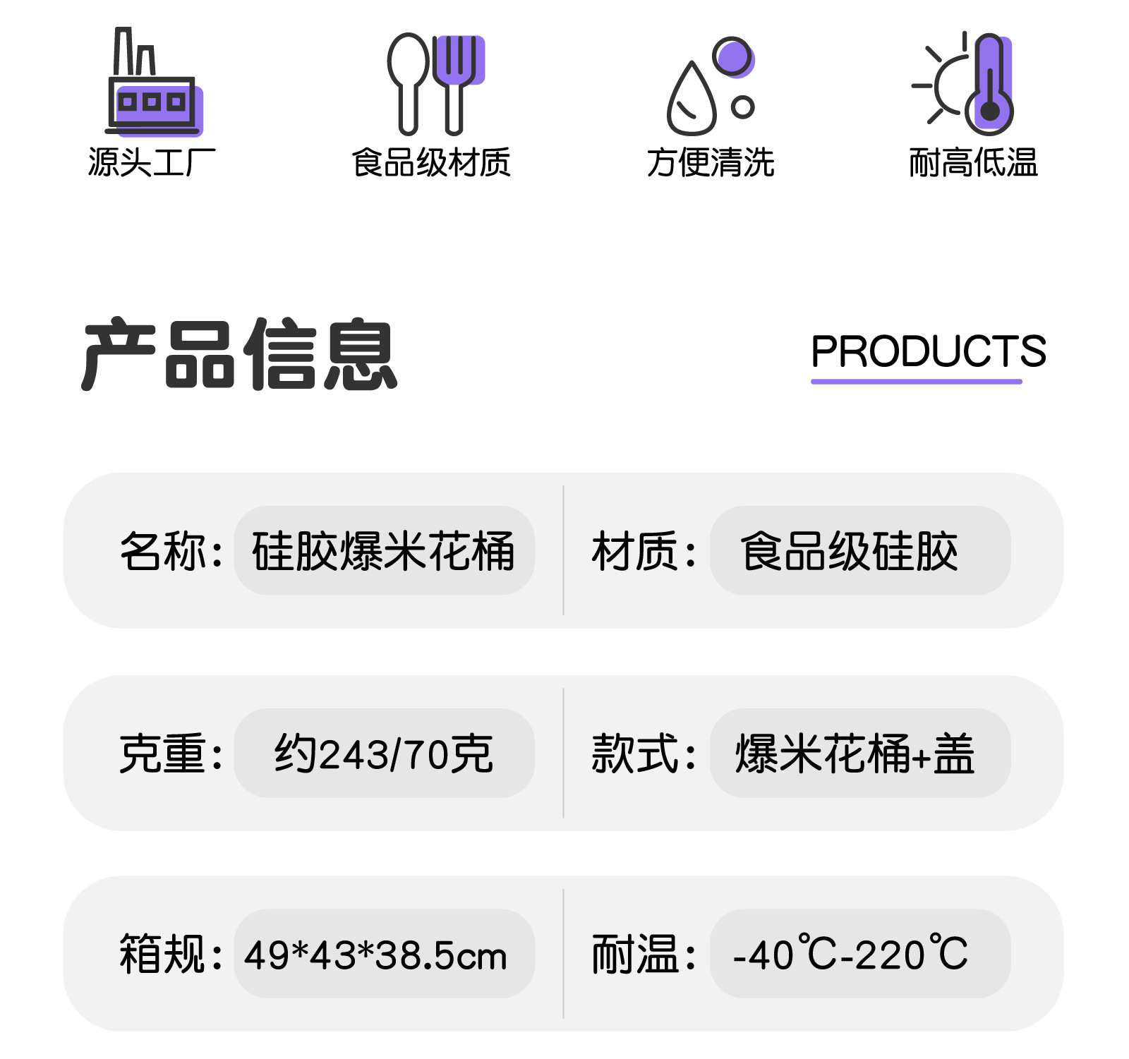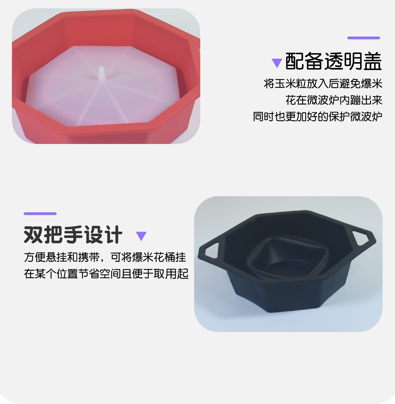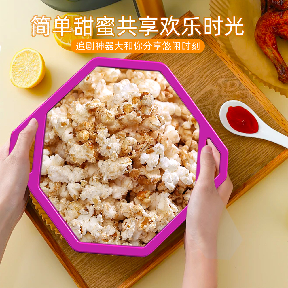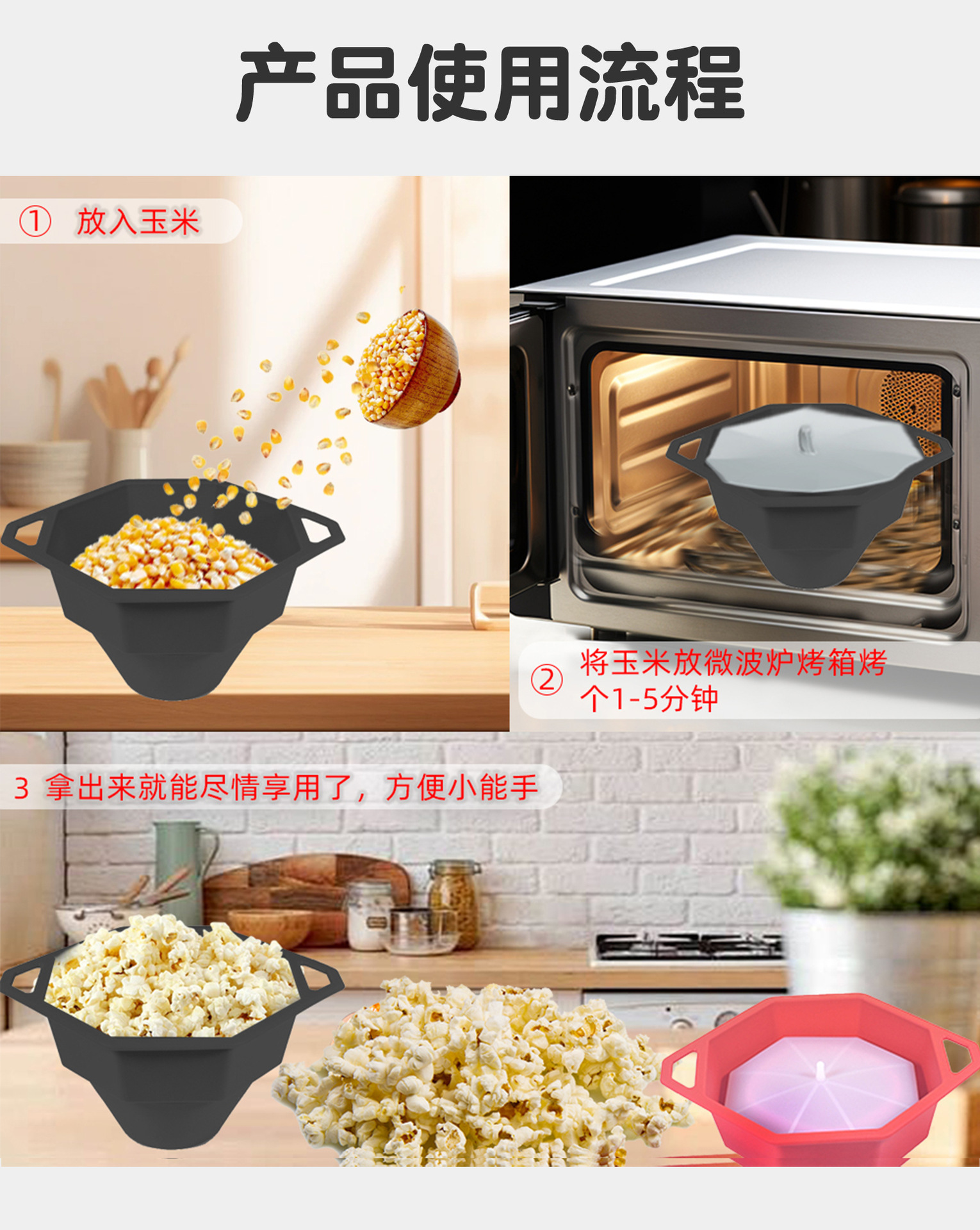 亚马逊新品食品级硅胶爆米花碗耐高温可折叠微波炉爆米花桶带盖子
