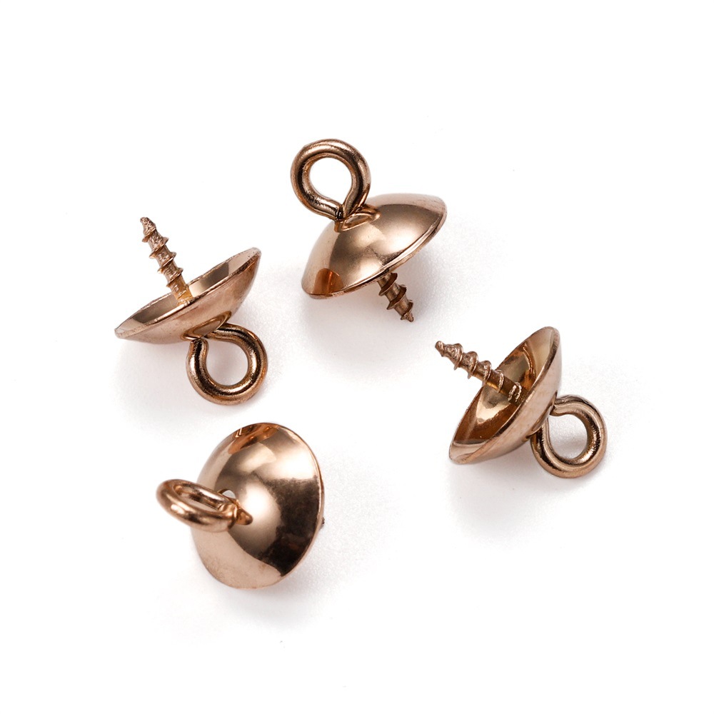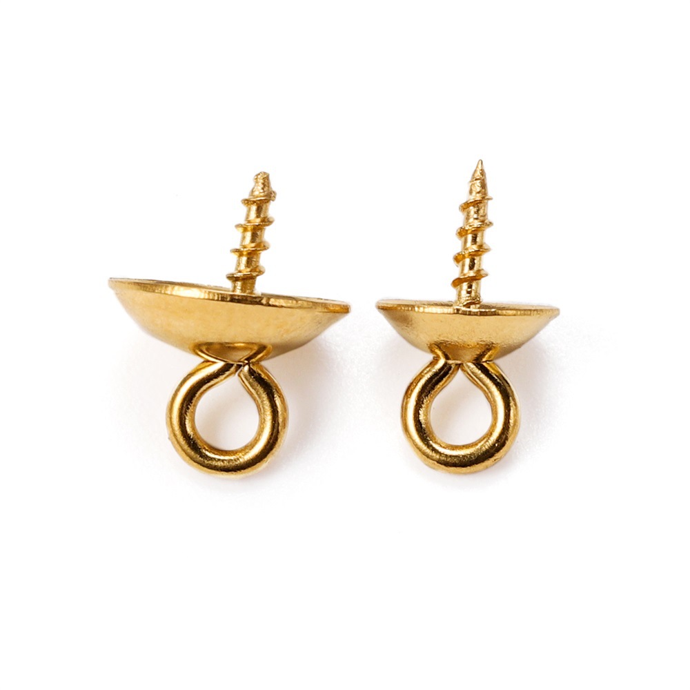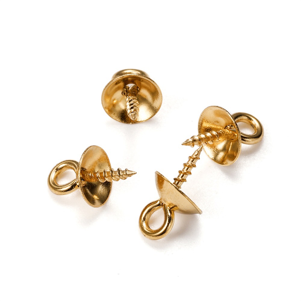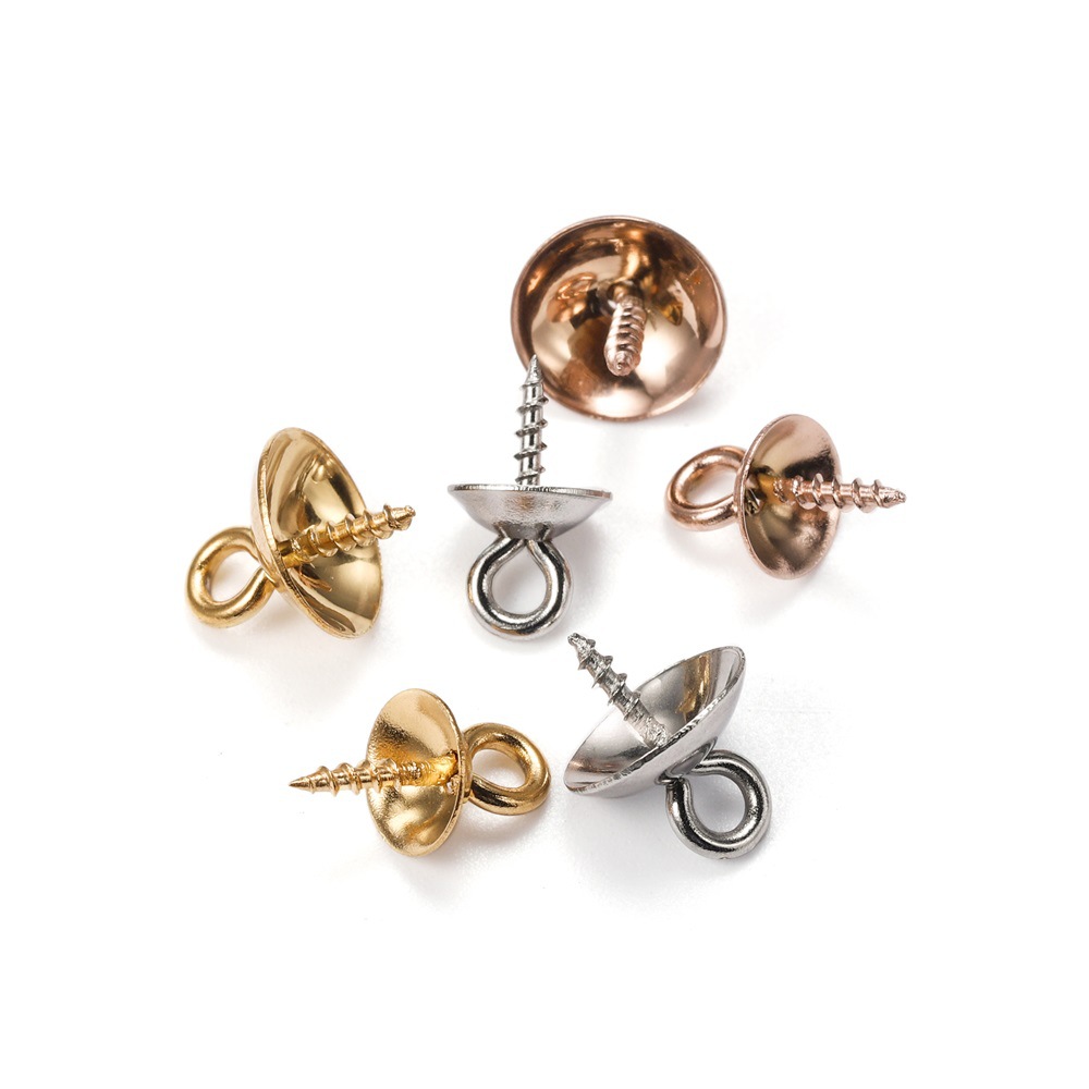 6-8mm不锈钢珍珠托羊眼钉珠帽金色花托diy挂件吊坠耳饰材料配件