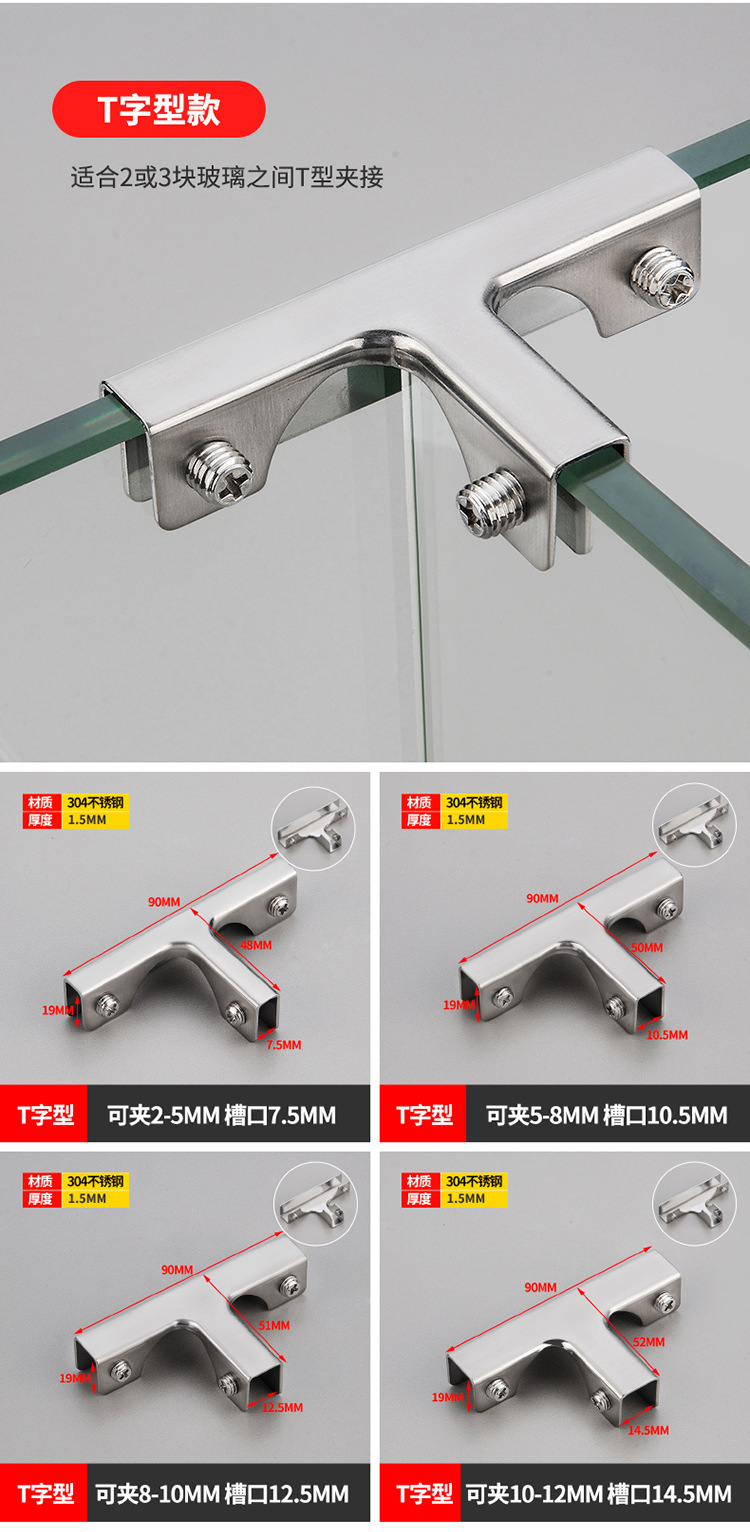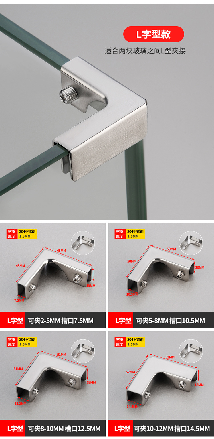 304不锈钢玻璃夹瓷砖固定夹卡扣直角T L型鱼缸花箱菜池夹子固定器