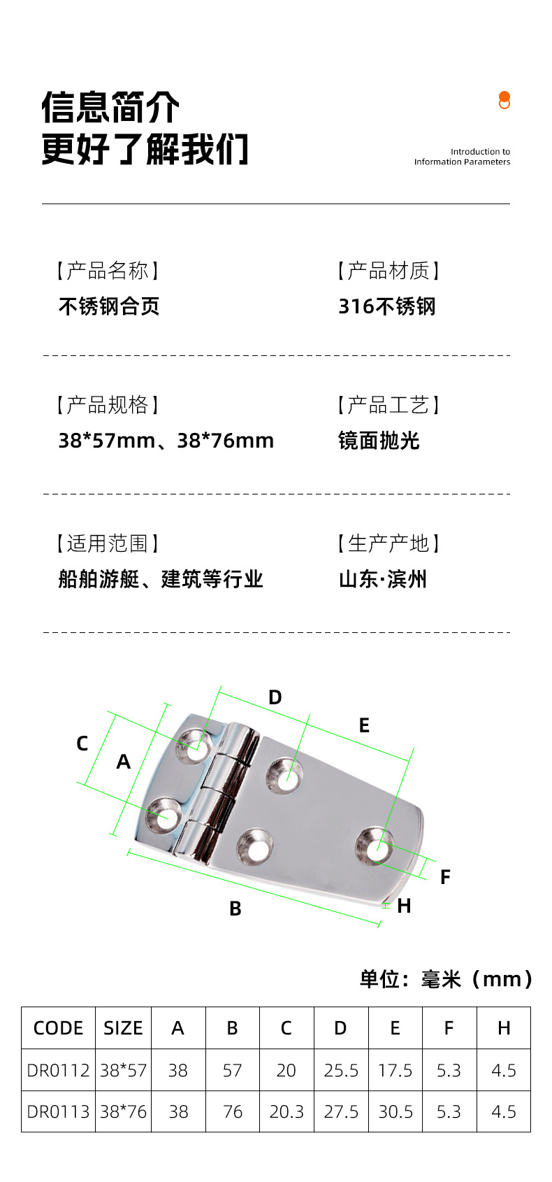 五孔合页铰链 316不锈钢船用五金合页 船舶游艇配件 厂家现货批发