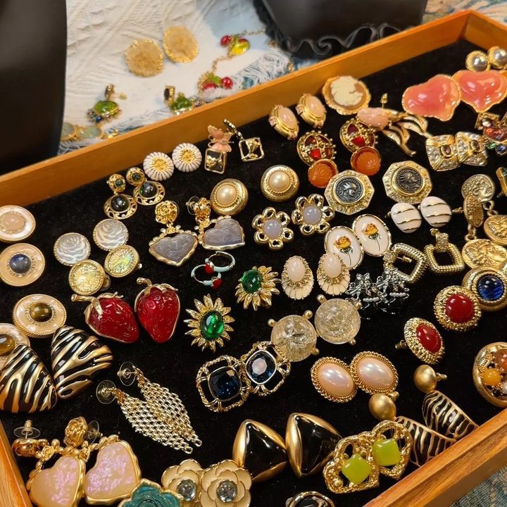 饰品高级感复古耳饰中古vintage饰品银针几何花朵气质耳环批发女