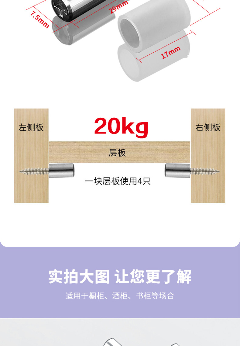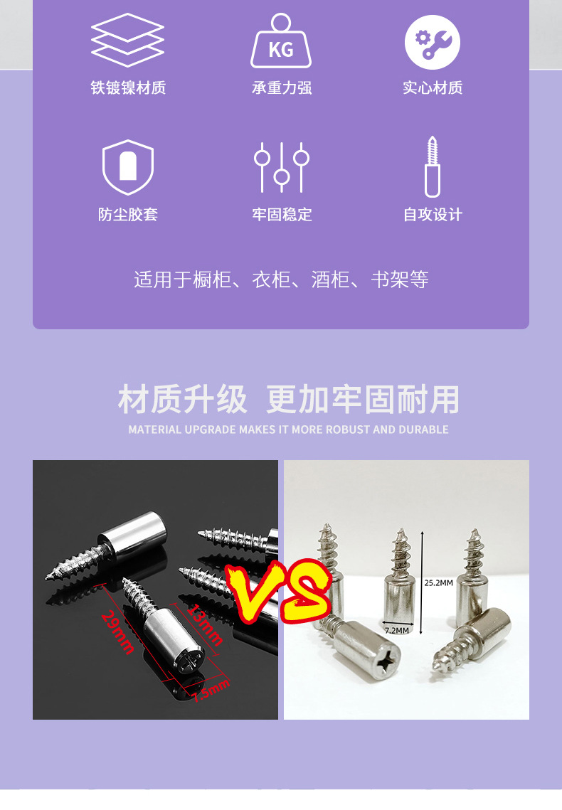 自攻螺丝一体层板托隔板粒托钉橱衣柜固定支撑五金配件置物架钉托