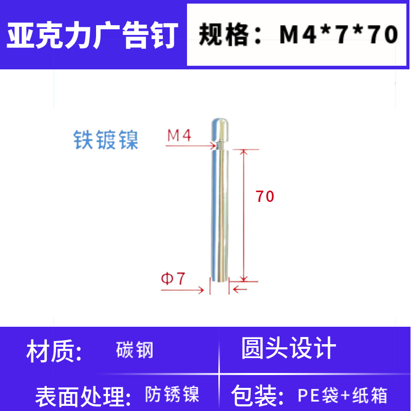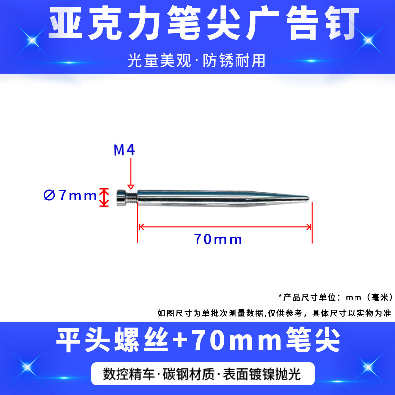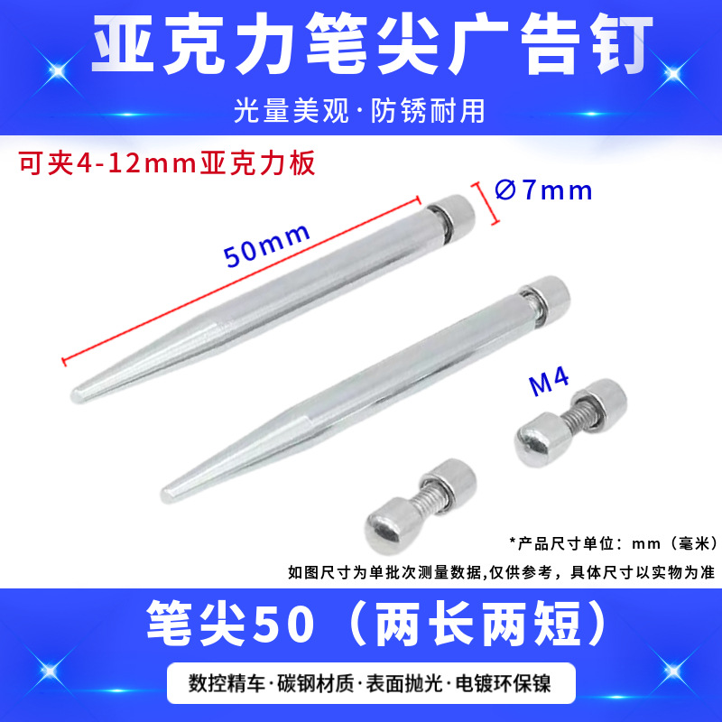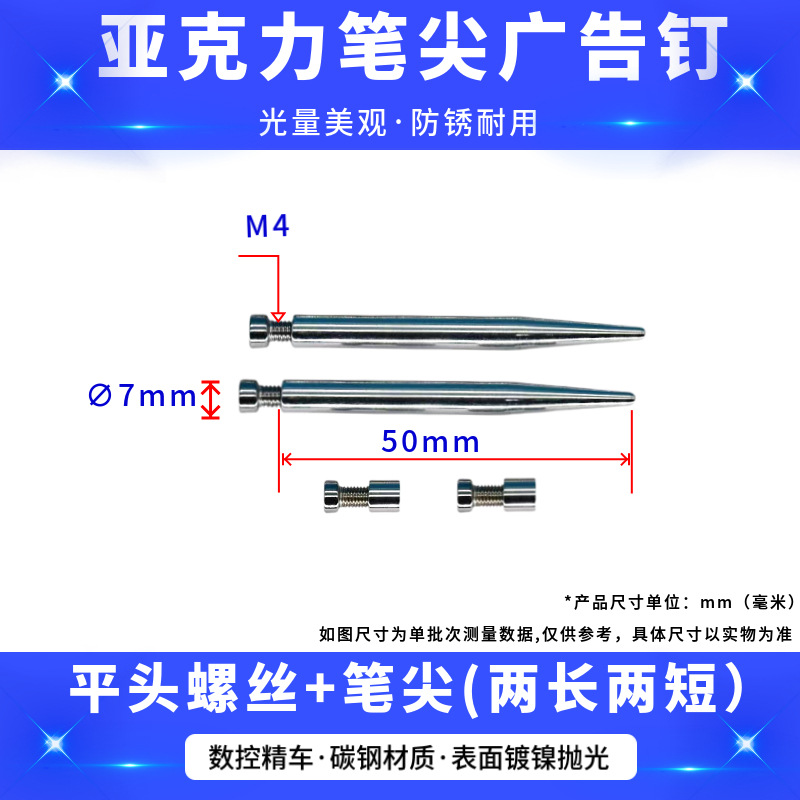 厂家批发现代简约亚克力相框支架螺丝支撑杆圆头实心笔尖广告钉