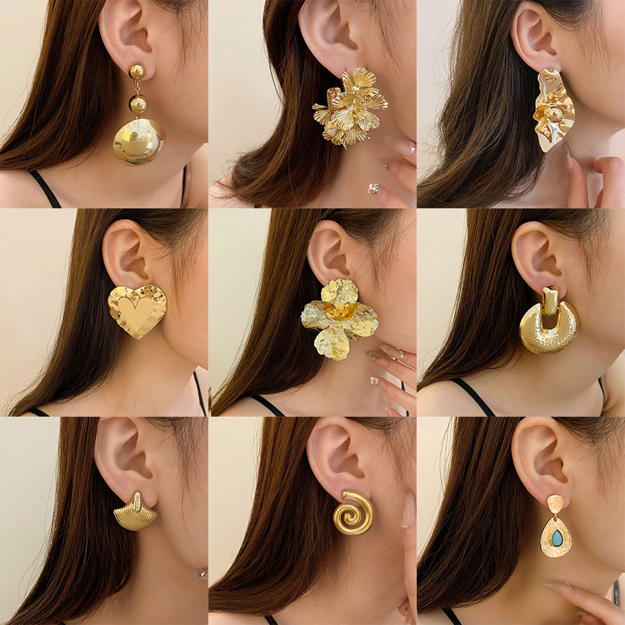 饰品高级感爆款耳钉个性夸张气质耳饰女欧美跨境银针几何花朵耳环