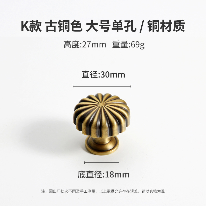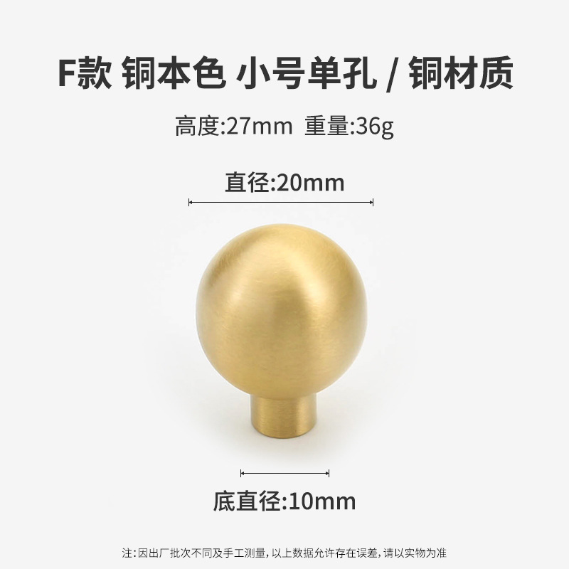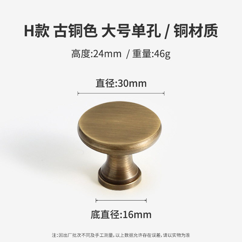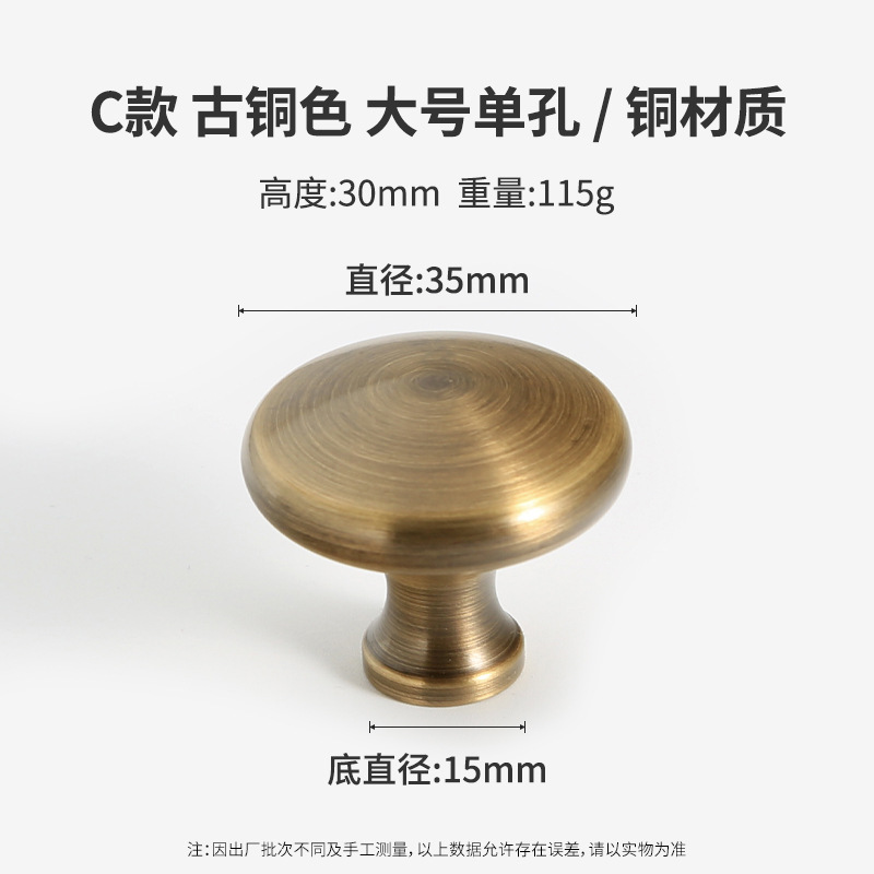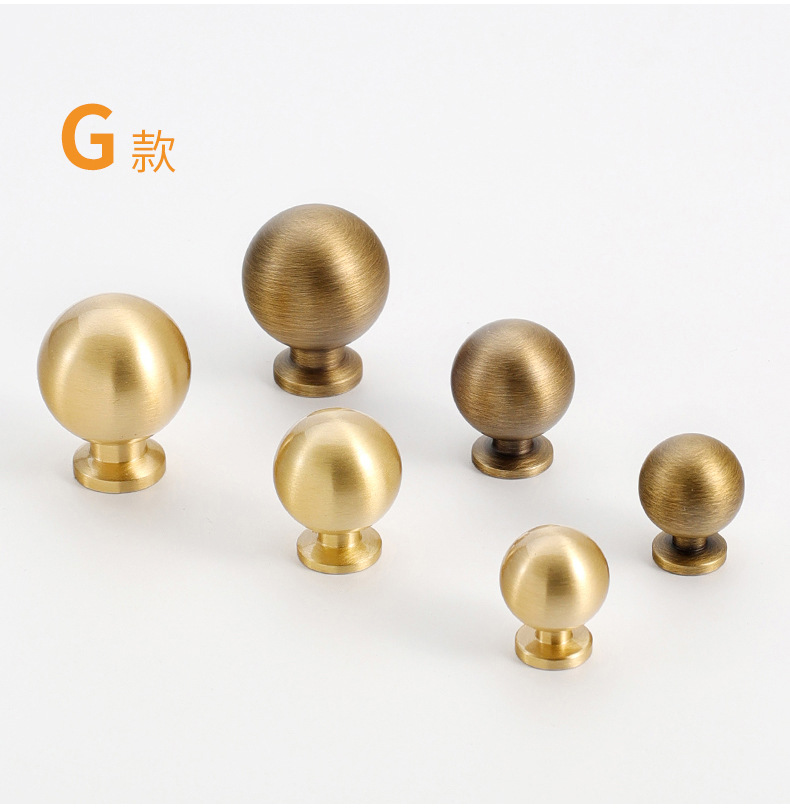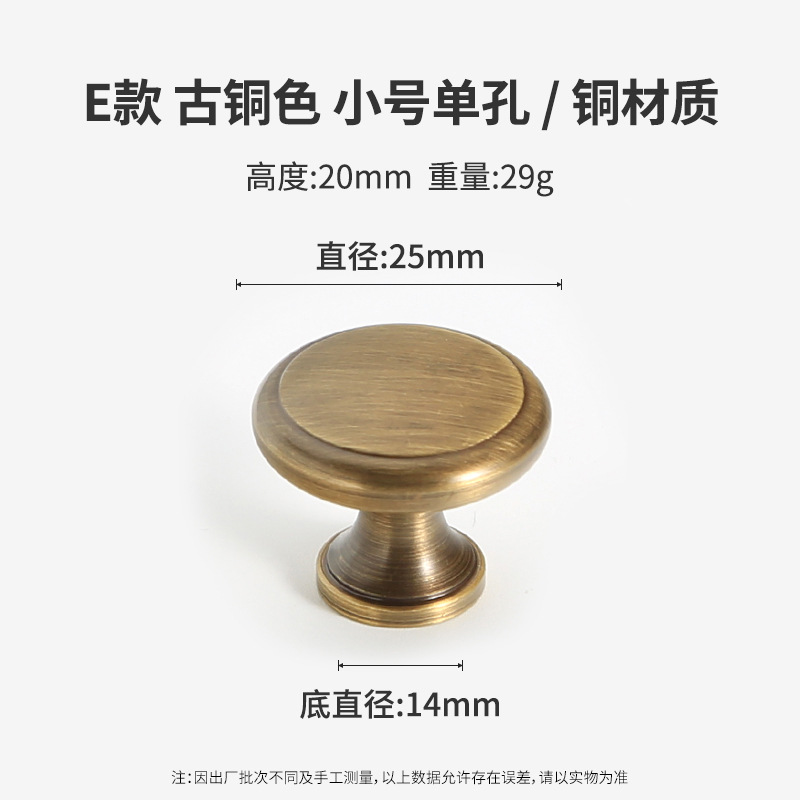 黄铜抽屉拉手美式柜门衣柜圆形圆球门把手古铜色橱柜子单孔小拉手