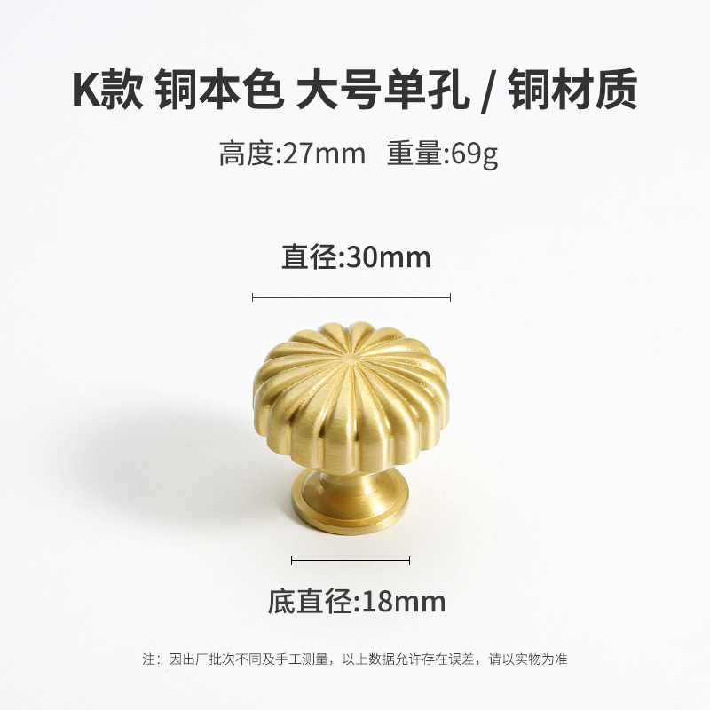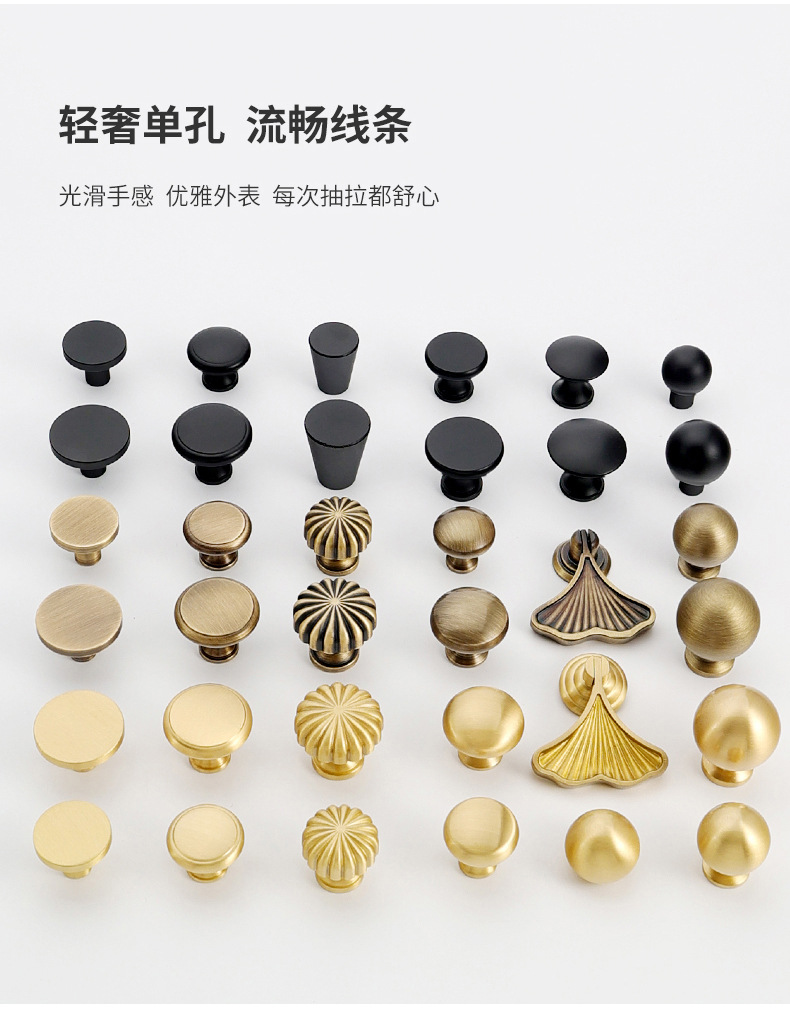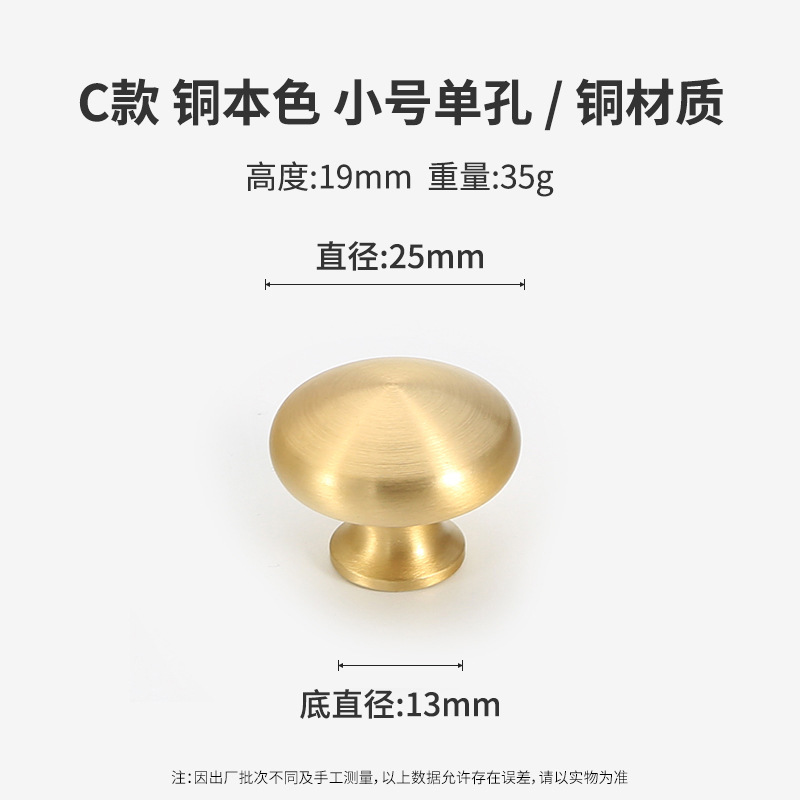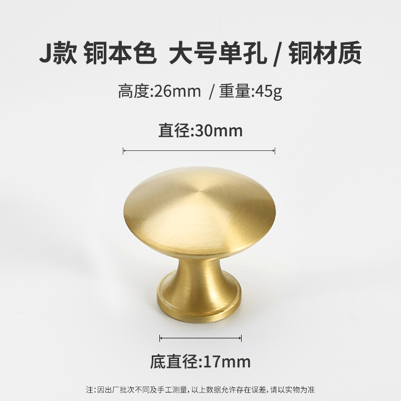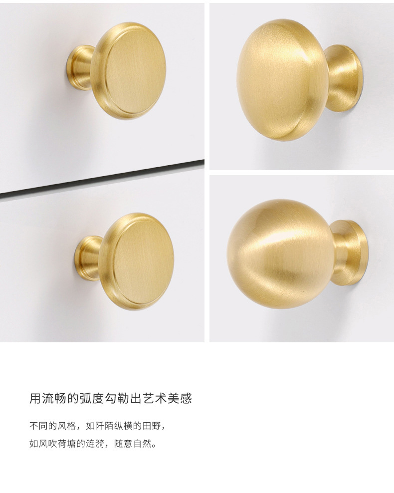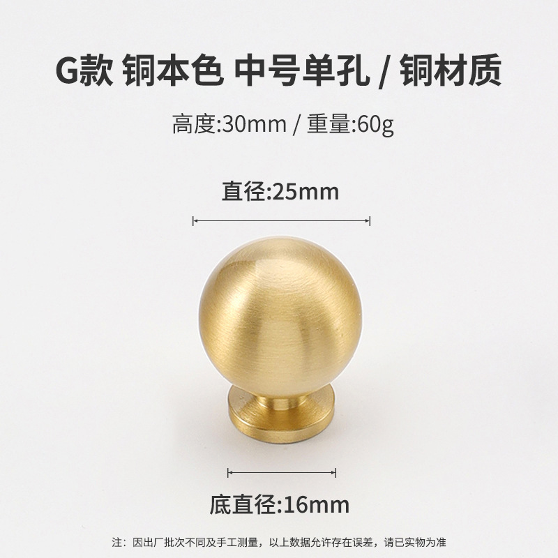黄铜抽屉拉手美式柜门衣柜圆形圆球门把手古铜色橱柜子单孔小拉手