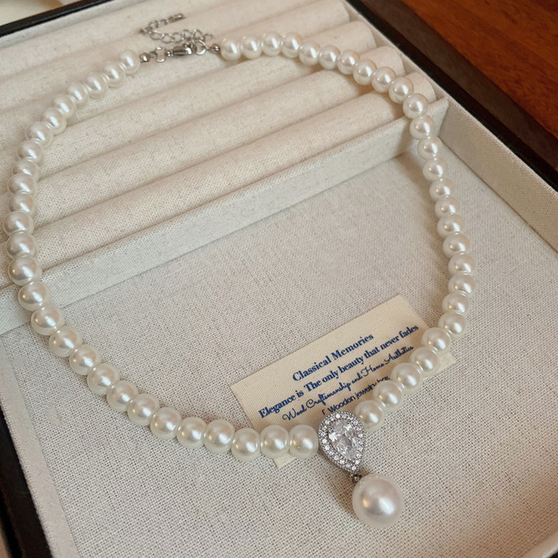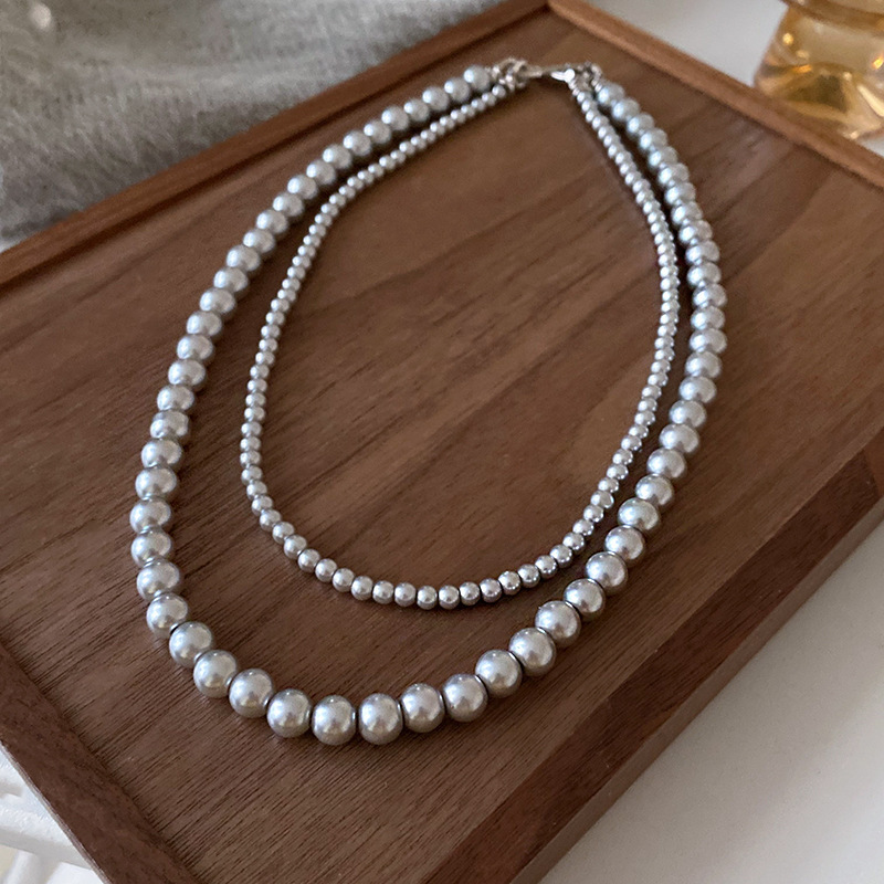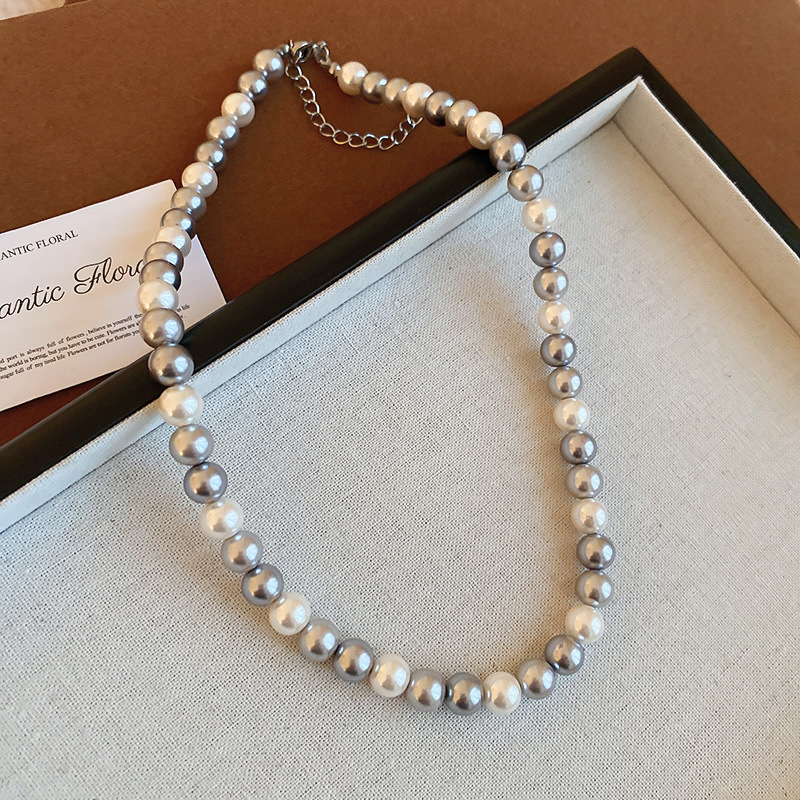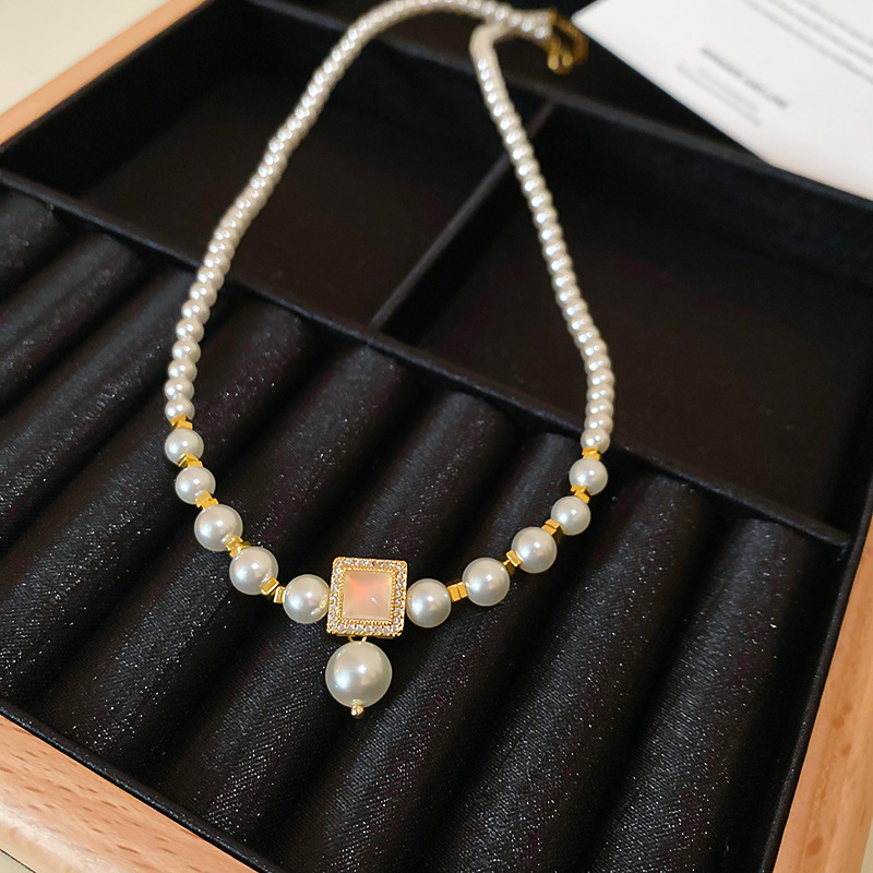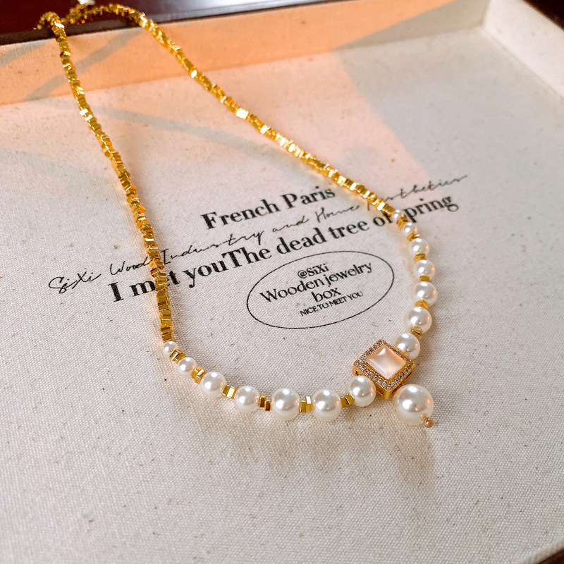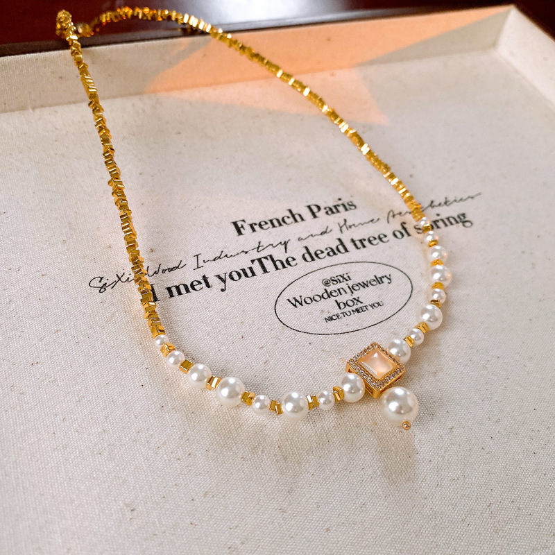 饰品施家珍珠通勤气质项饰几何串珠项链法式复古设计感锁骨链批发