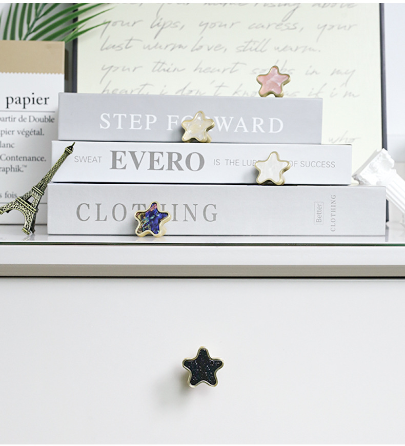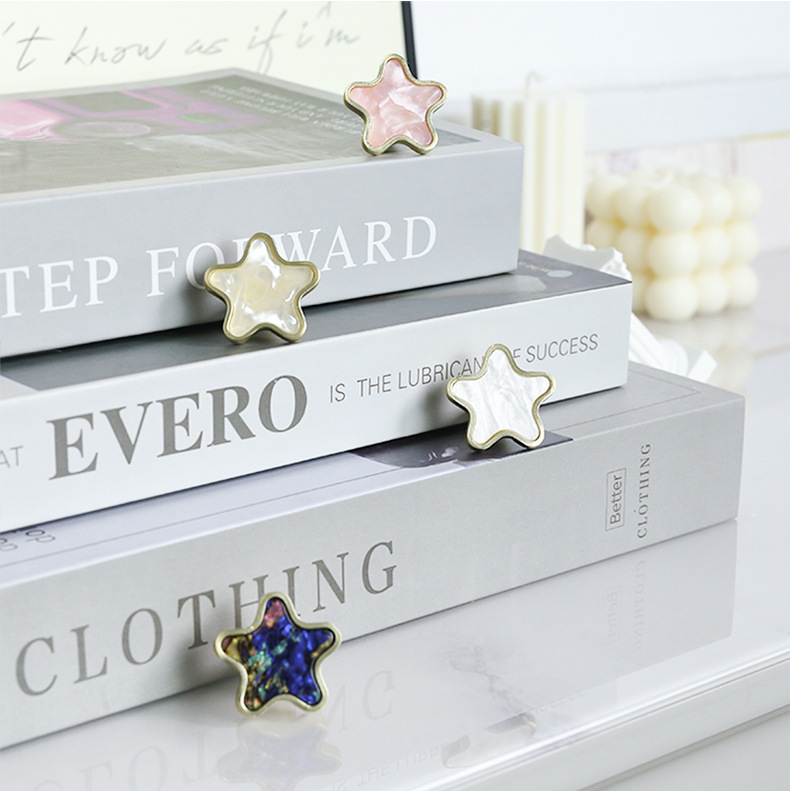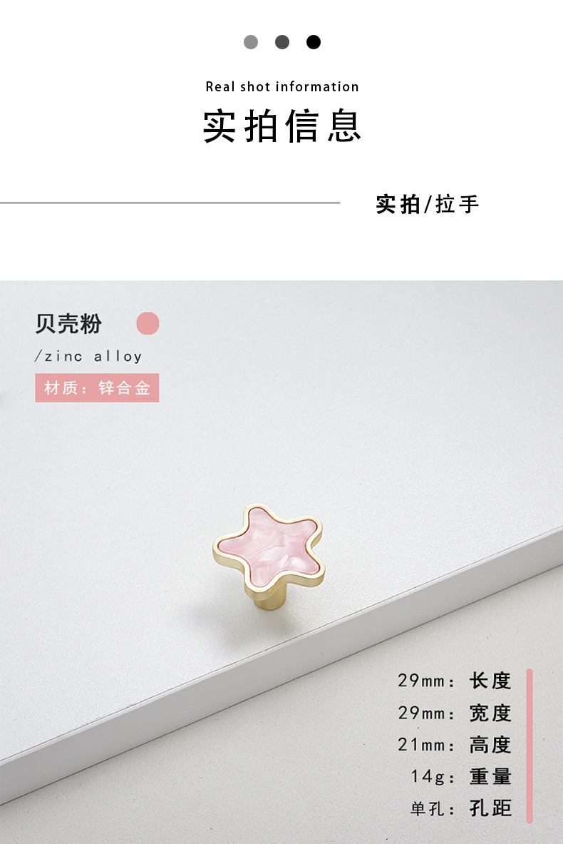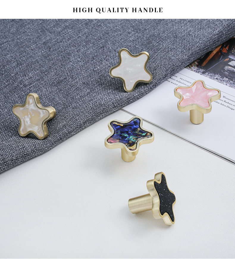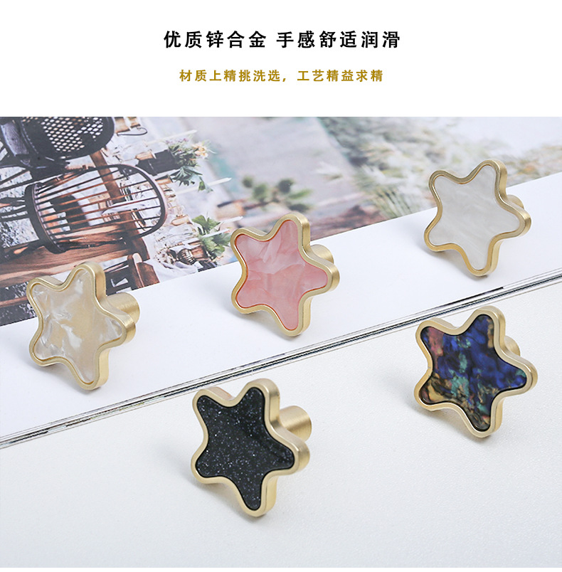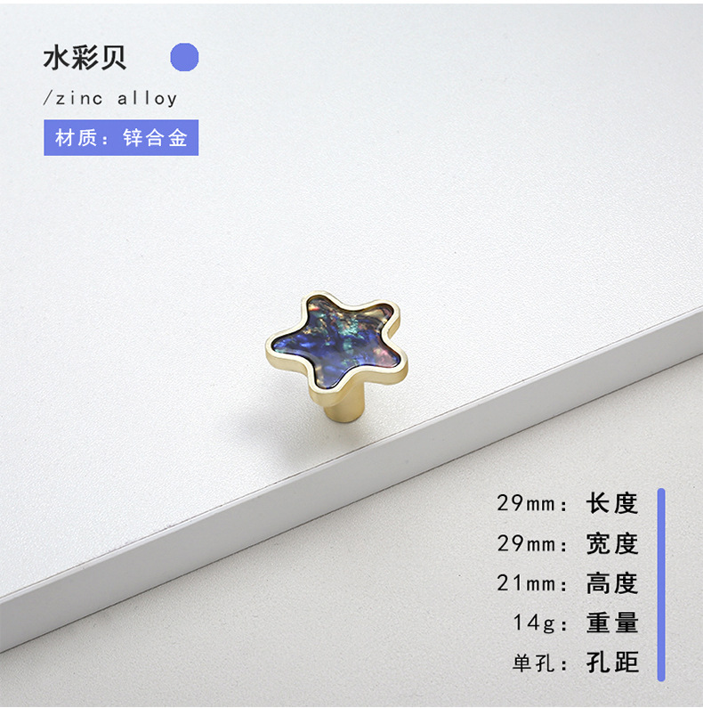 北欧五角星星贝壳拉手现代简约橱柜金色透明抽屉衣柜门家具门把手