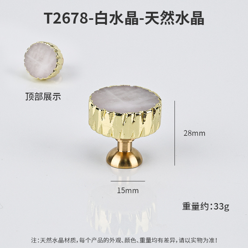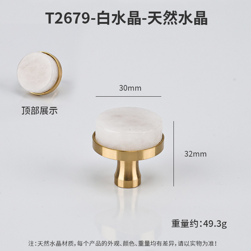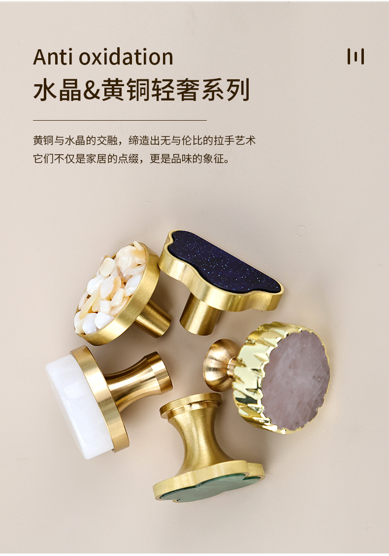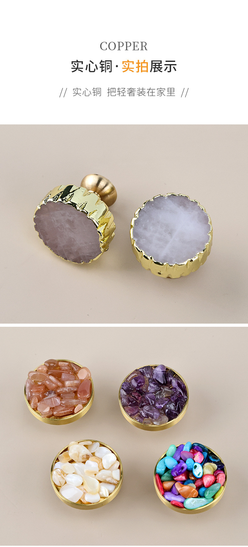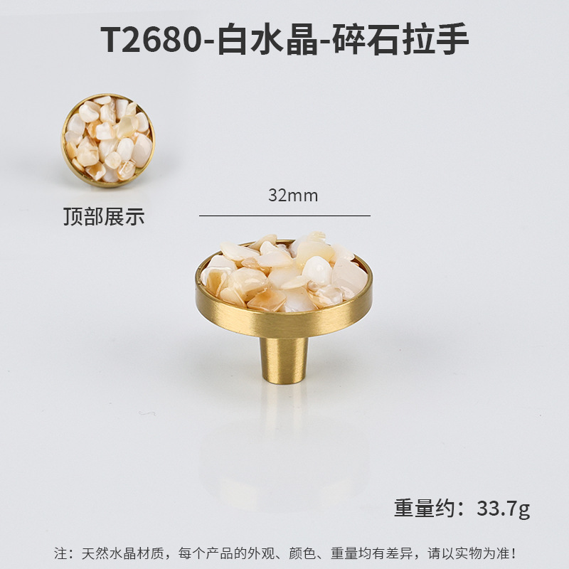 现代简约天然水晶玛瑙单孔小拉手轻奢黄铜抽屉创意贝壳柜子门拉手