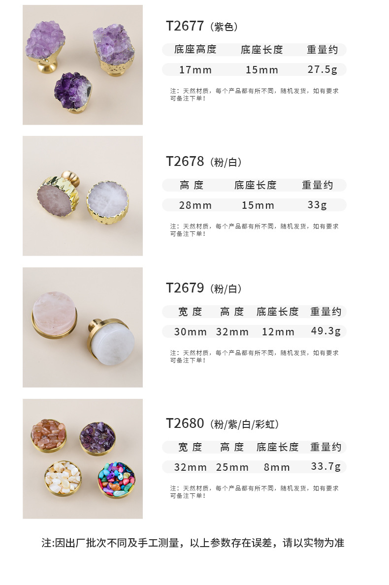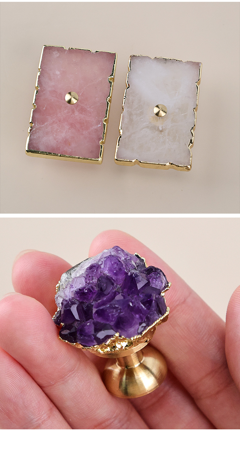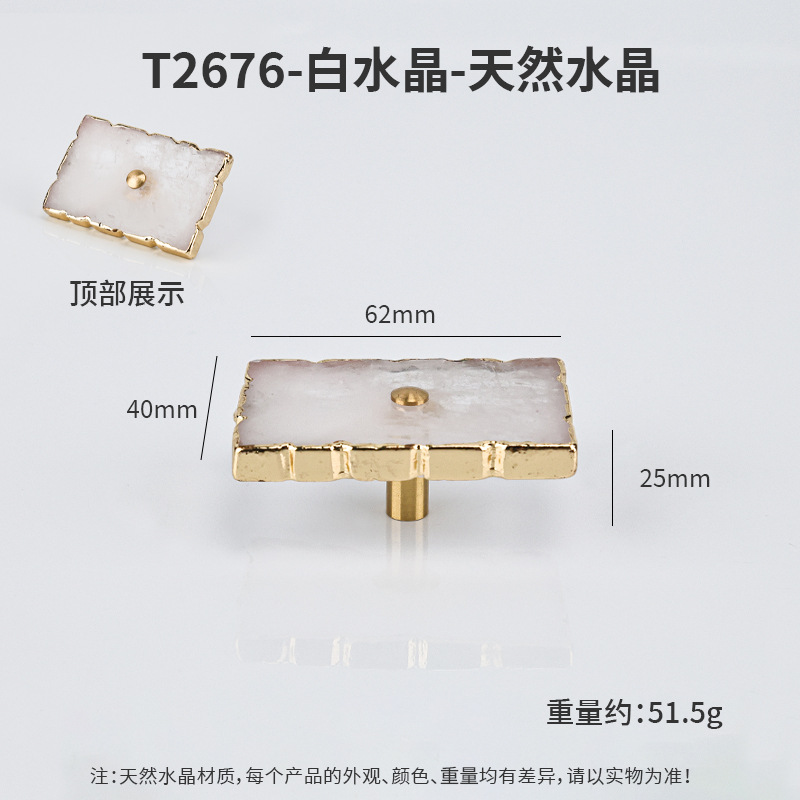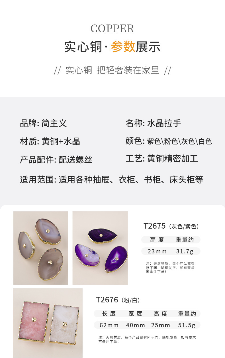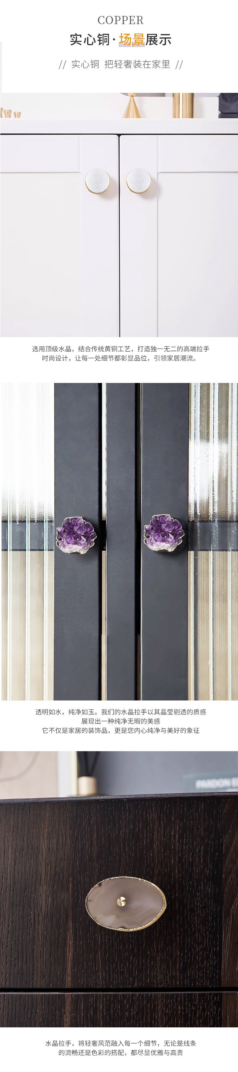现代简约天然水晶玛瑙单孔小拉手轻奢黄铜抽屉创意贝壳柜子门拉手