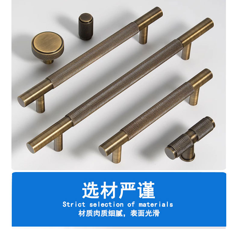 跨境美式拉手柜门轻奢黄铜螺纹抽屉家具衣柜橱柜柜子门把手古铜色