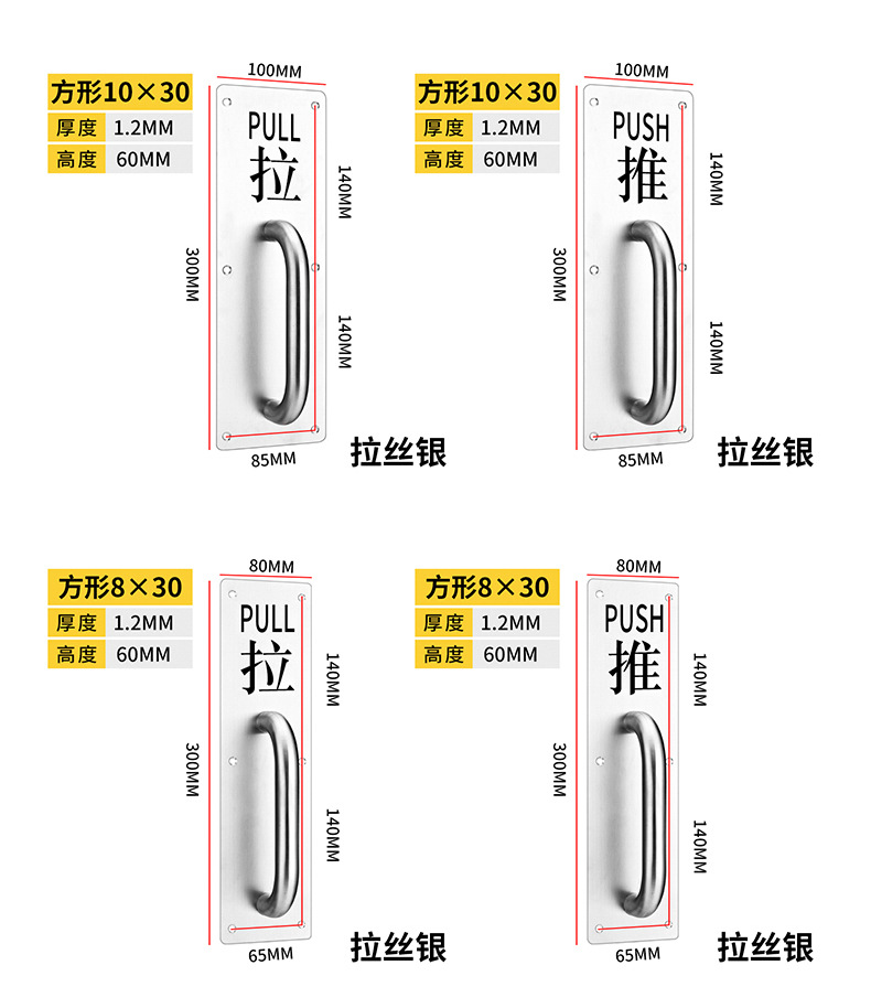 不锈钢推拉板防火门拉手推拉指示牌拉手消防门把手跨境专供