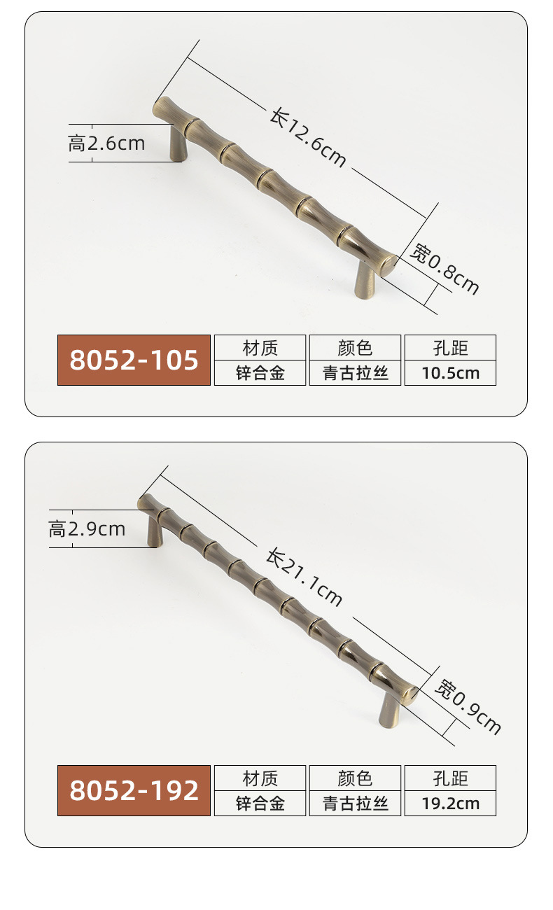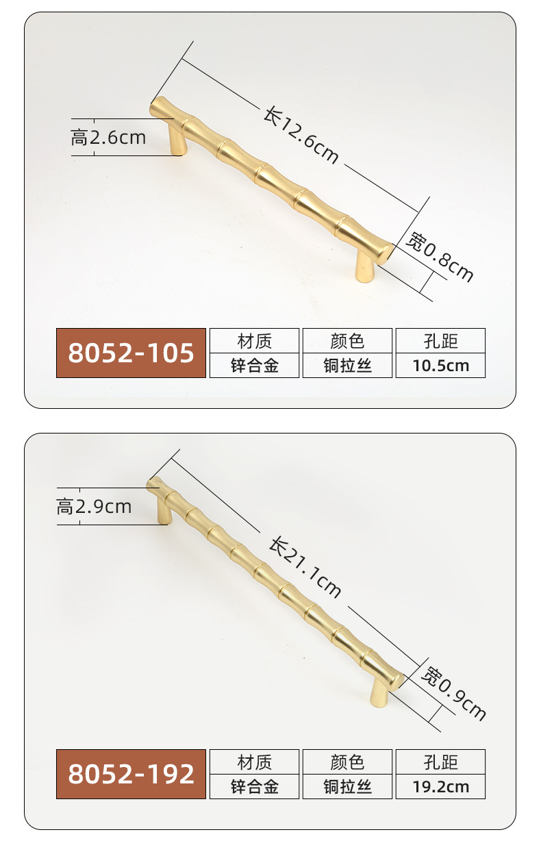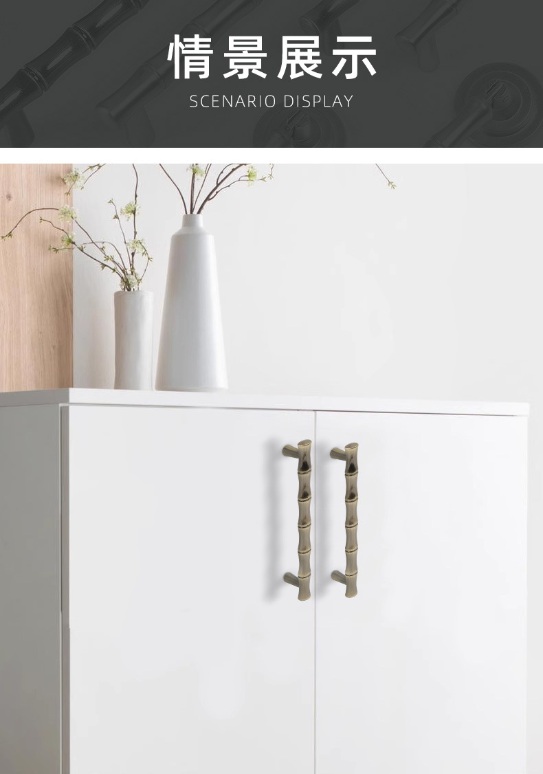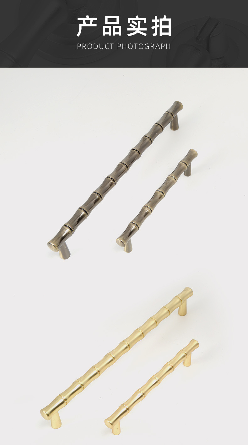 跨境现代简约橱柜竹节拉手中式铜拉丝酒柜抽屉衣柜门把手家具五金