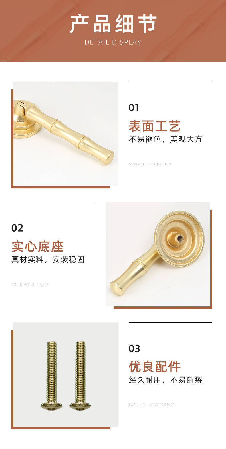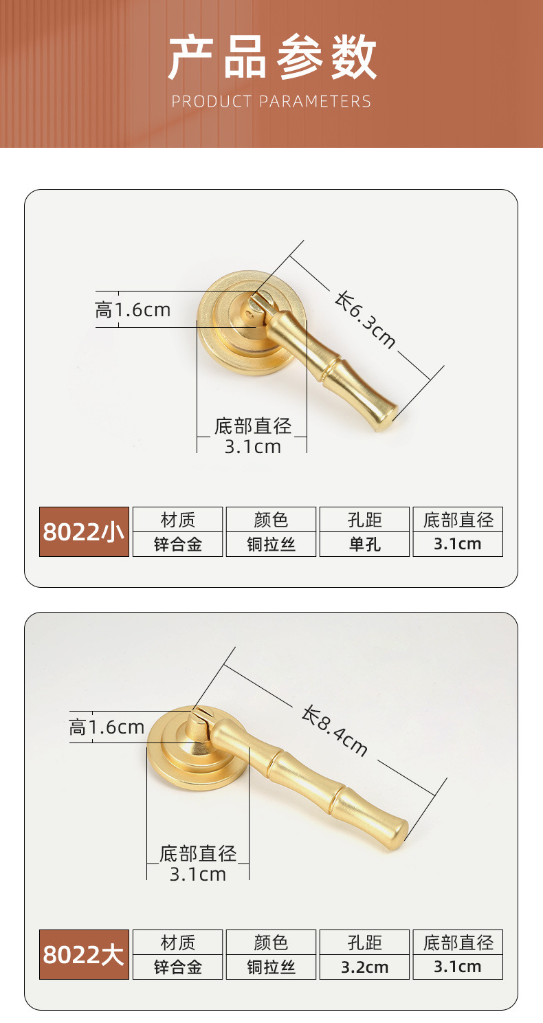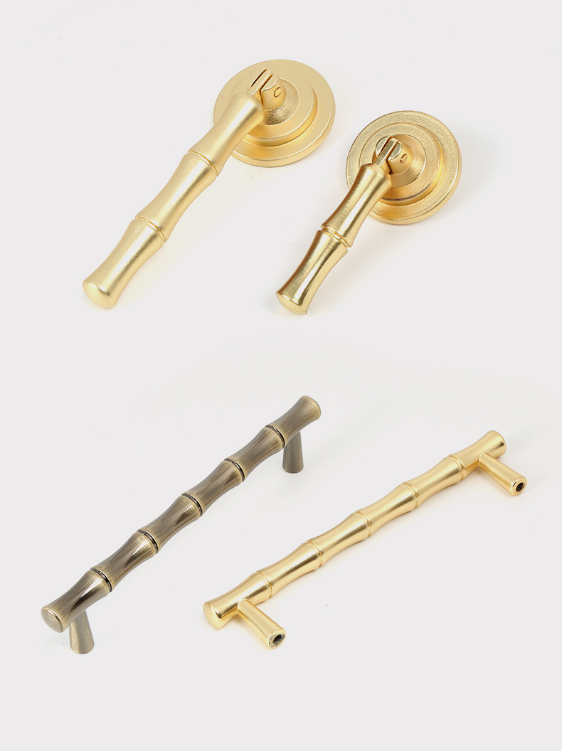 跨境现代简约橱柜竹节拉手中式铜拉丝酒柜抽屉衣柜门把手家具五金