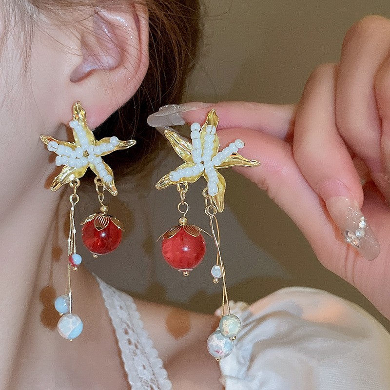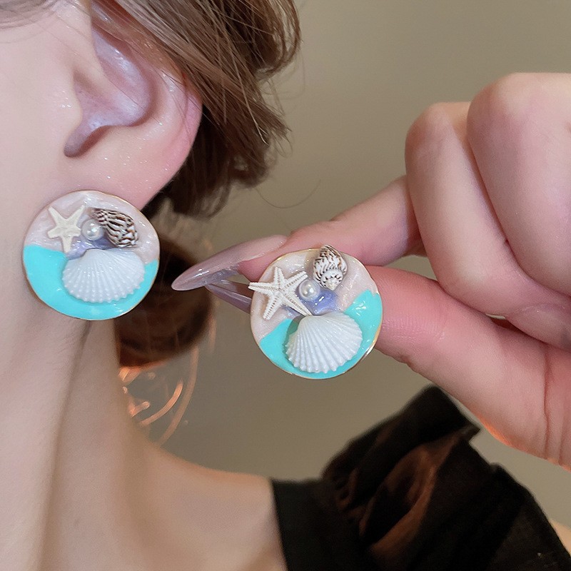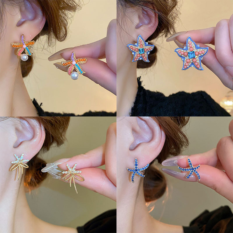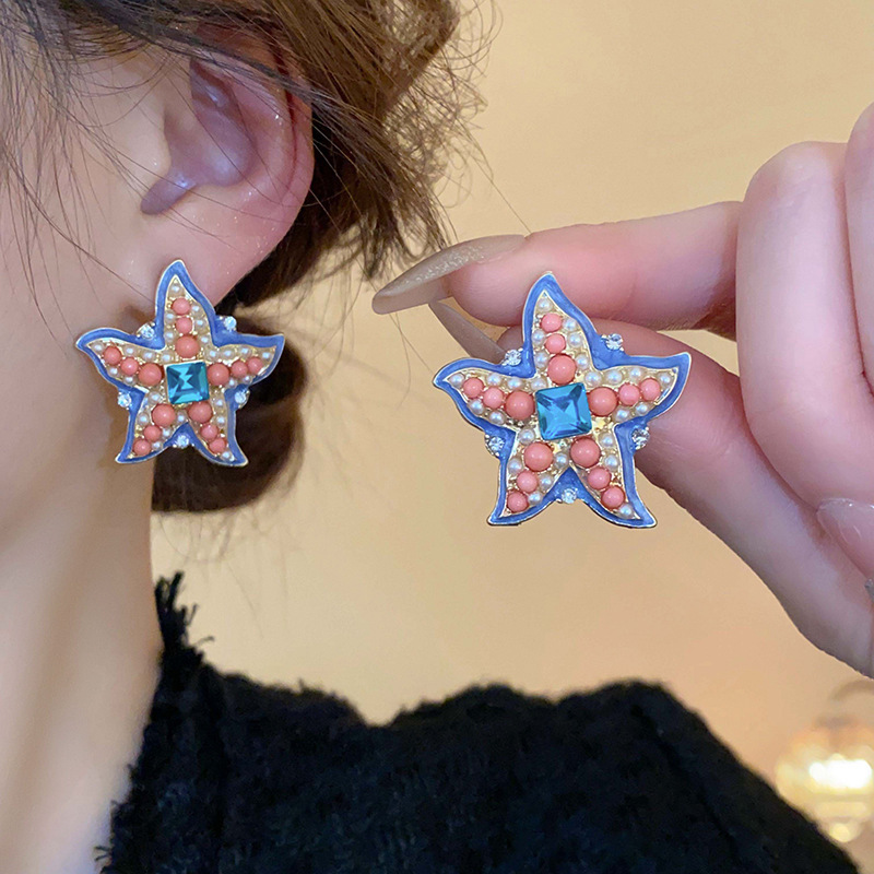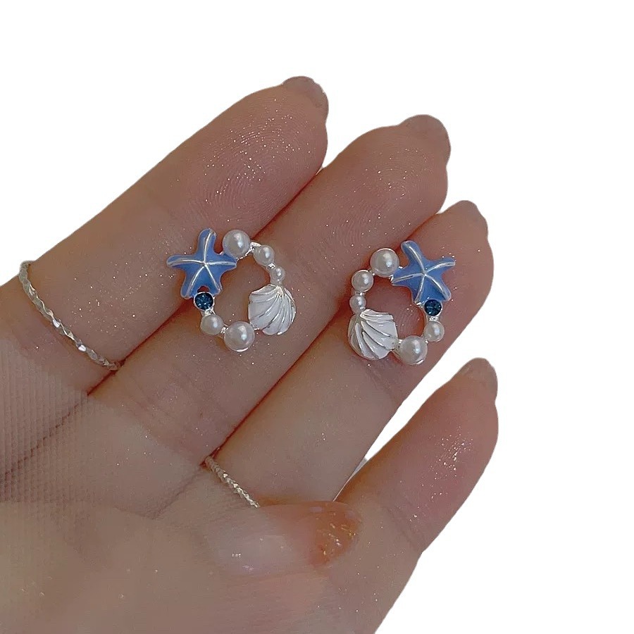 饰品小巧精致百搭海星耳环高级感耳饰银针夏日海滩米珠耳钉女批发