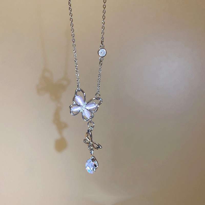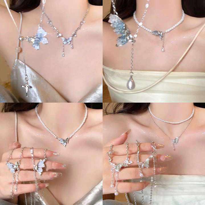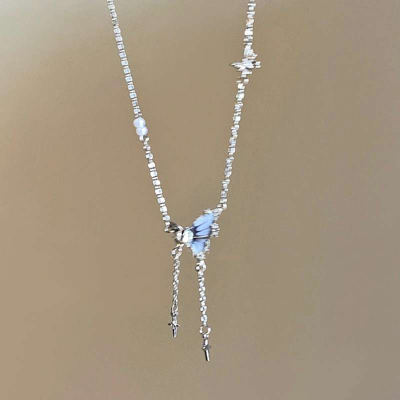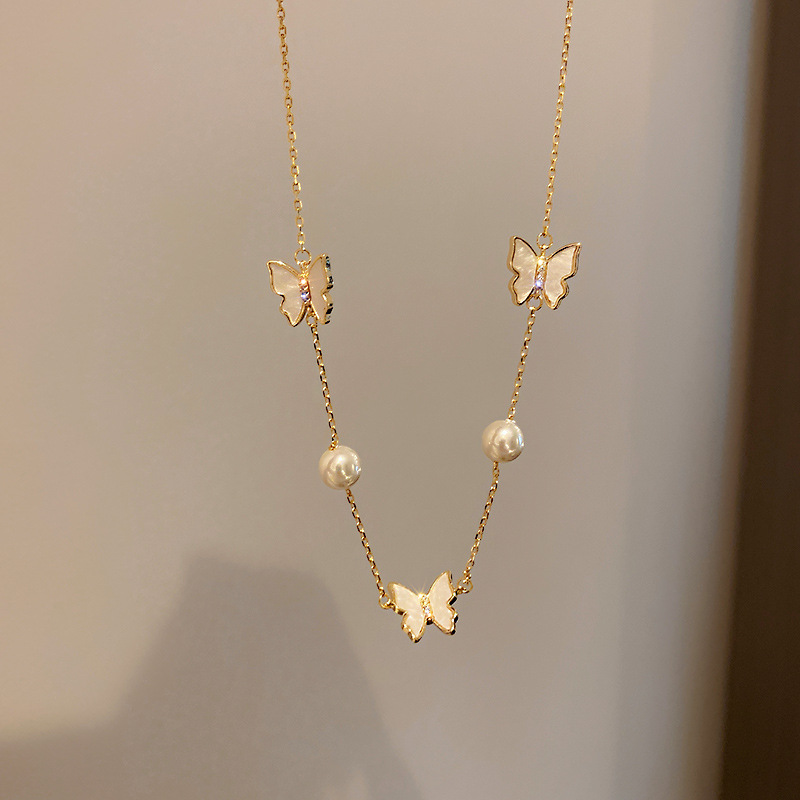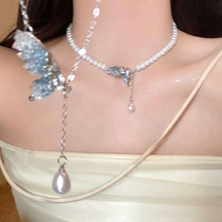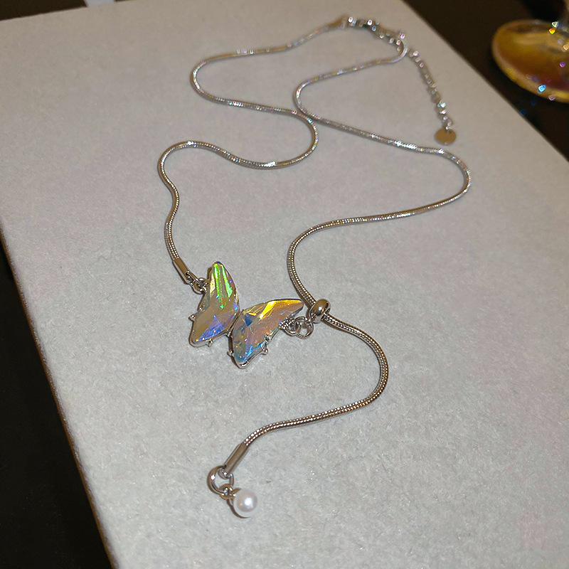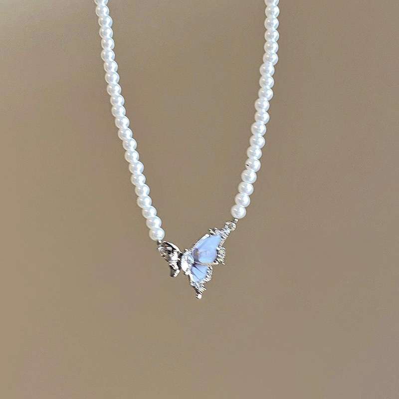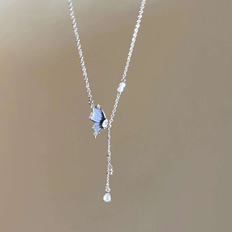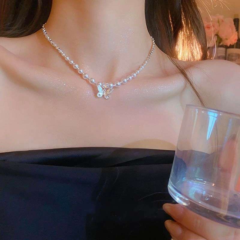 饰品小众时尚项饰闪钻蝴蝶珍珠吊坠项链气质高级感精致锁骨链批发