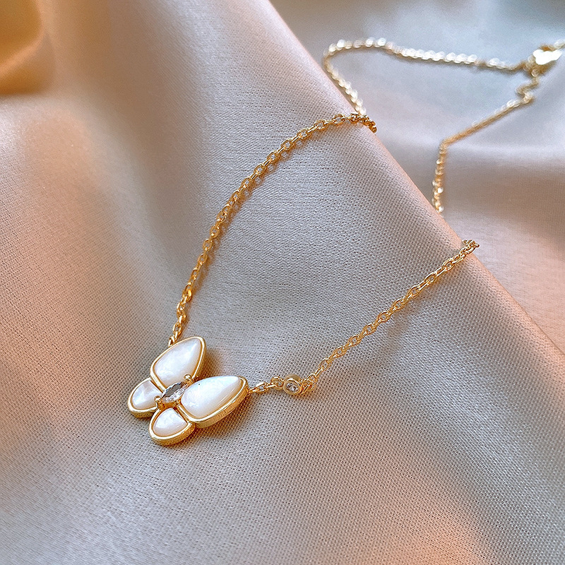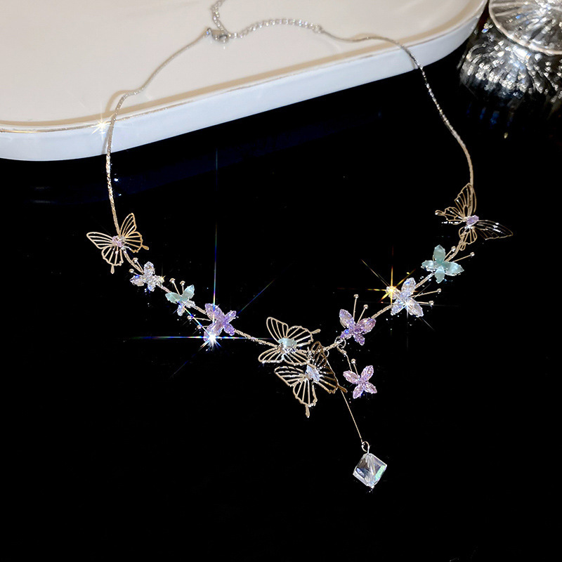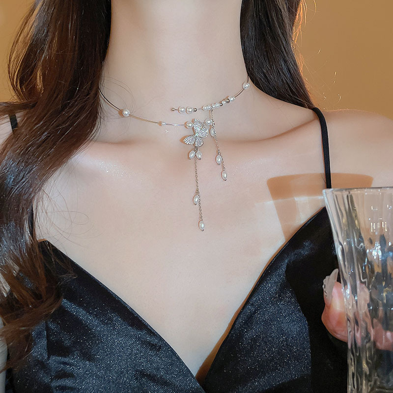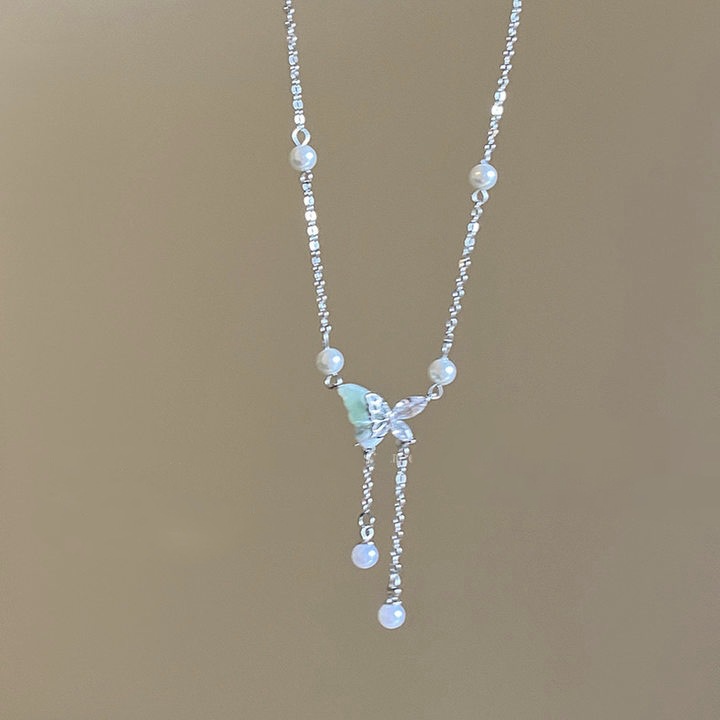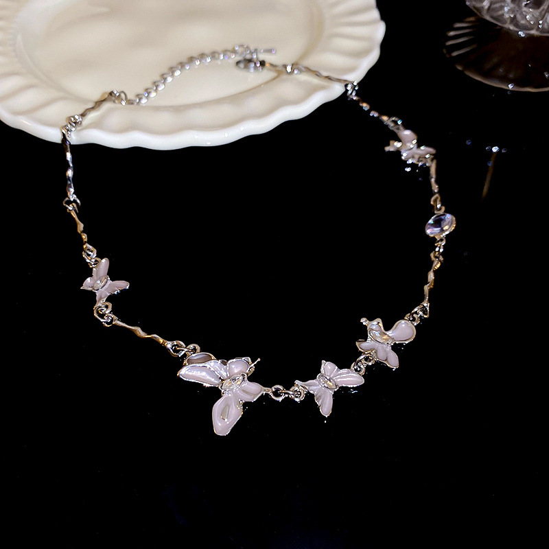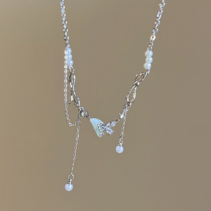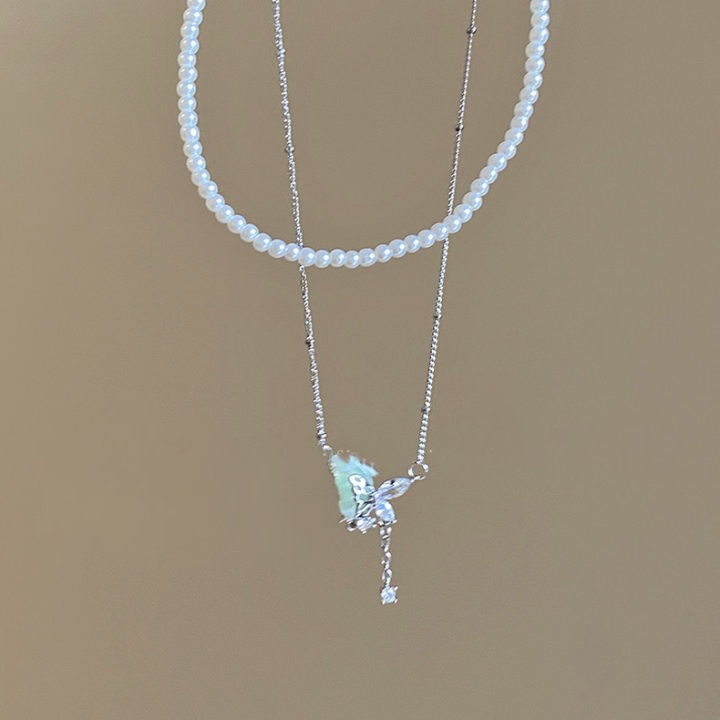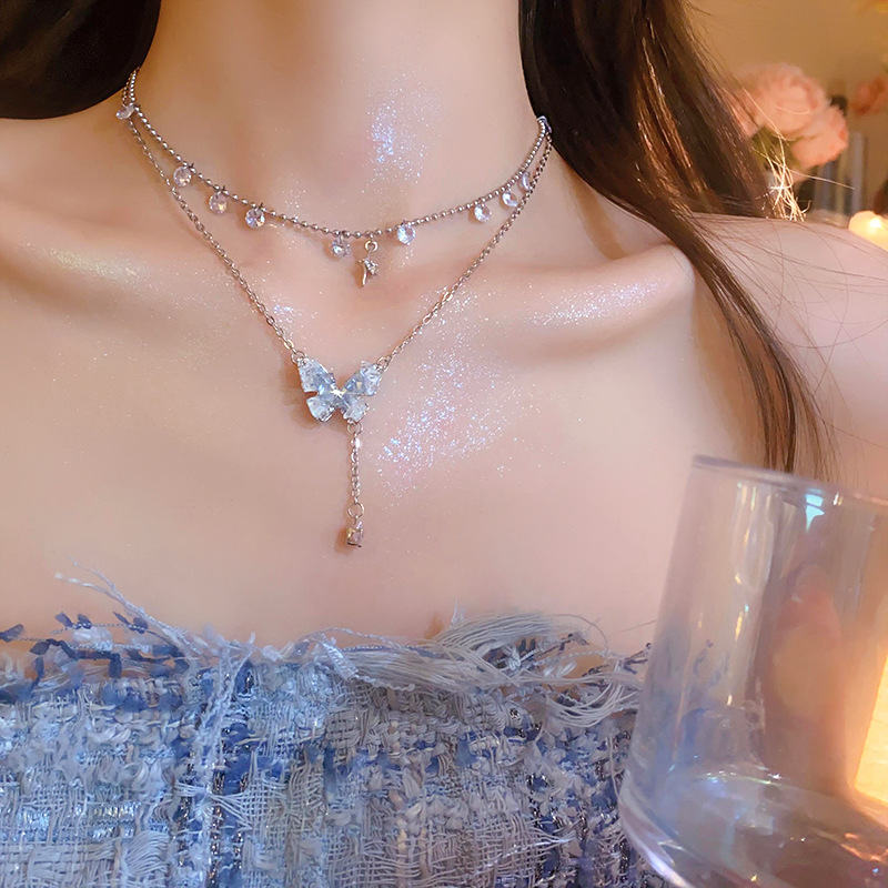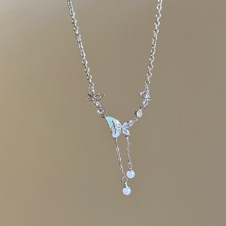 饰品小众时尚项饰闪钻蝴蝶珍珠吊坠项链气质高级感精致锁骨链批发