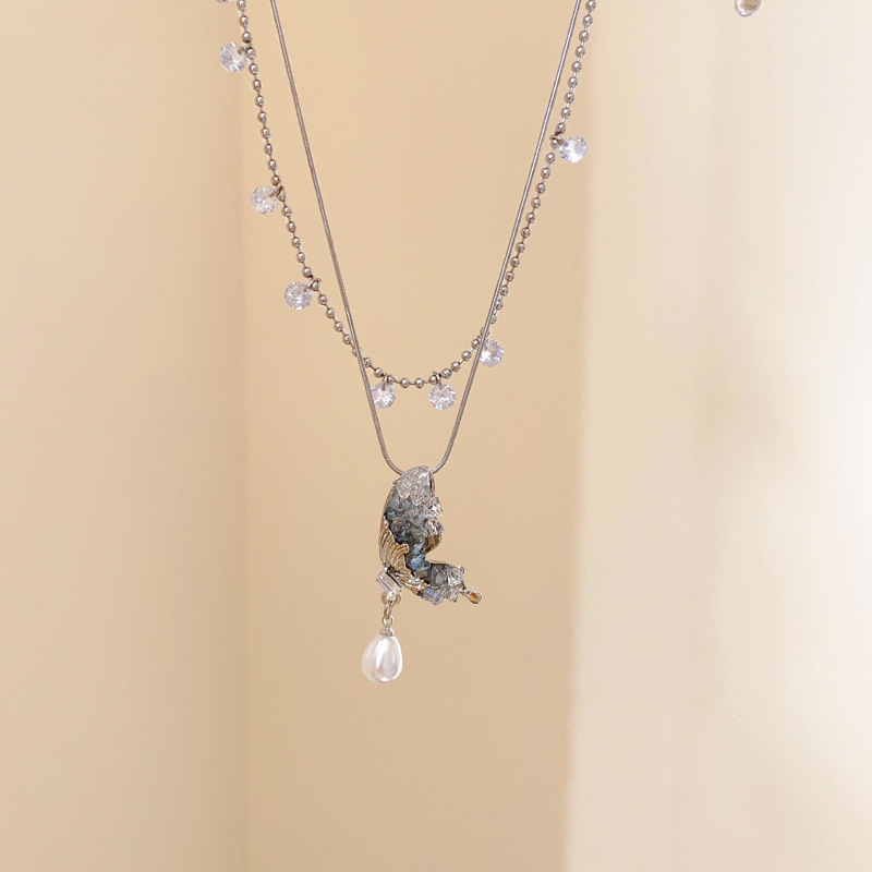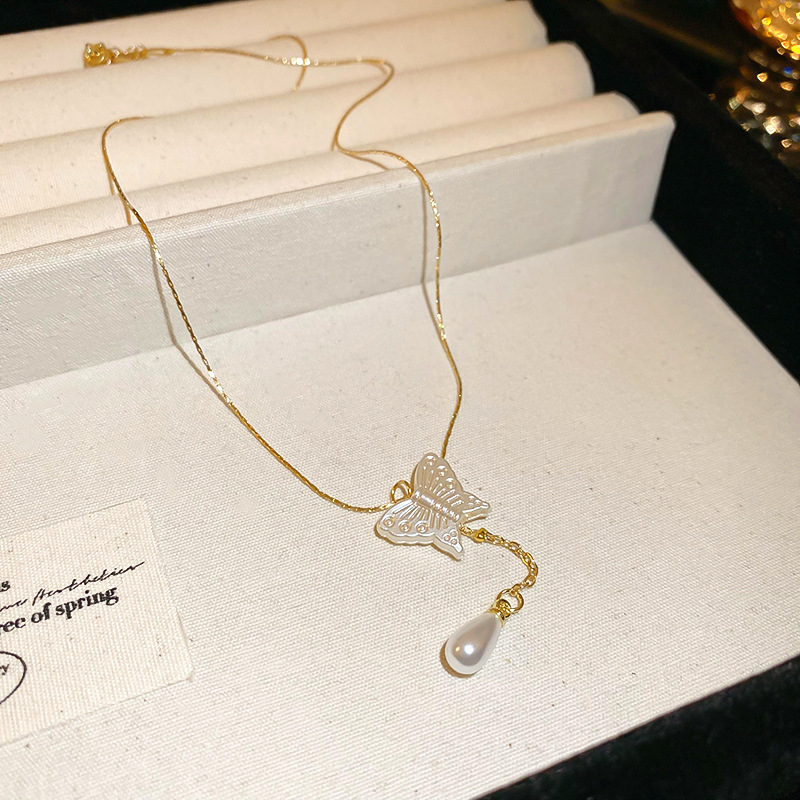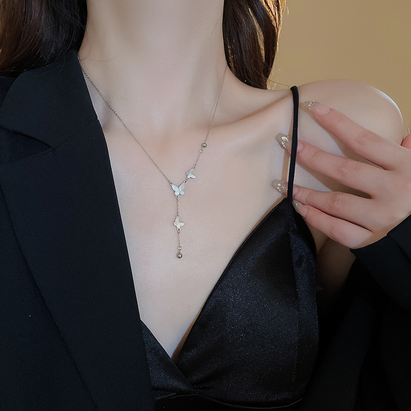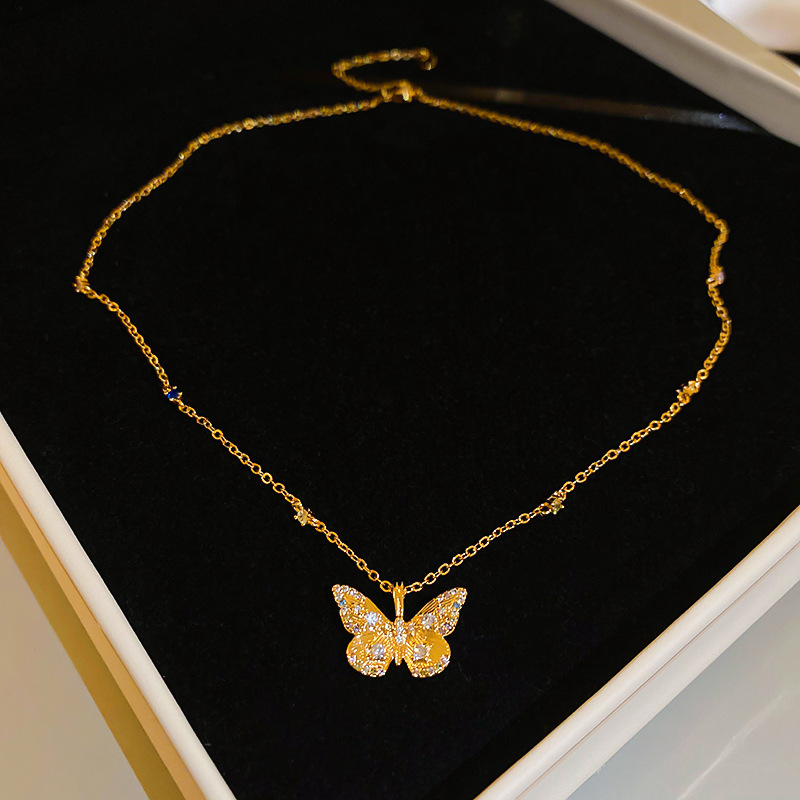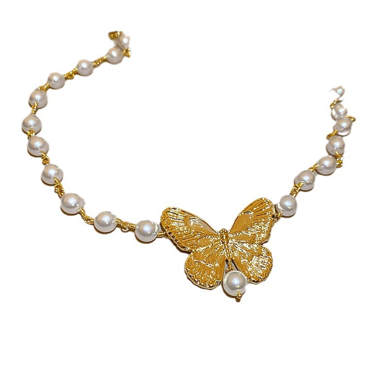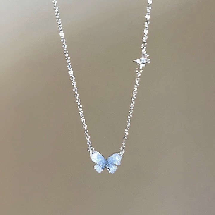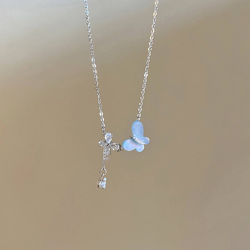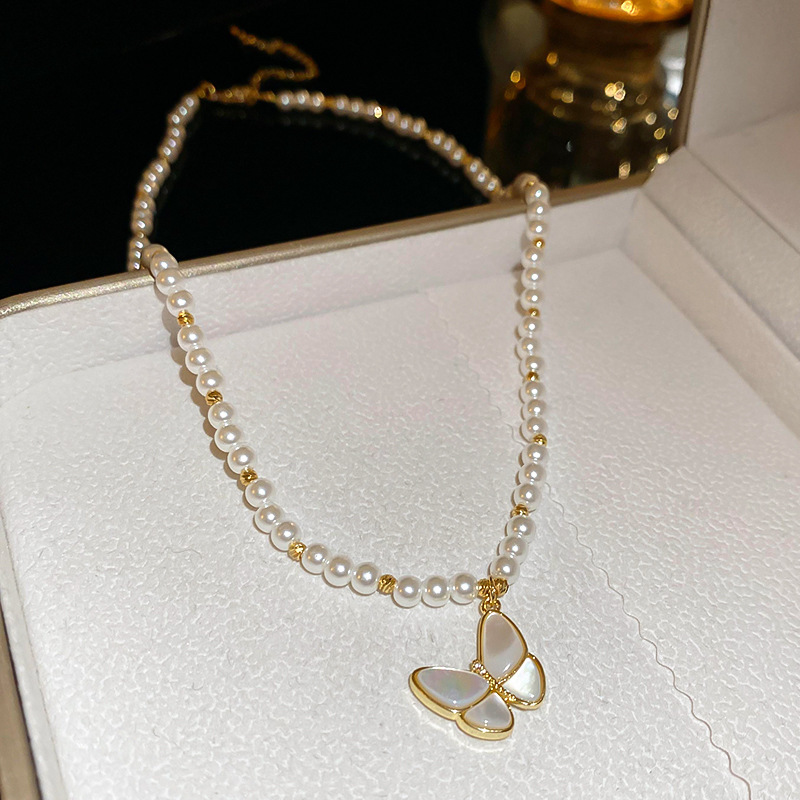 饰品小众时尚项饰闪钻蝴蝶珍珠吊坠项链气质高级感精致锁骨链批发