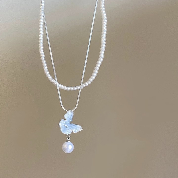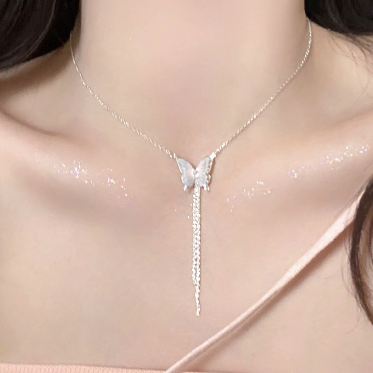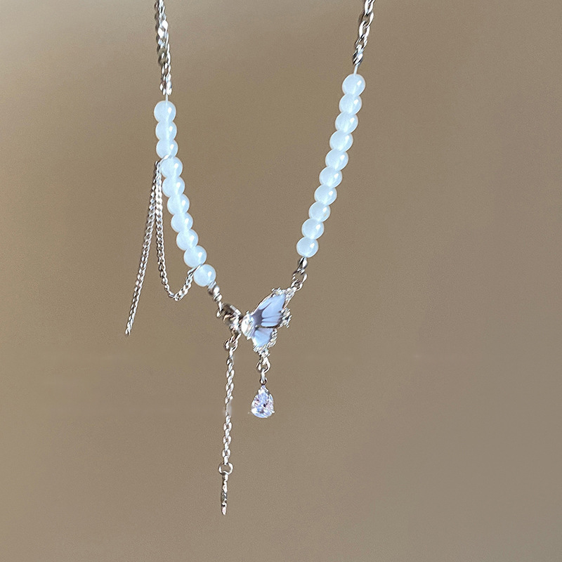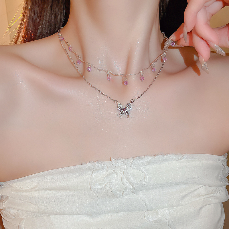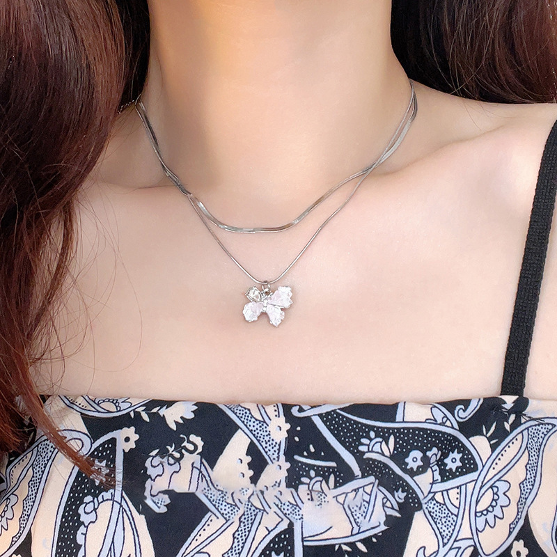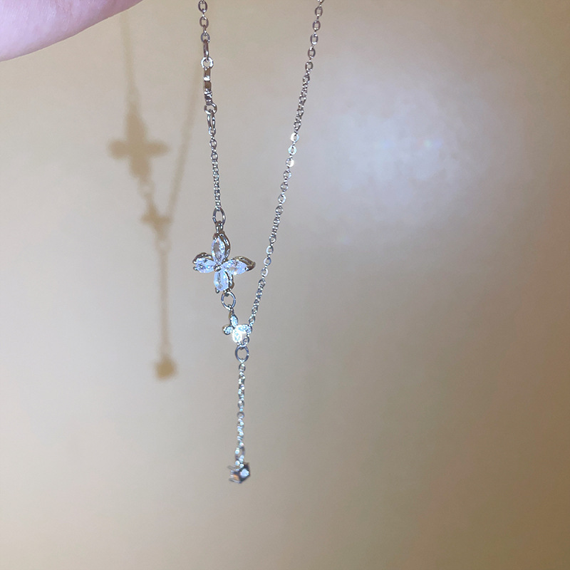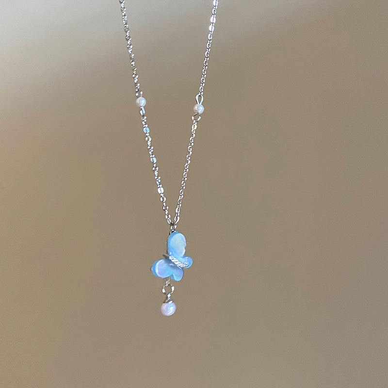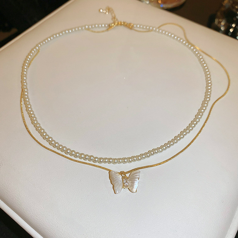 饰品小众时尚项饰闪钻蝴蝶珍珠吊坠项链气质高级感精致锁骨链批发