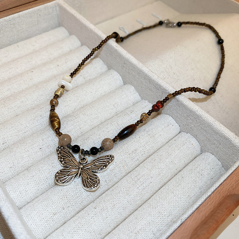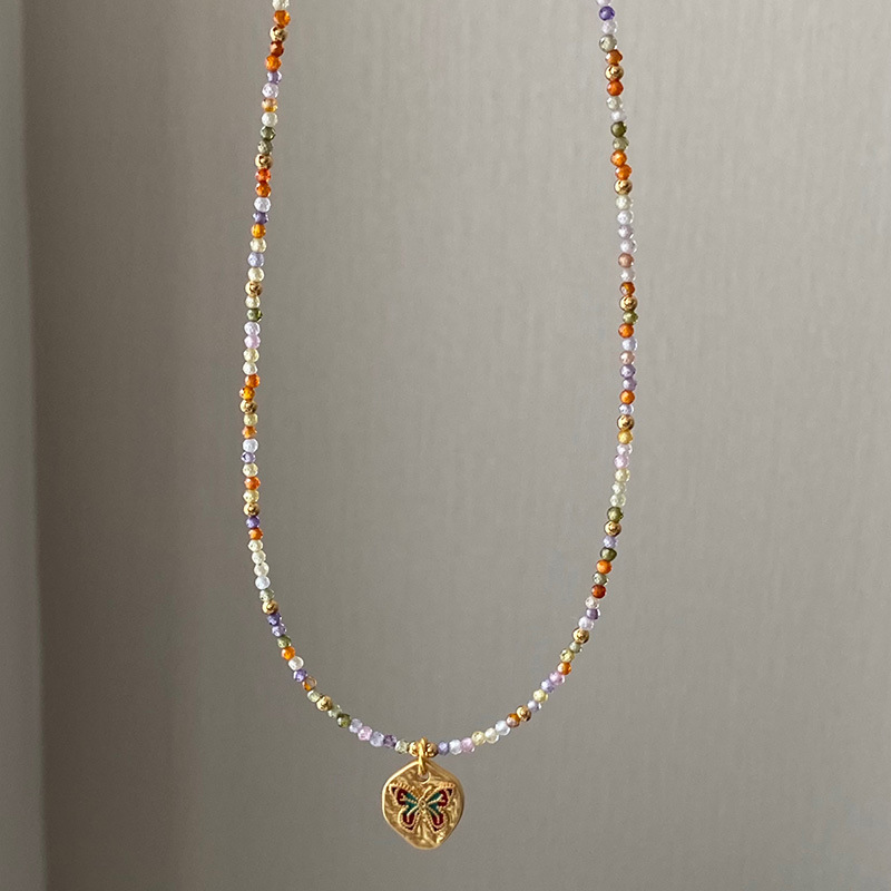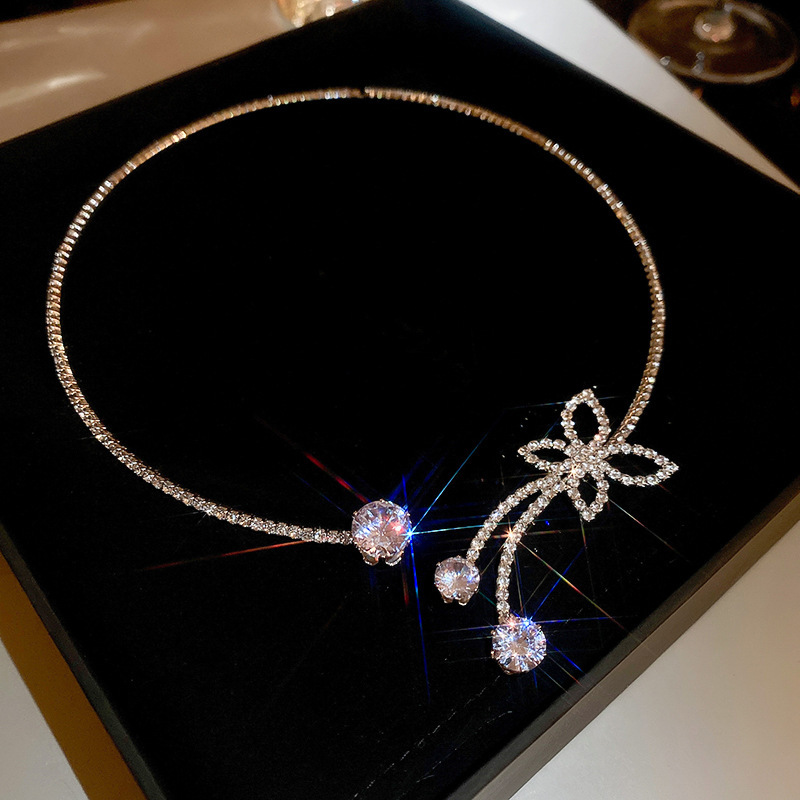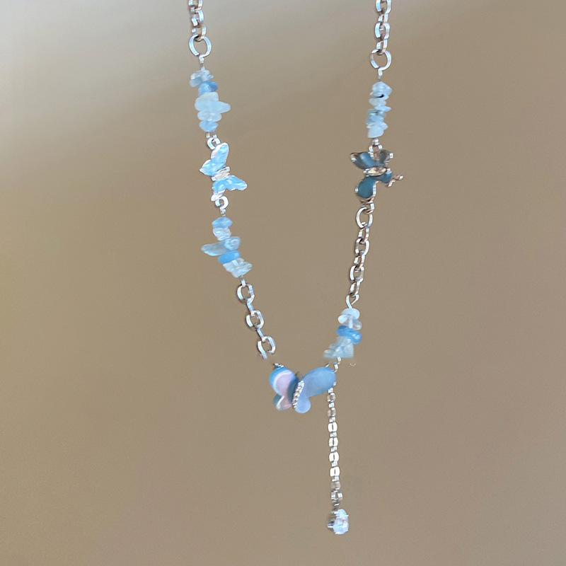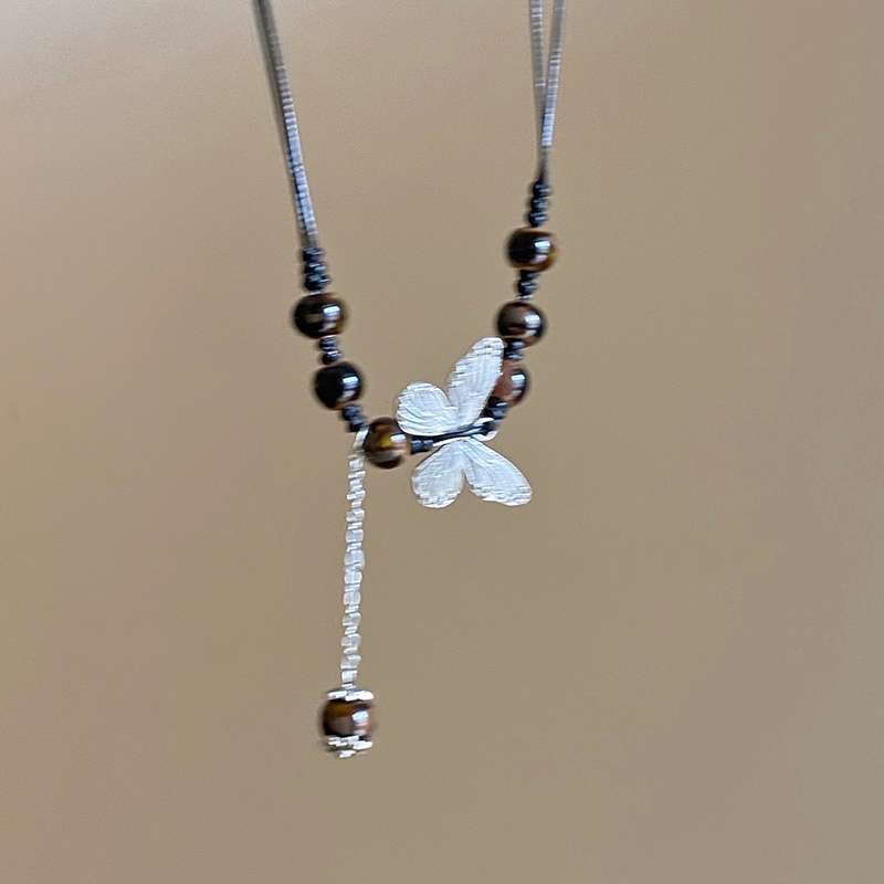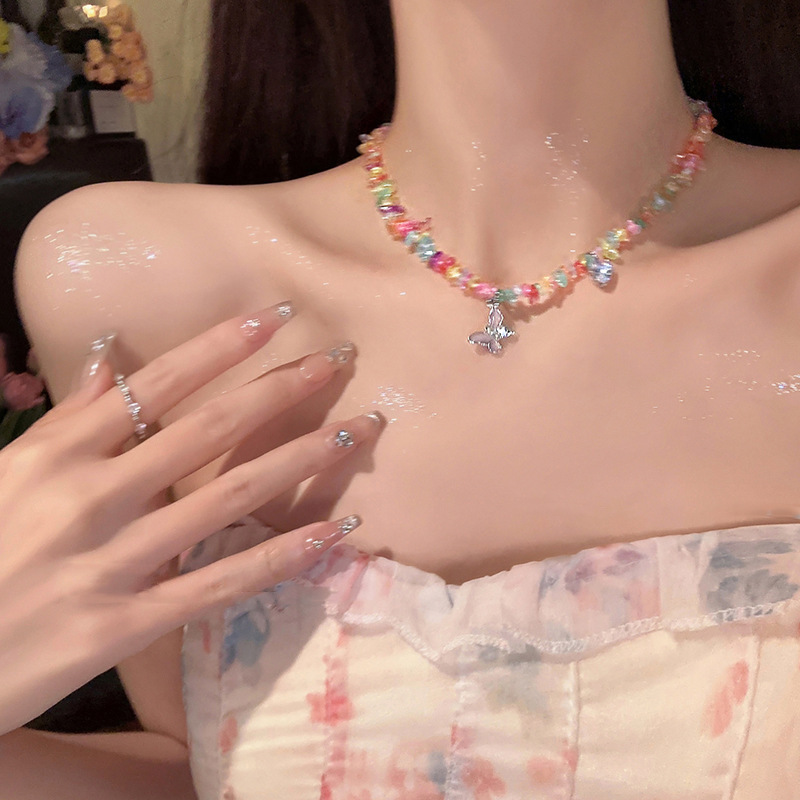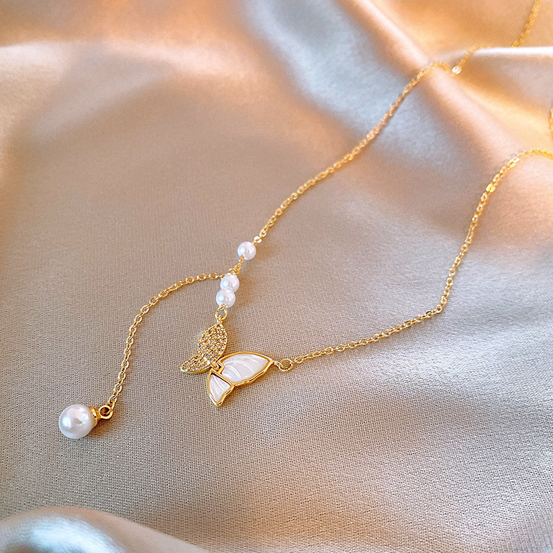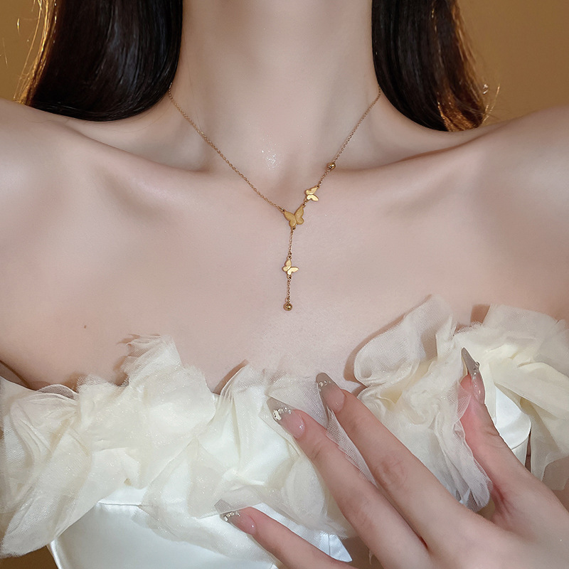 饰品小众时尚项饰闪钻蝴蝶珍珠吊坠项链气质高级感精致锁骨链批发