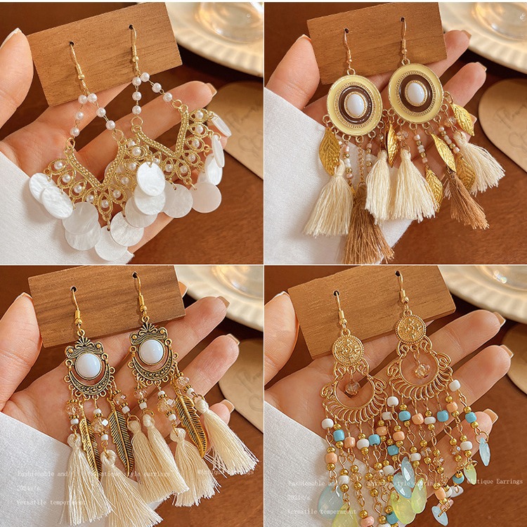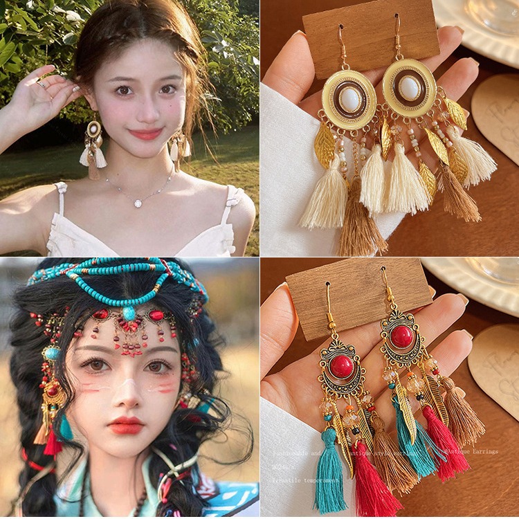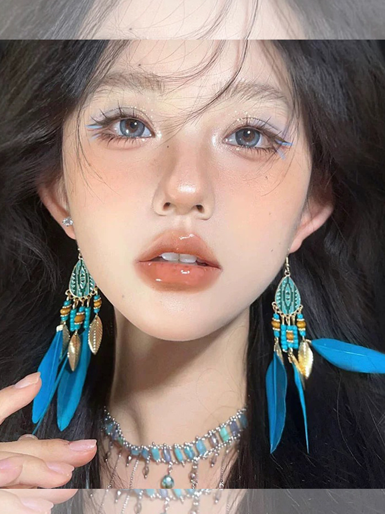 饰品新款爆款高级感耳饰波西米亚风耳环女长款羽毛流苏民族风耳坠