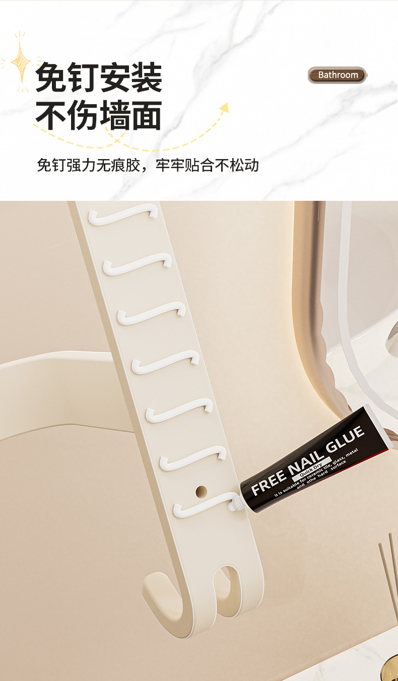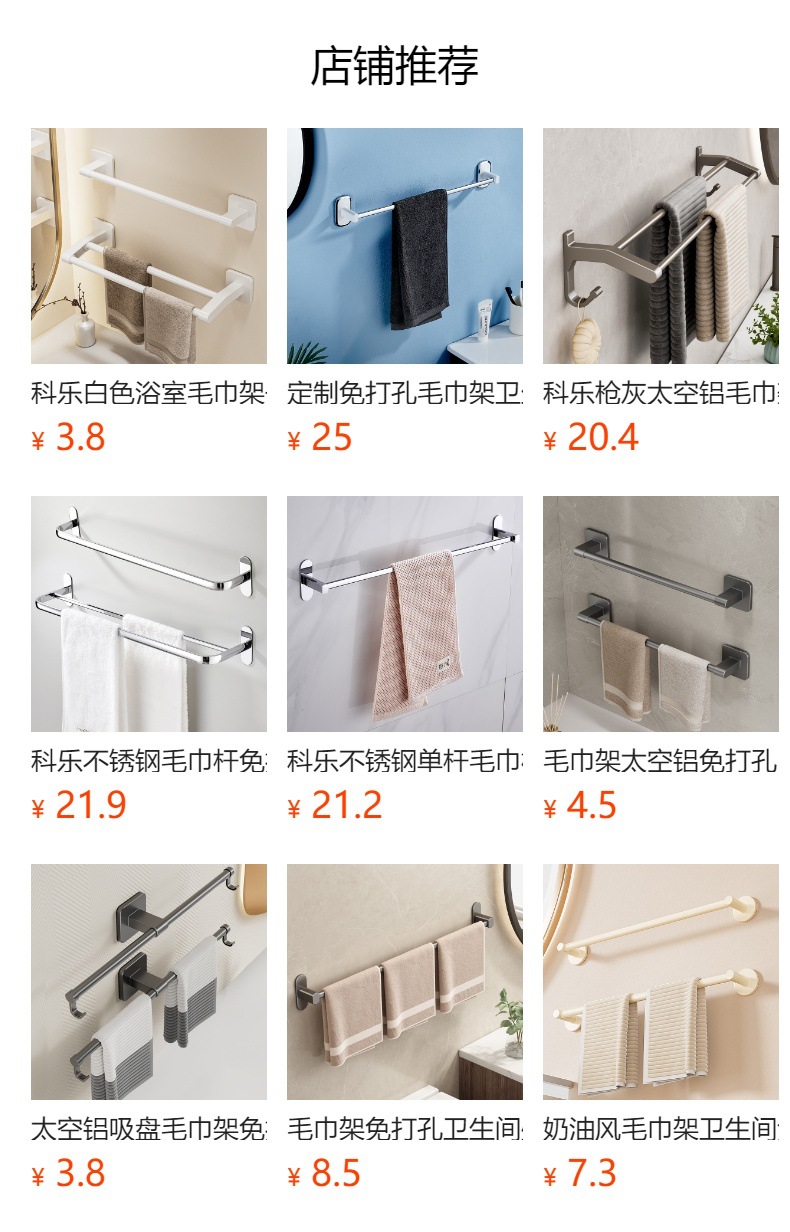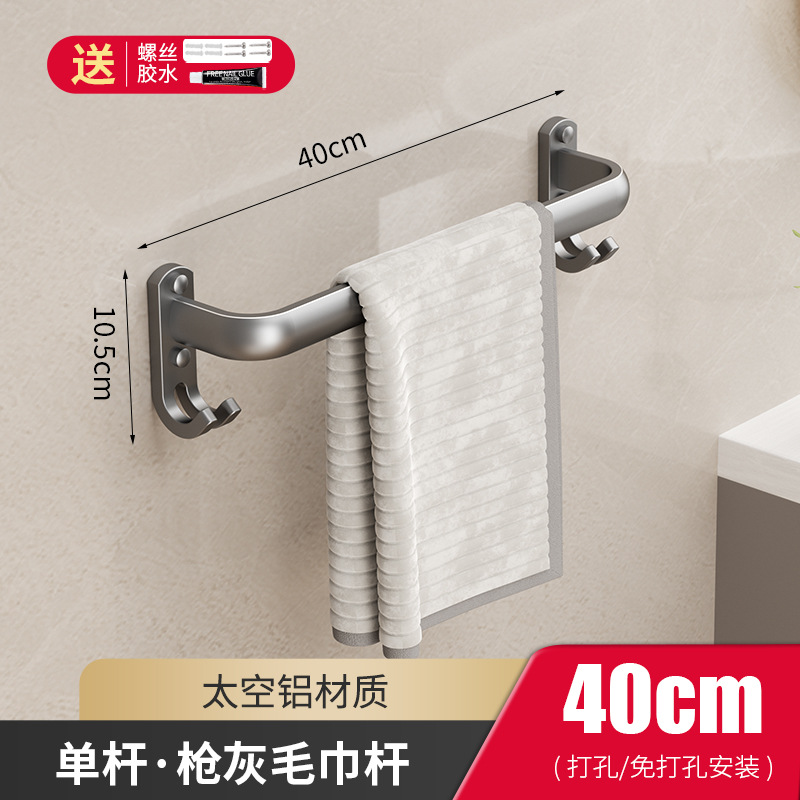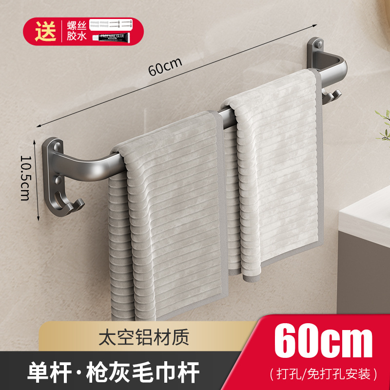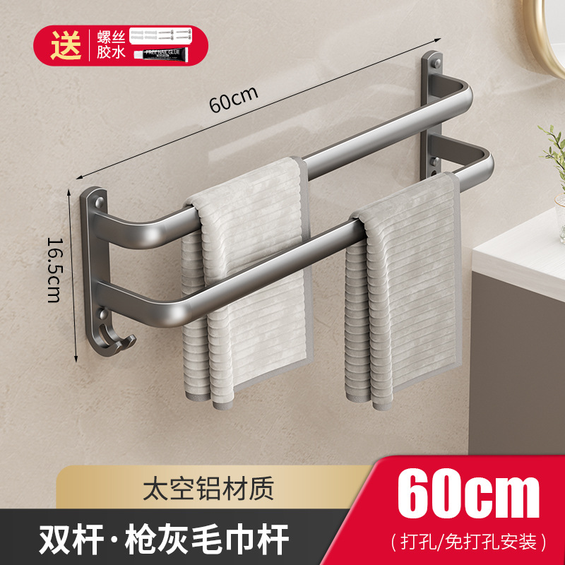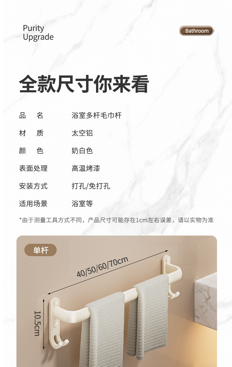 奶油风免打孔太空铝毛巾架多层卫生间浴巾挂杆浴室多杆挂架置物架