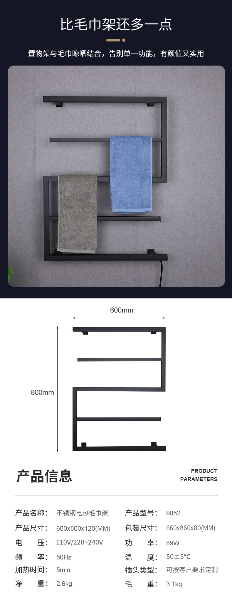 跨境货源异型加热毛巾架衣物烘干架插电电热毛巾架卫浴弓字浴巾架