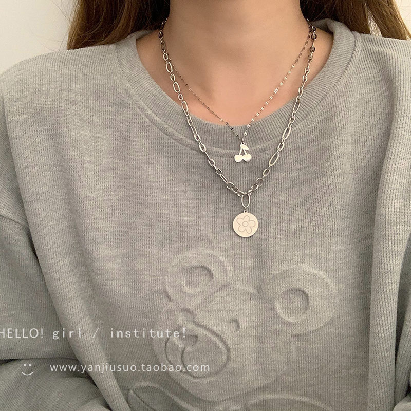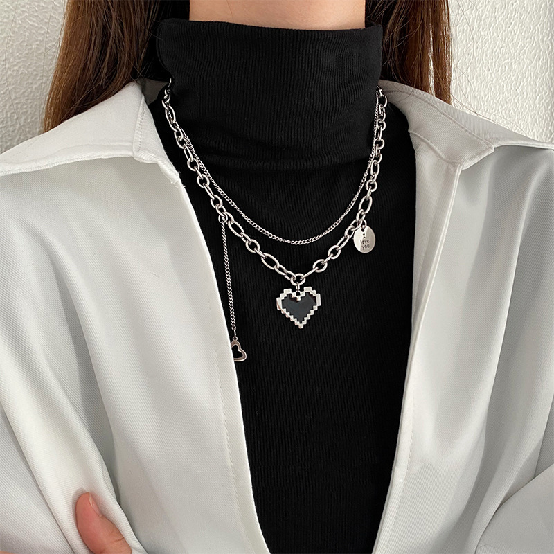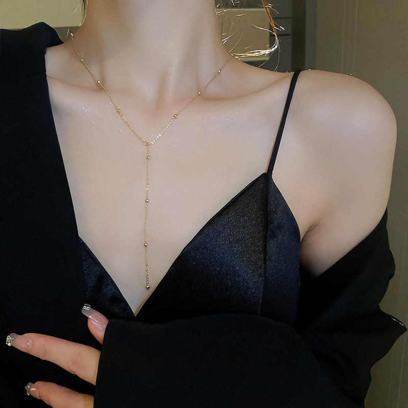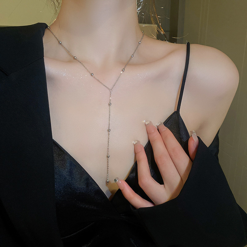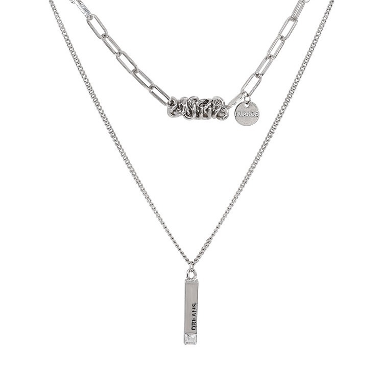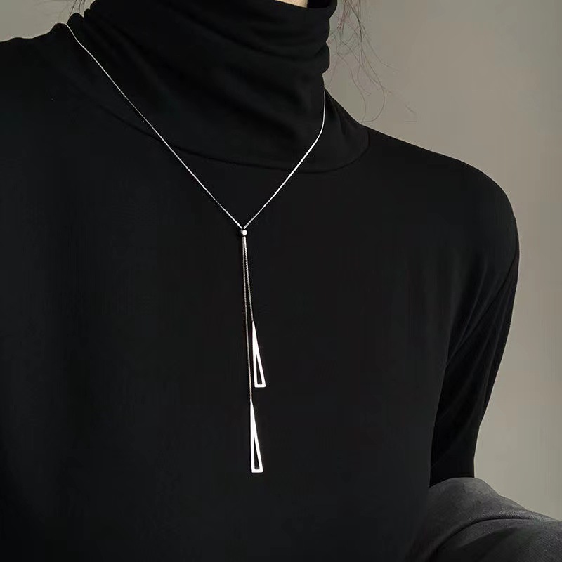 个性饰品甜酷风辣妹毛衣链百搭气质饰品方形链条双层流苏项链批发