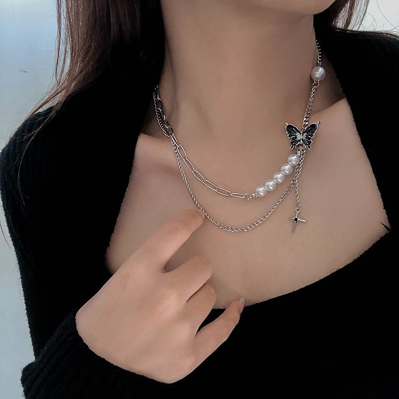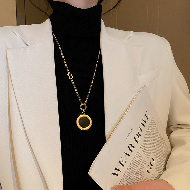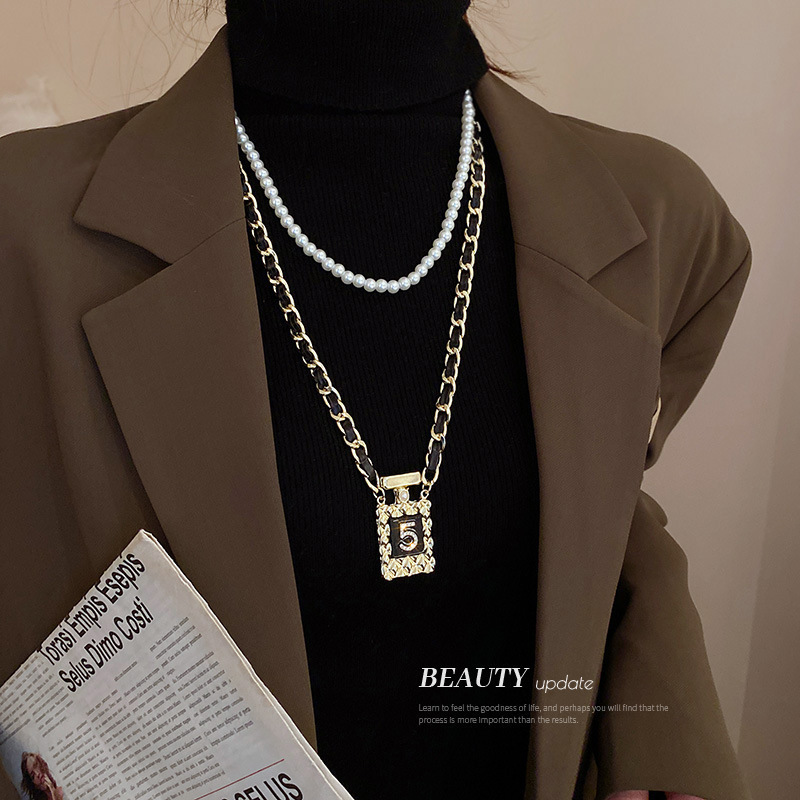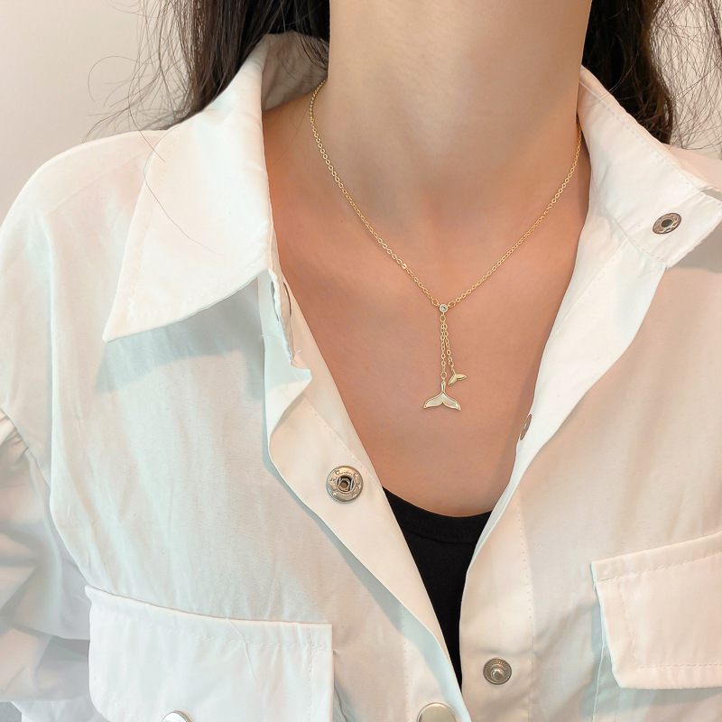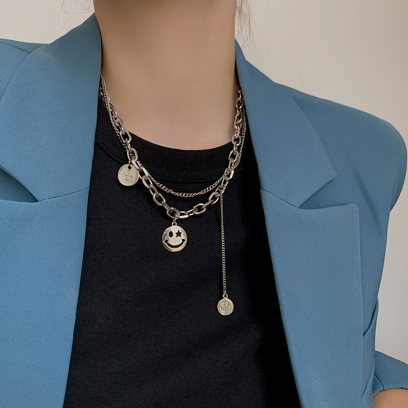 个性饰品甜酷风辣妹毛衣链百搭气质饰品方形链条双层流苏项链批发