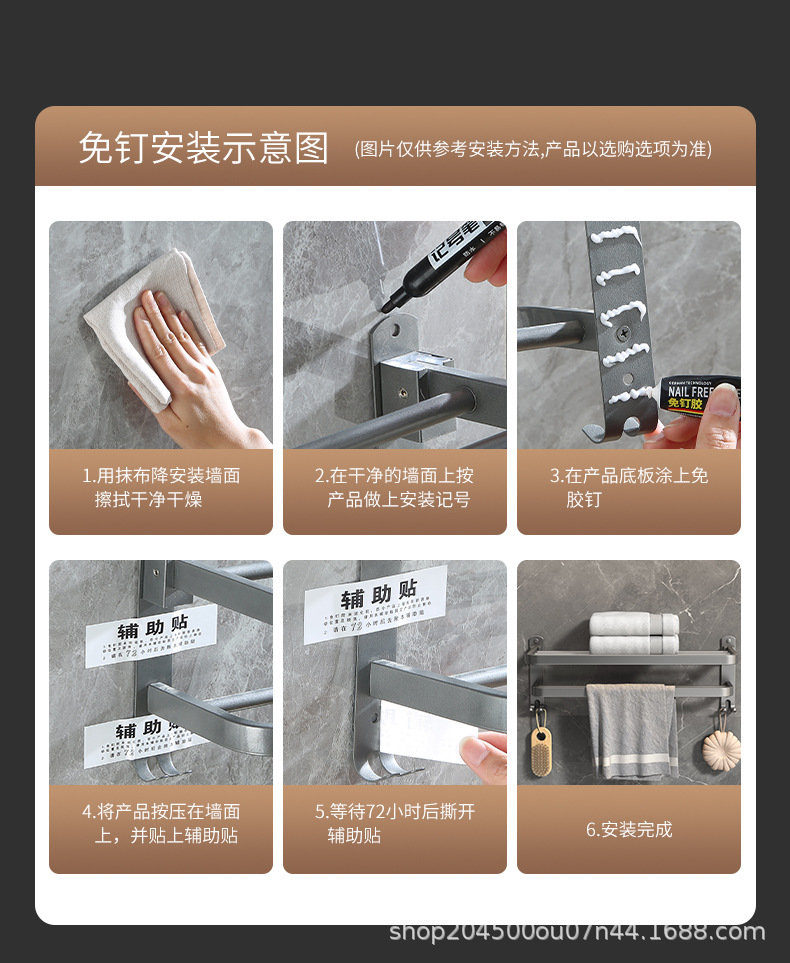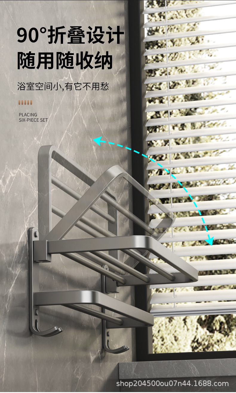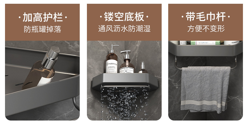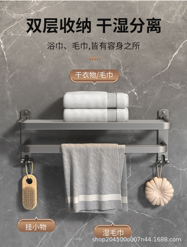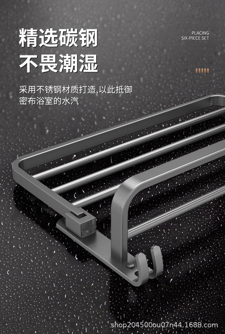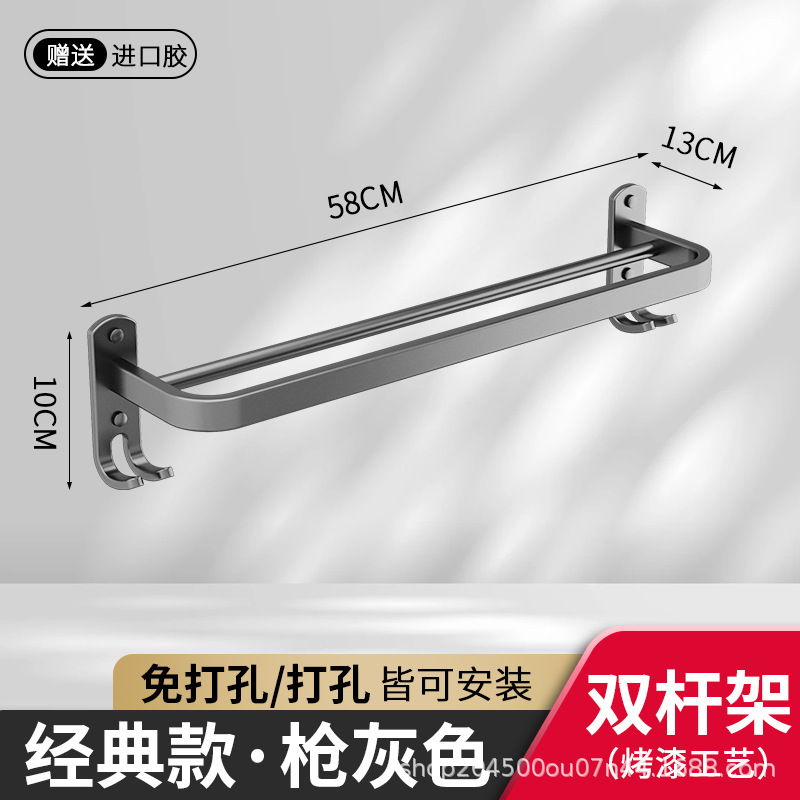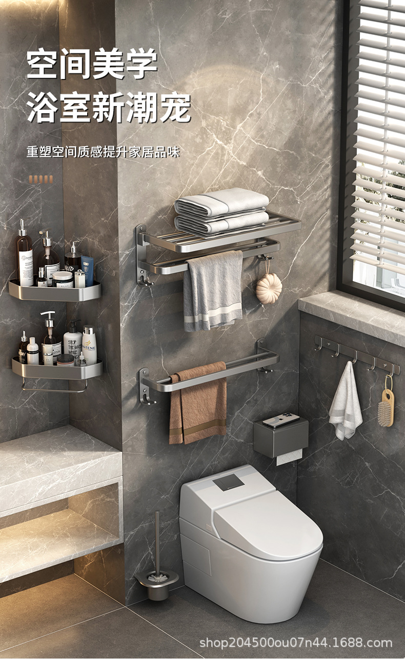 跨境枪灰免打孔卫生间置物架浴室毛巾架厕所浴巾收纳架卫浴套装