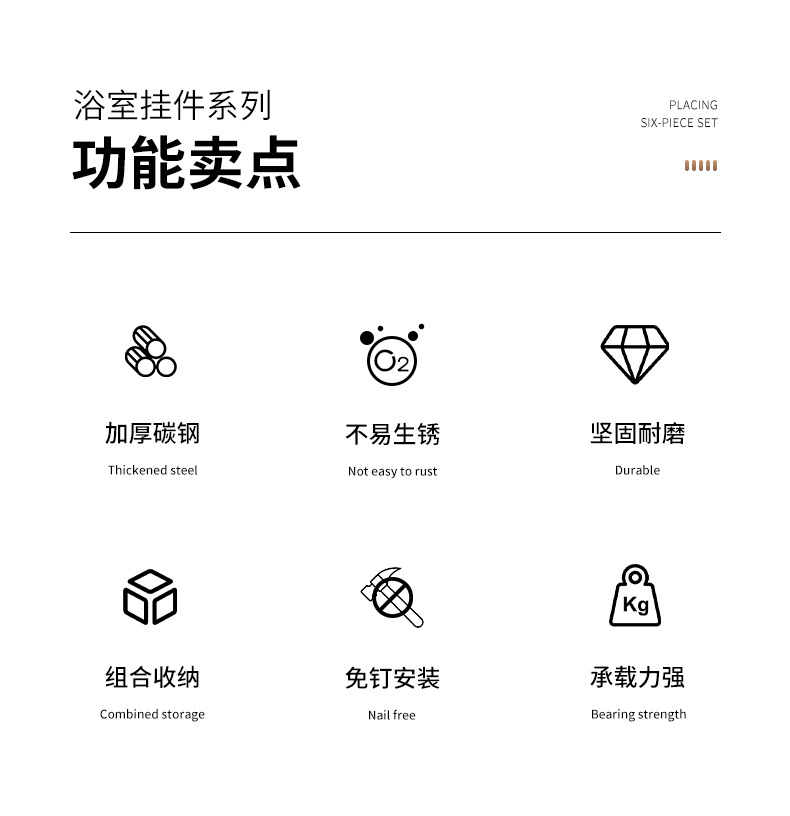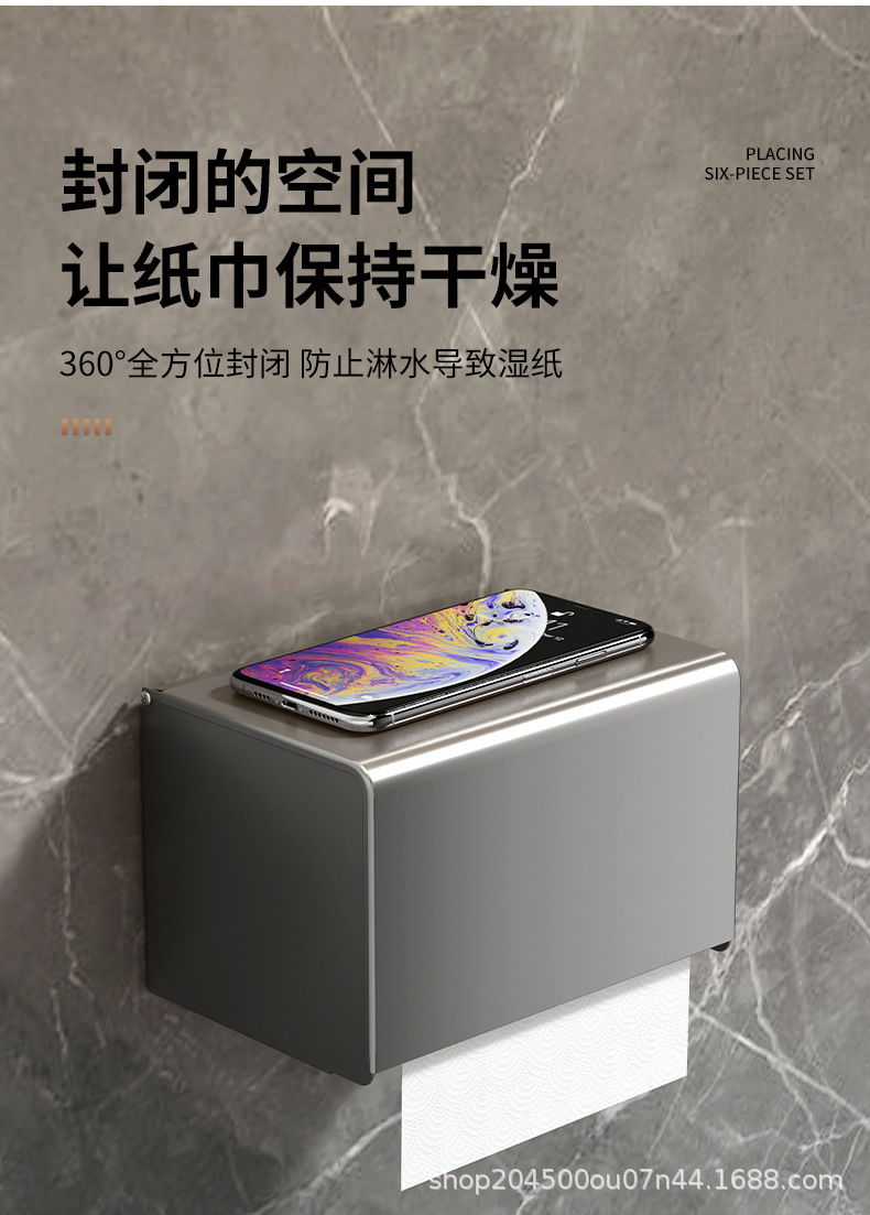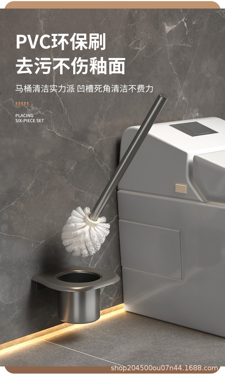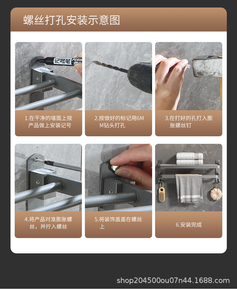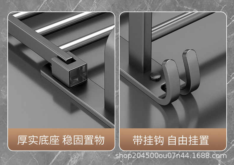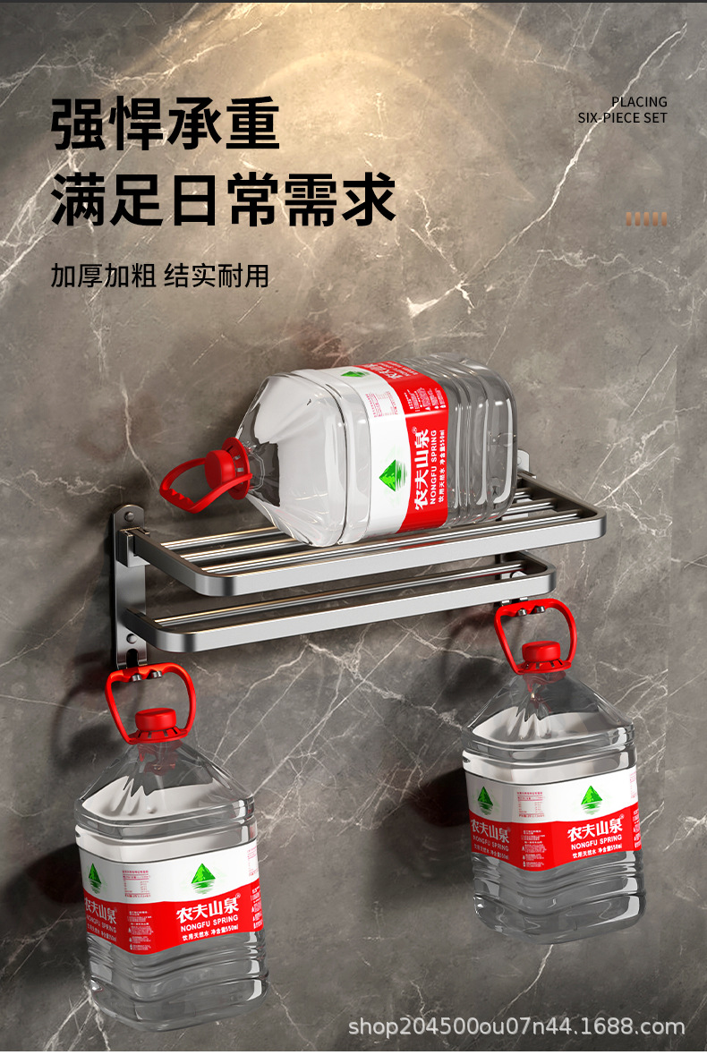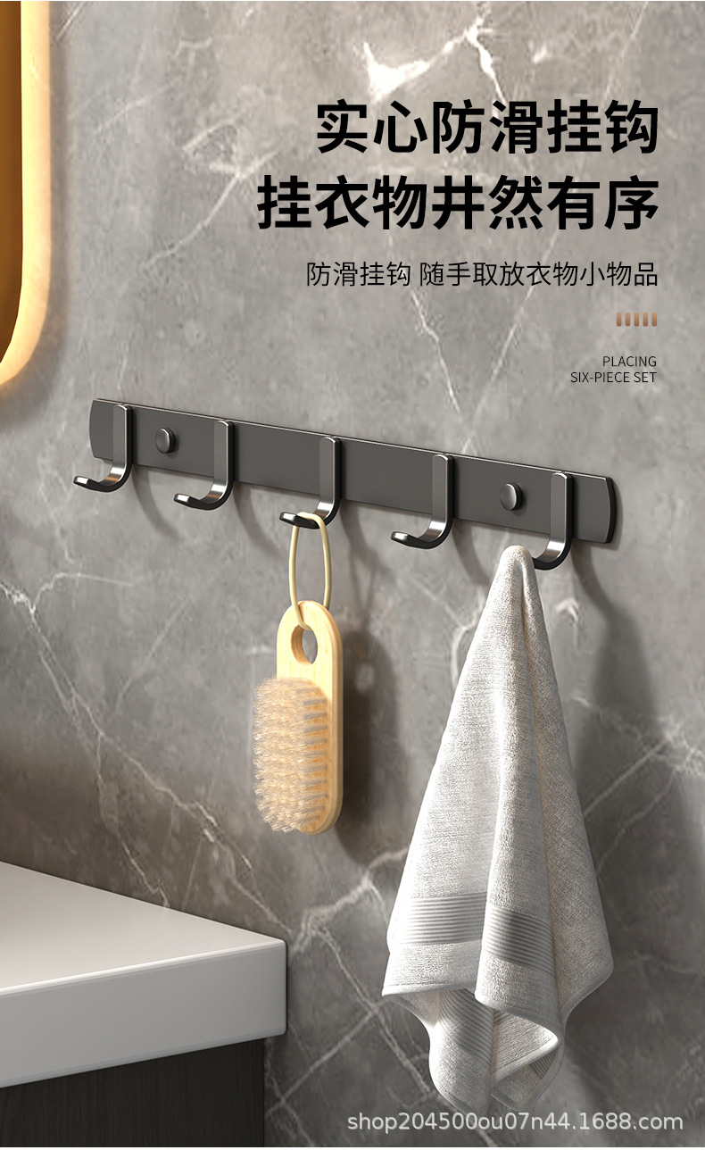 跨境枪灰免打孔卫生间置物架浴室毛巾架厕所浴巾收纳架卫浴套装
