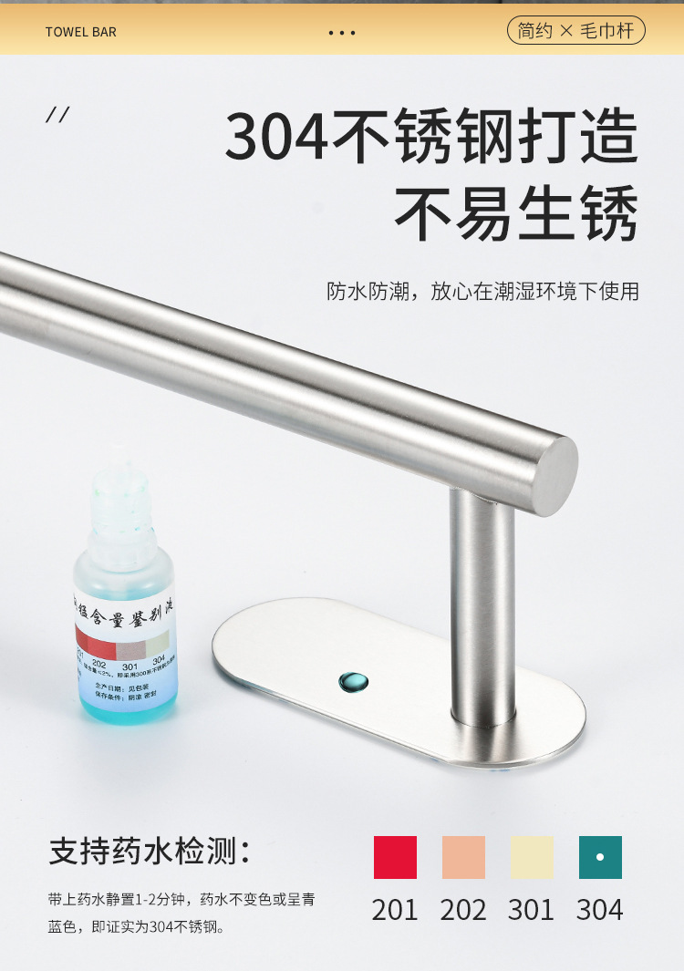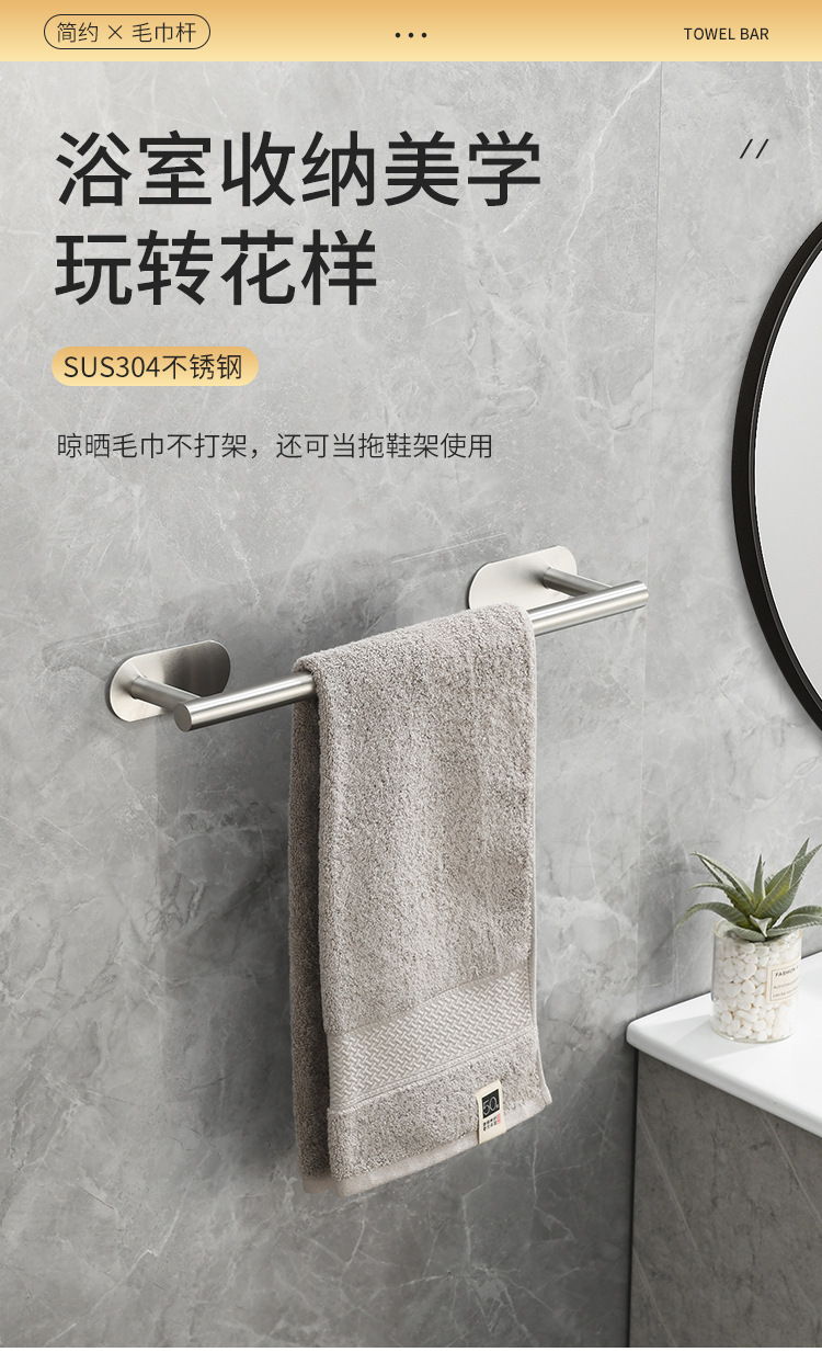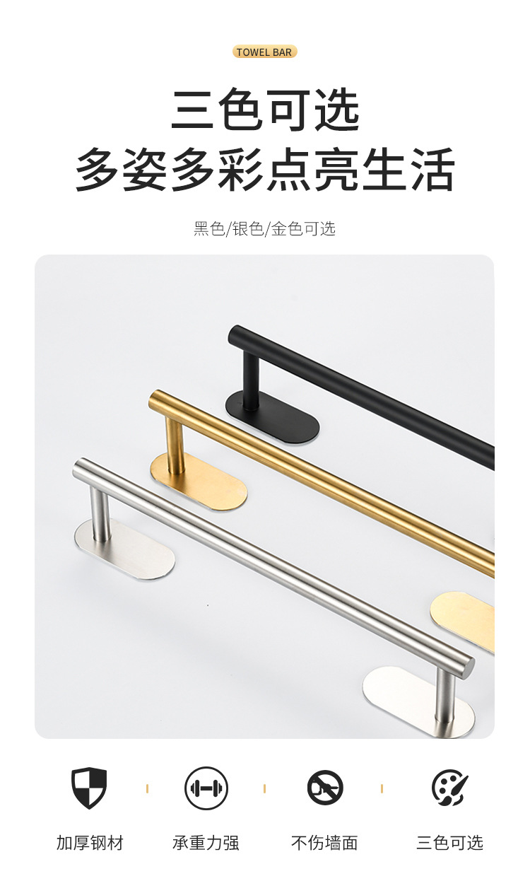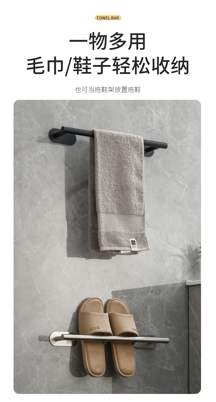 cross-border stainless steel towel bar punch-free bath towel rack bathroom rack bathroom towels hanging rod bathroom pendant
