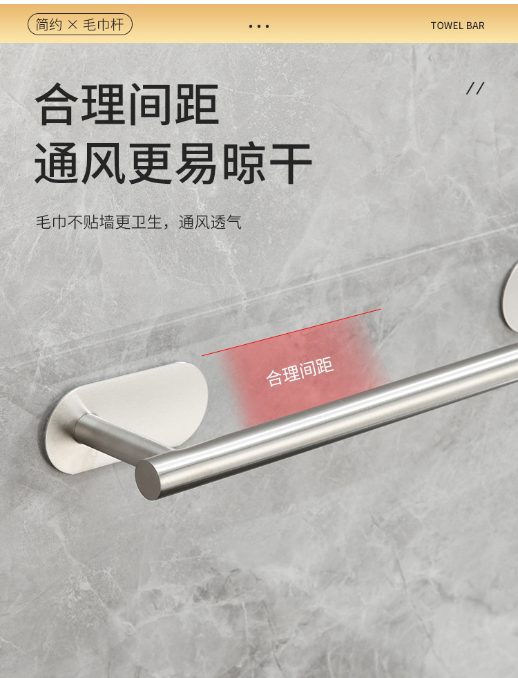 跨境不锈钢毛巾杆免打孔浴巾架浴室置物架卫生间毛巾挂杆卫浴挂件