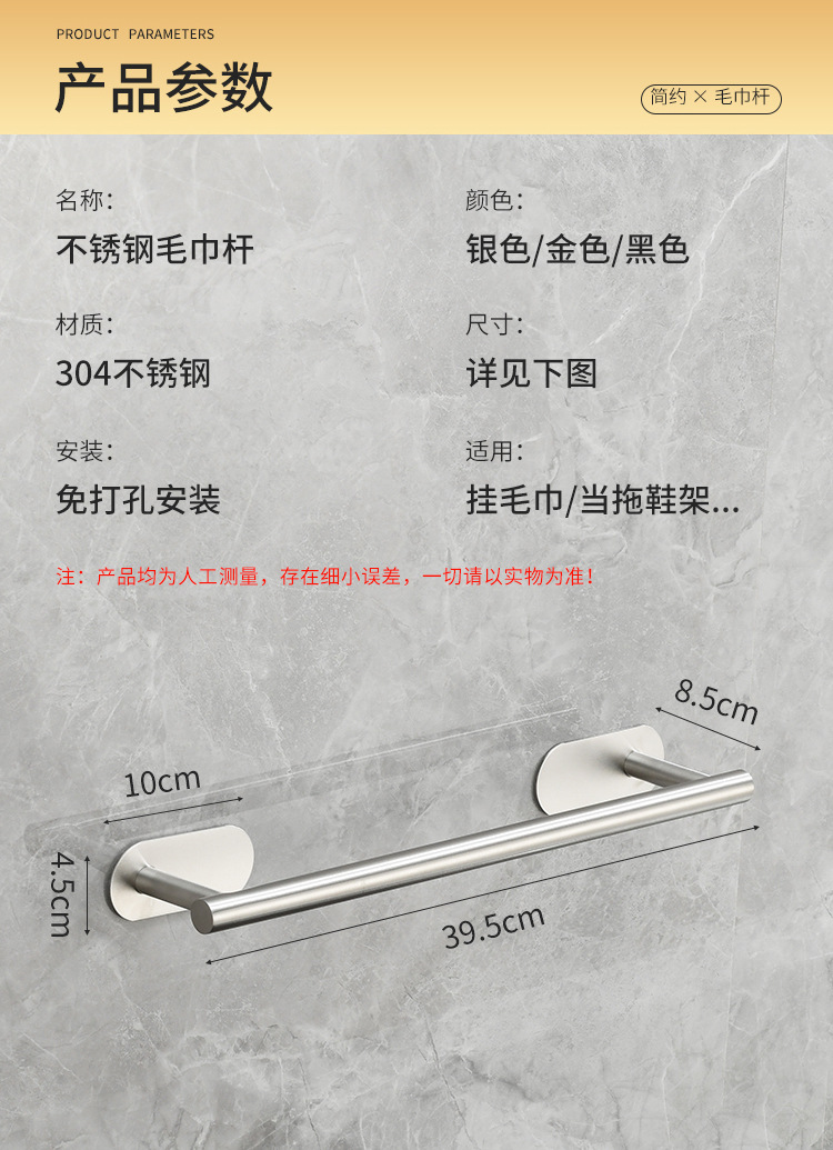 silver towel bar 40cm [punch-free]](银色毛巾杆40cm【免打孔】) USD $2.82 79999491 piece available