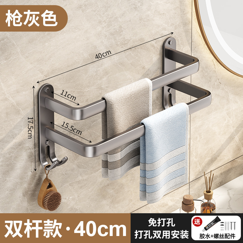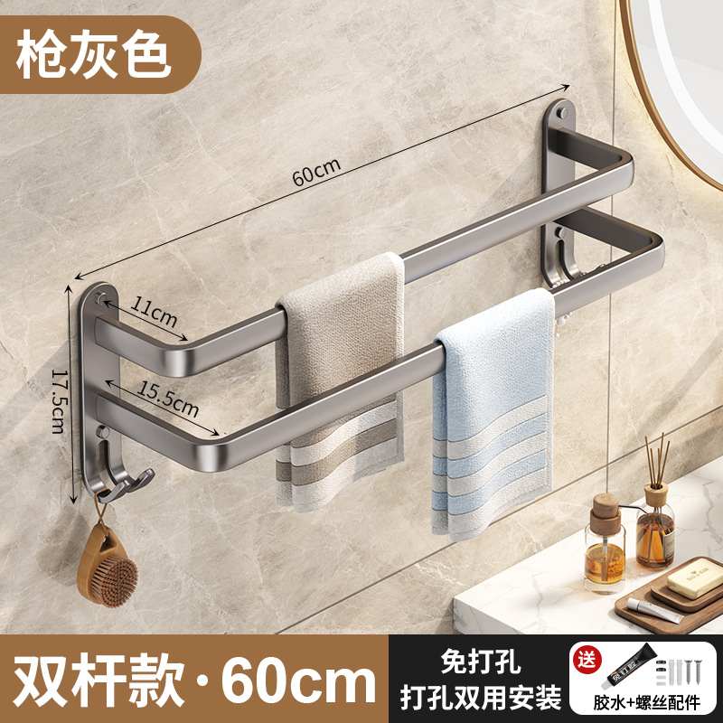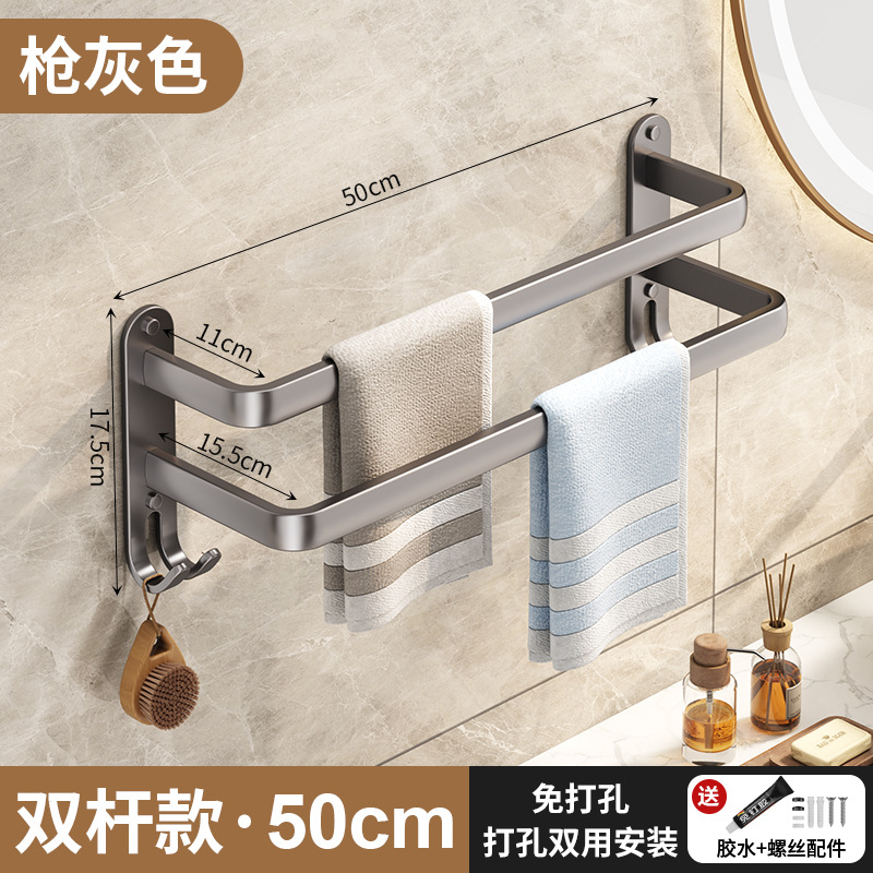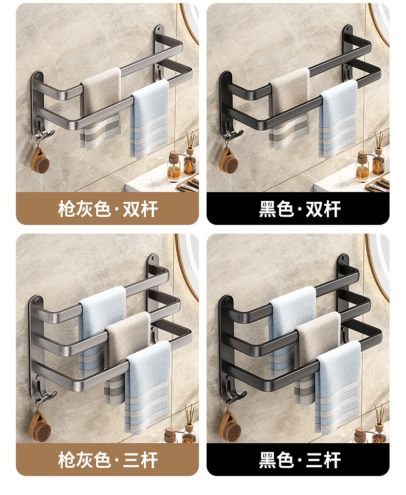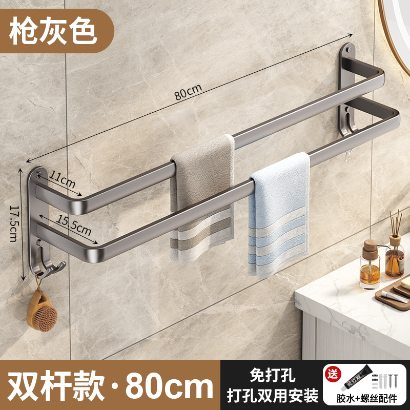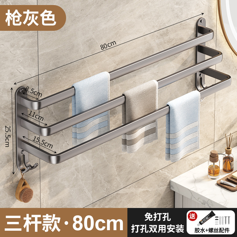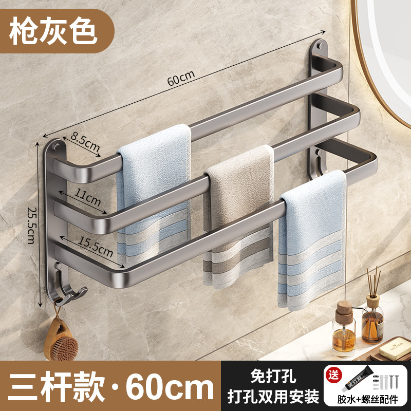 灰色毛巾架免打孔壁挂多层杆置物架浴室毛巾杆厕所洗手间收纳挂架