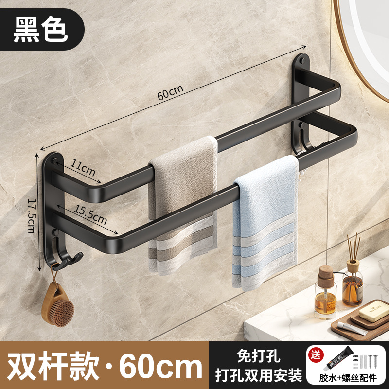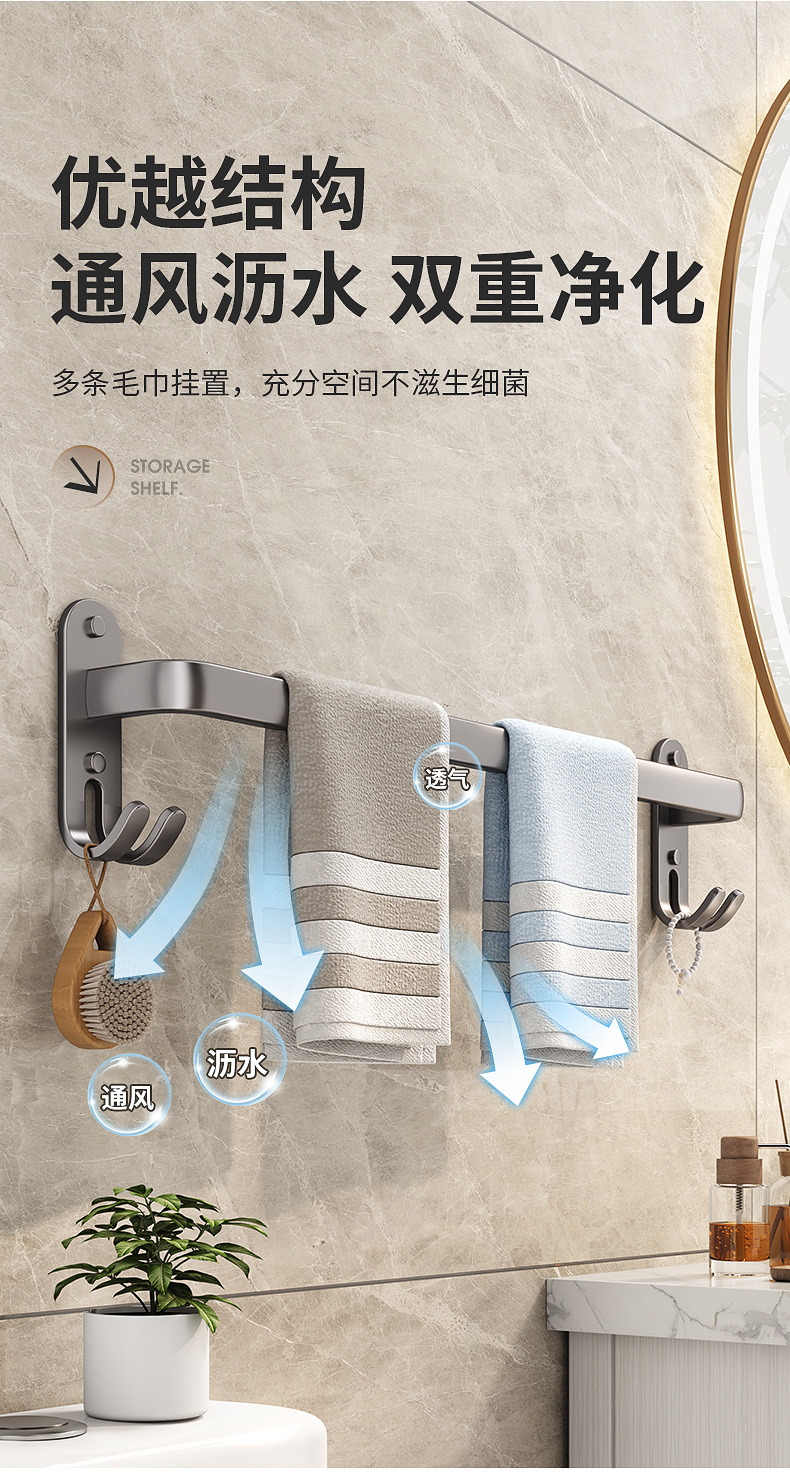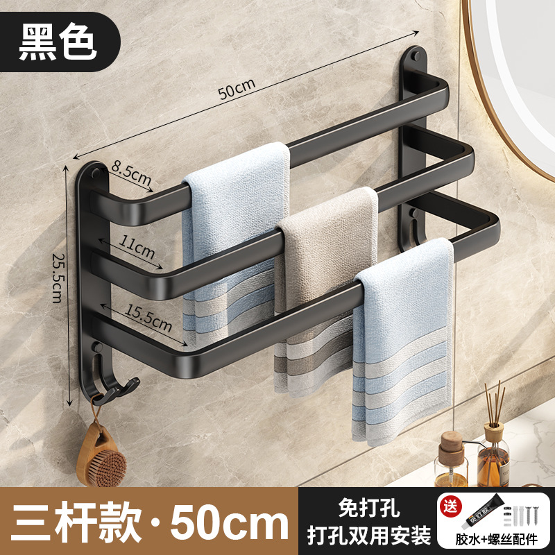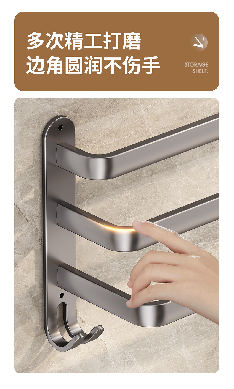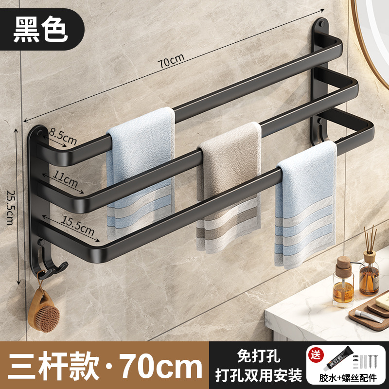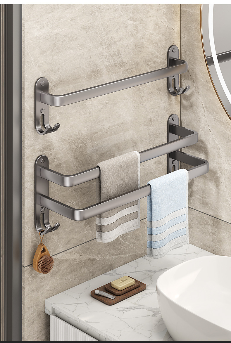 灰色毛巾架免打孔壁挂多层杆置物架浴室毛巾杆厕所洗手间收纳挂架