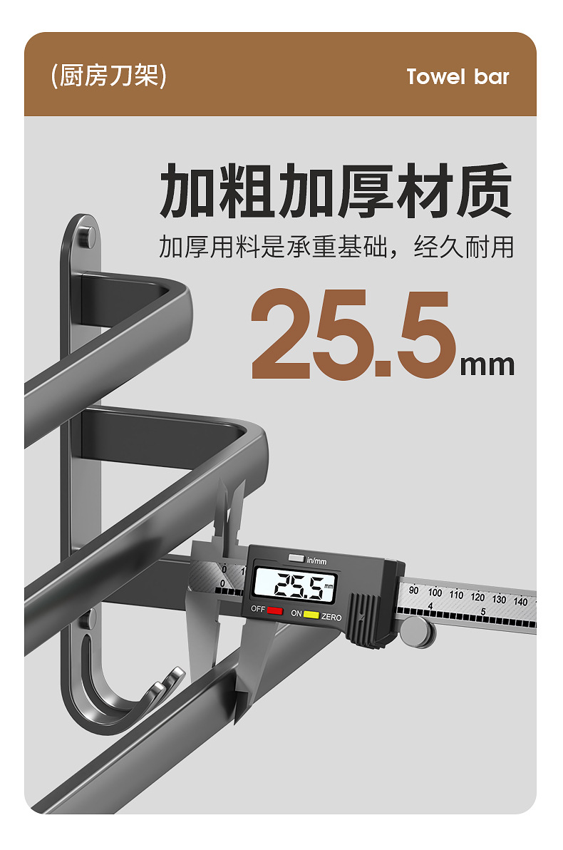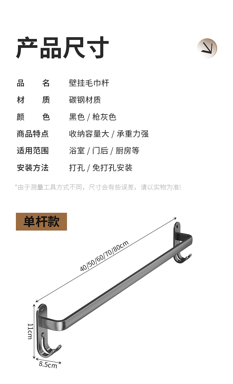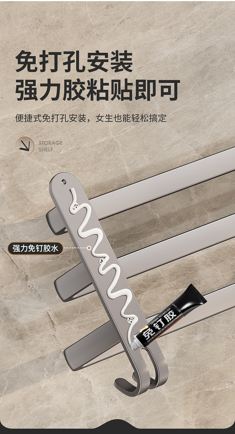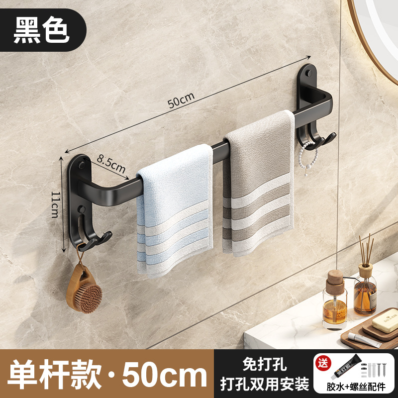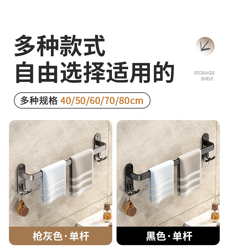 灰色毛巾架免打孔壁挂多层杆置物架浴室毛巾杆厕所洗手间收纳挂架