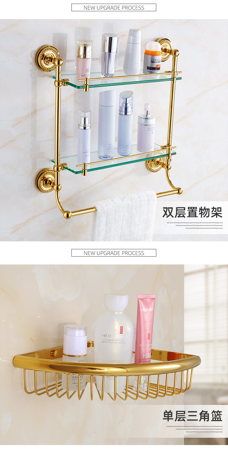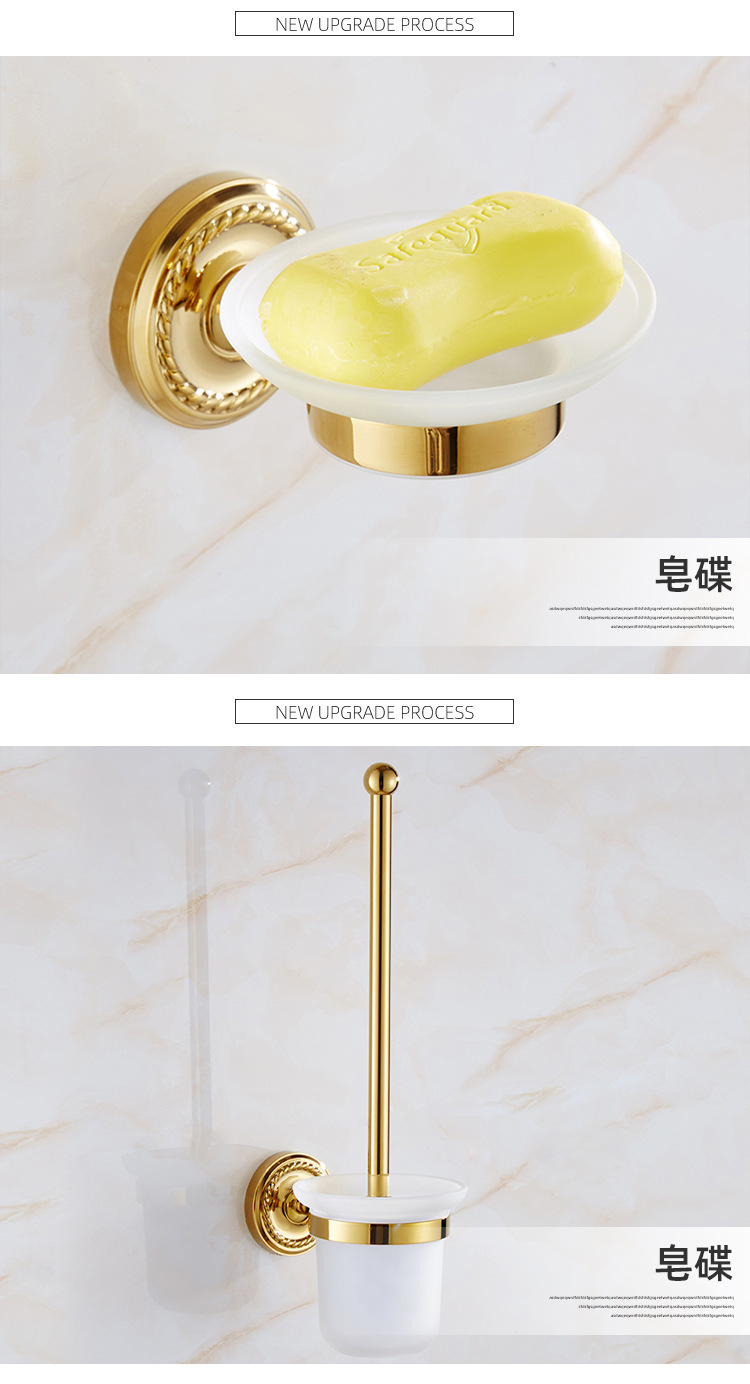 全铜欧式金色毛巾架套装 浴室浴巾置物架 卫生间五金卫浴挂件套装