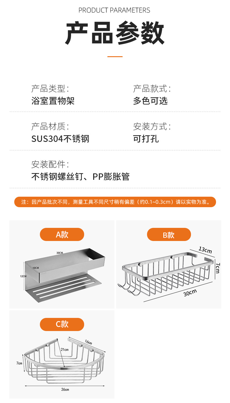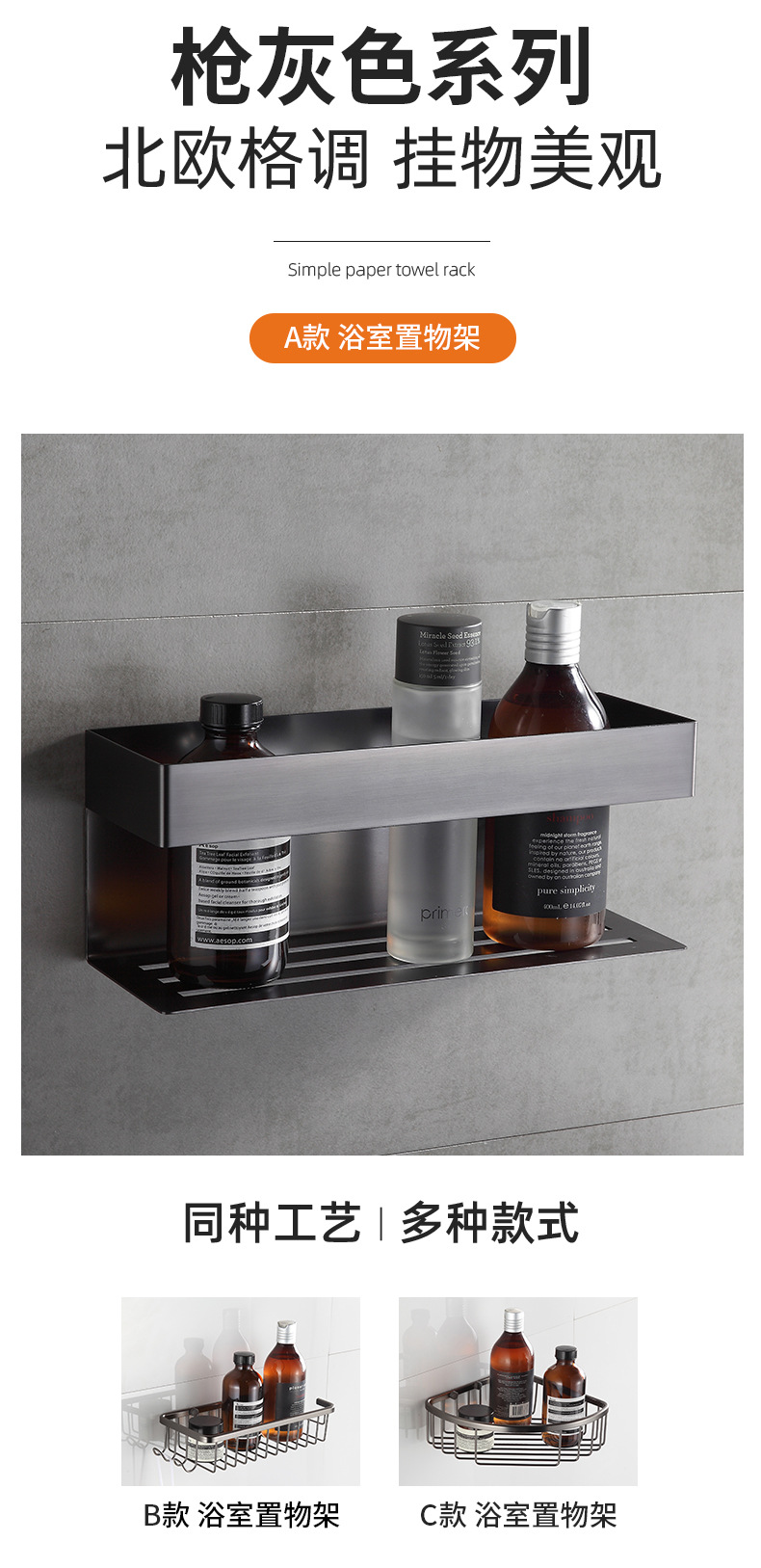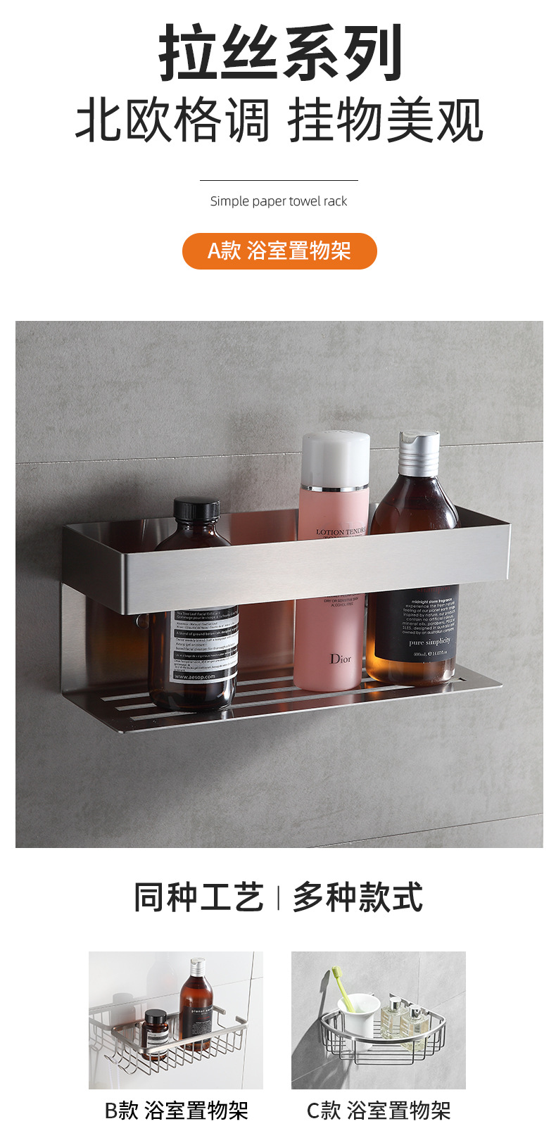 现货壁挂式卫浴304不锈钢毛巾架卫生间浴室置物化妆品架收纳神器