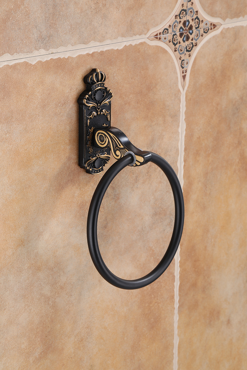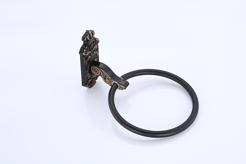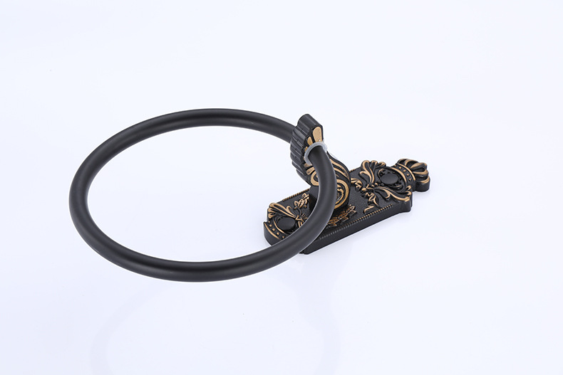 跨境欧式仿古黑色毛巾环浴室圆形毛巾架卫生间毛巾挂钩黑色毛巾架