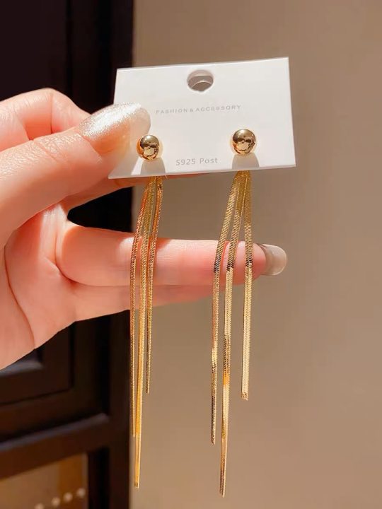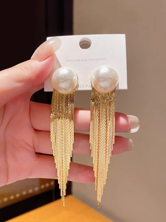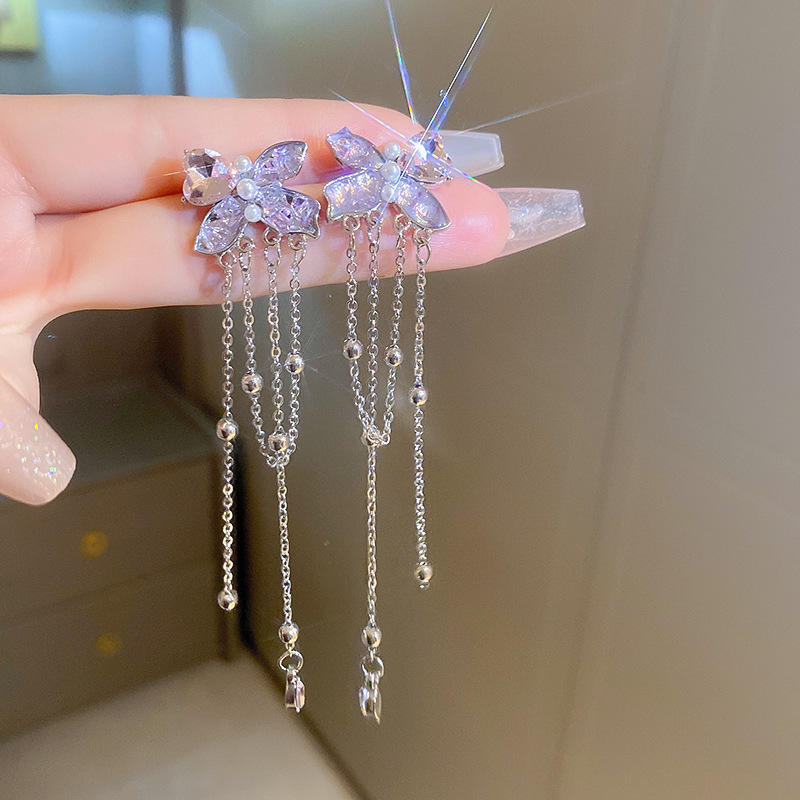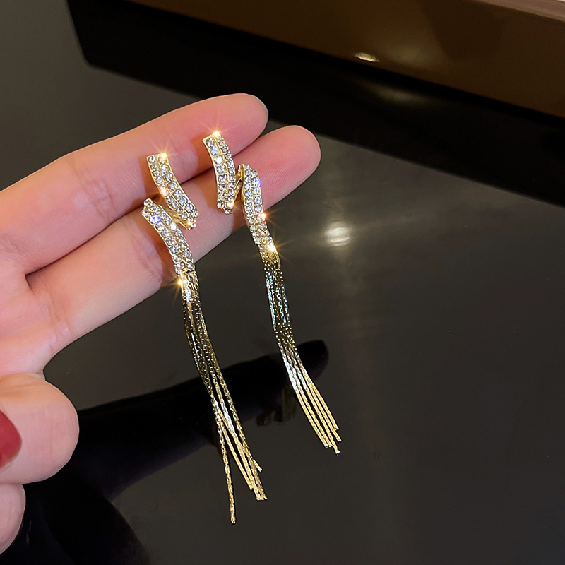 欧美夸张饰品个性网红耳坠新潮气质耳饰女满钻长款流苏冷淡风耳环