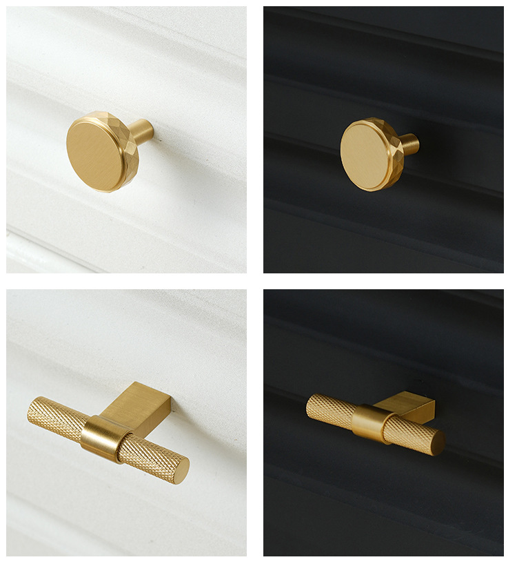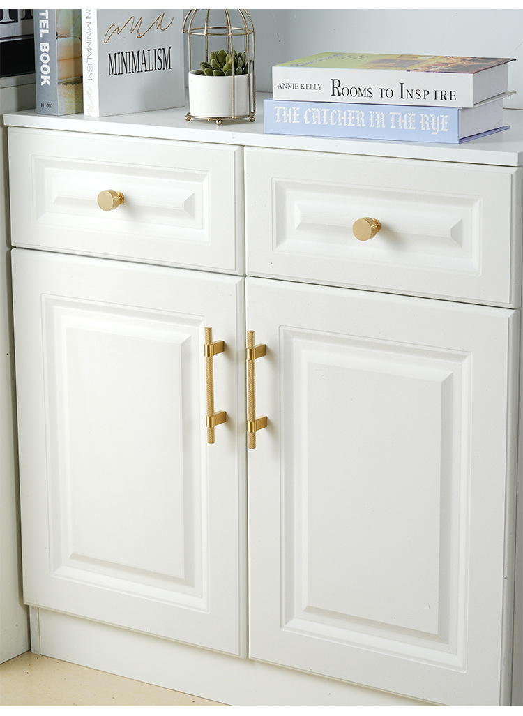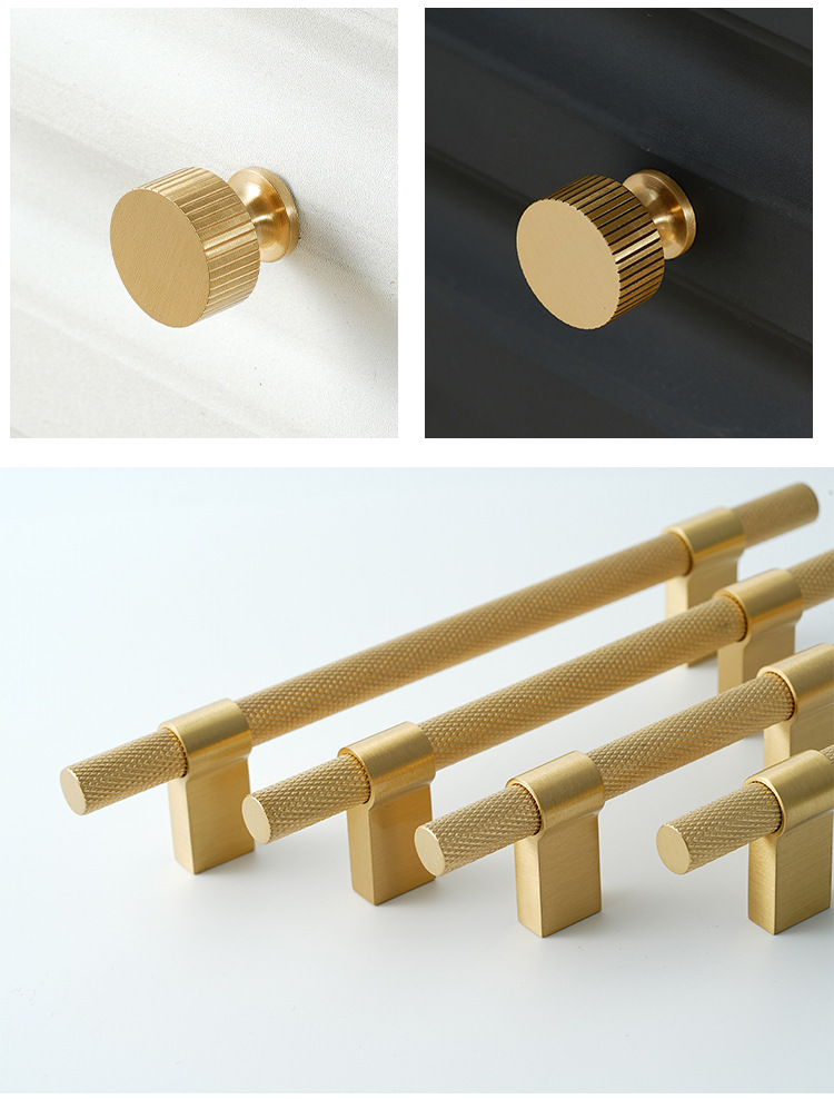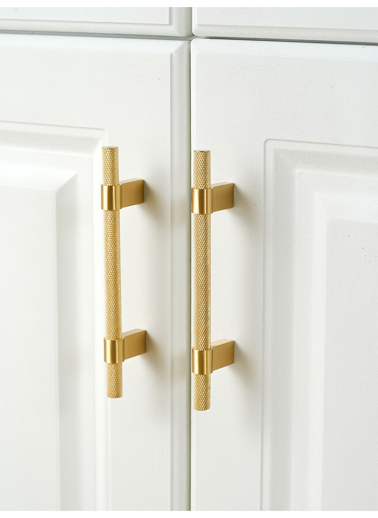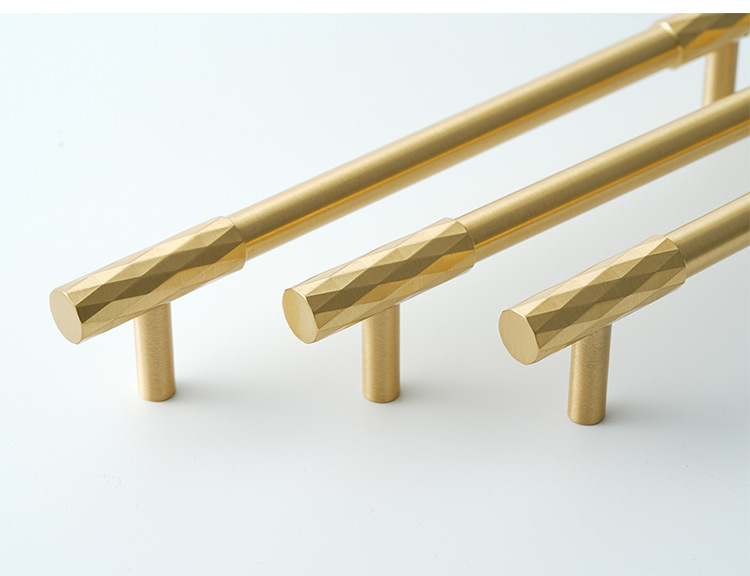 龙林五金新款纯黄铜衣橱鞋柜金色长把手现代简约单孔小铜拉手批发